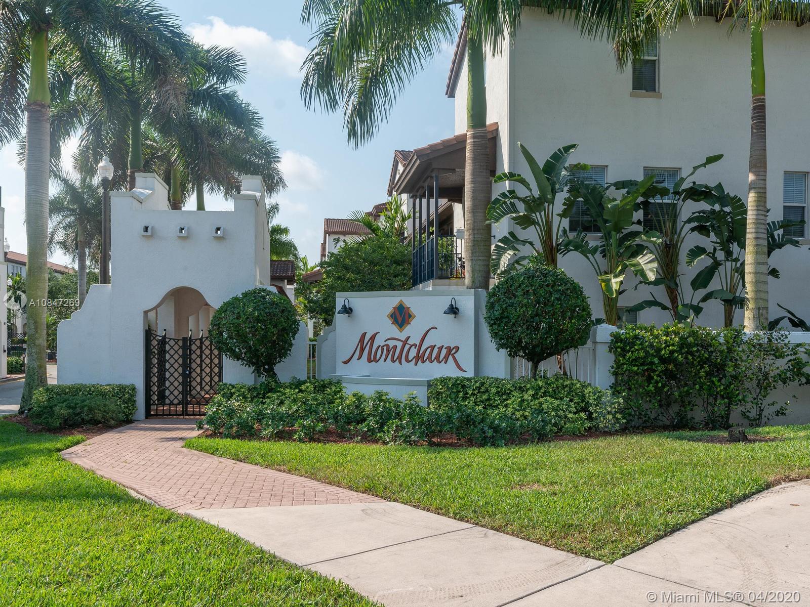 Gorgeous Mediterranean tri-level townhome located in the safe, quiet and gated community of Montclair. This spacious and bright townhome features 2 bedrooms, 2 full baths and 2 half baths. An enclosed den located on the first floor can be used as an office/playroom or expanded to third bedroom. This tiled throughout townhome offers many upgrades to include newly installed bamboo wood floor on stairs, stainless steel appliances, granite countertops and utility room with newer washer/dryer. Property is equipped with hurricane impact windows, 2-car garage and open balcony. Community amenities feature a beautiful lake view pool adjacent to the club house, along with scenic jogging path and 3 separate playgrounds. HOA fee includes cable, internet & alarm system. Easy to show, contact me today!