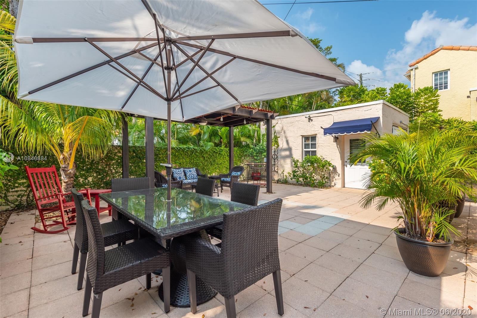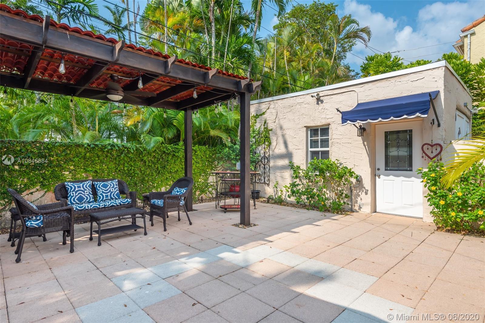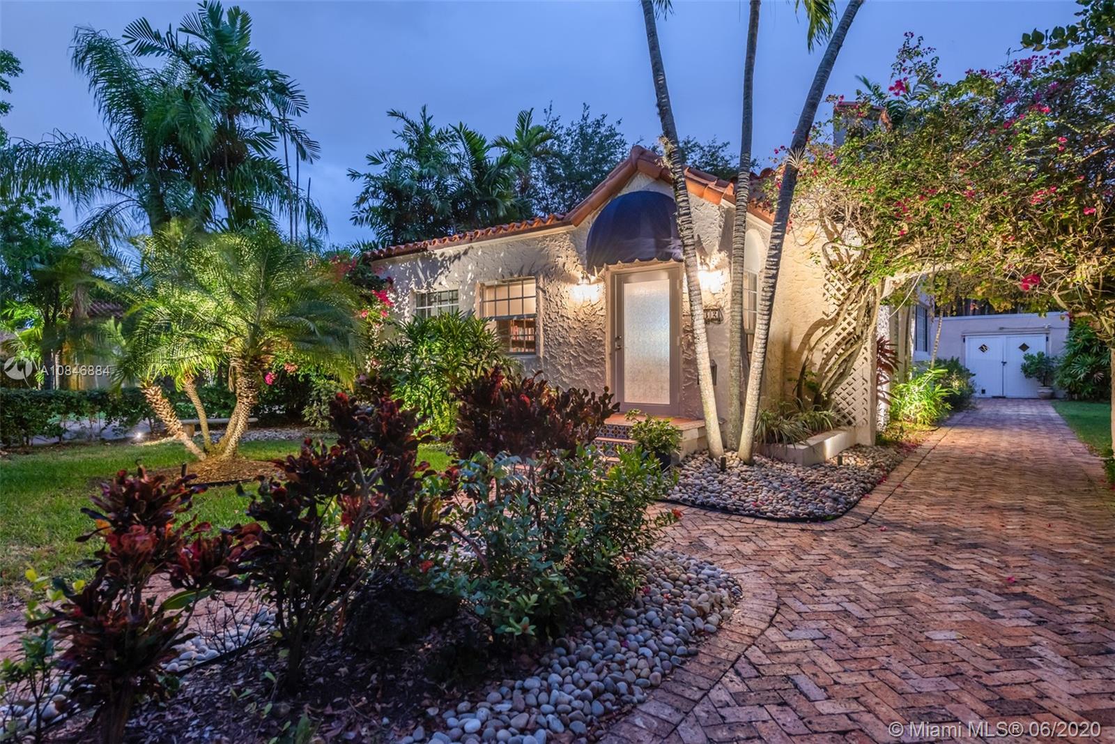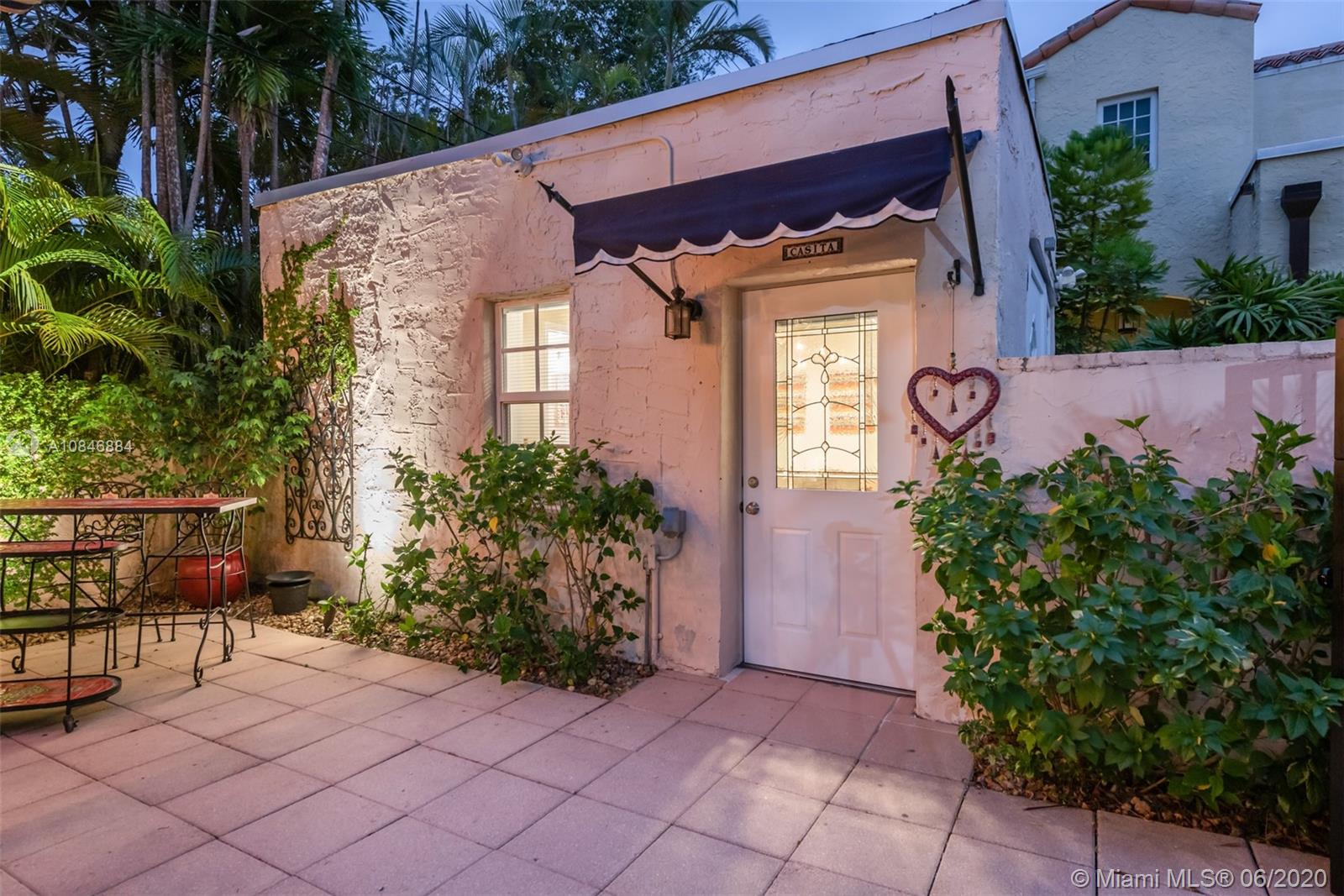 Undeniable Coral Gables charm. Steps from the Granada Golf Course, this beautiful 2/2 home with 1/1 guest cottage offers oversized impact windows and doors, Brazilian cherry wood floors, custom cabinets, and built-ins throughout, updated electrical and plumbing, sewer, new tankless water heater, new roof and completely re-built guest house. Historic arches, French doors and wood-burning fireplace have been perfectly preserved. Inviting backyard patio includes pergola with outdoor fan, cafe lights mature landscaping and lighting, and iron gates. Guest cottage has full bath and own A/C unit.