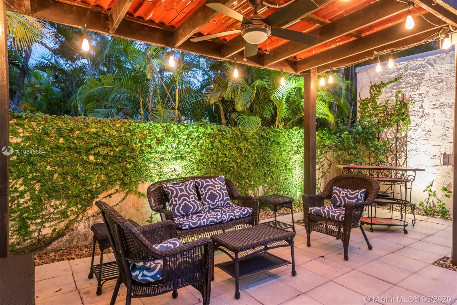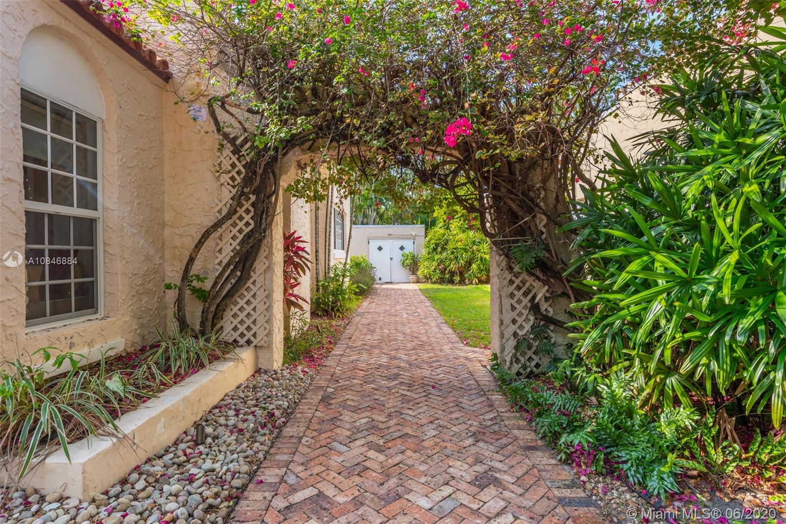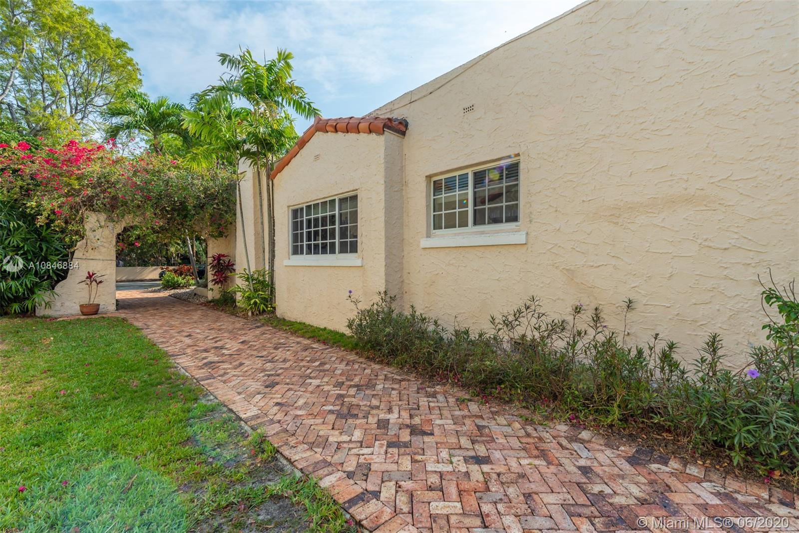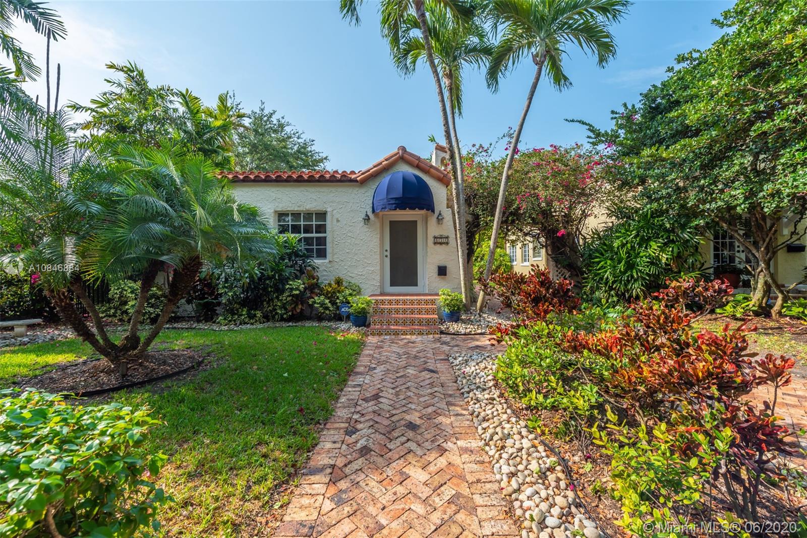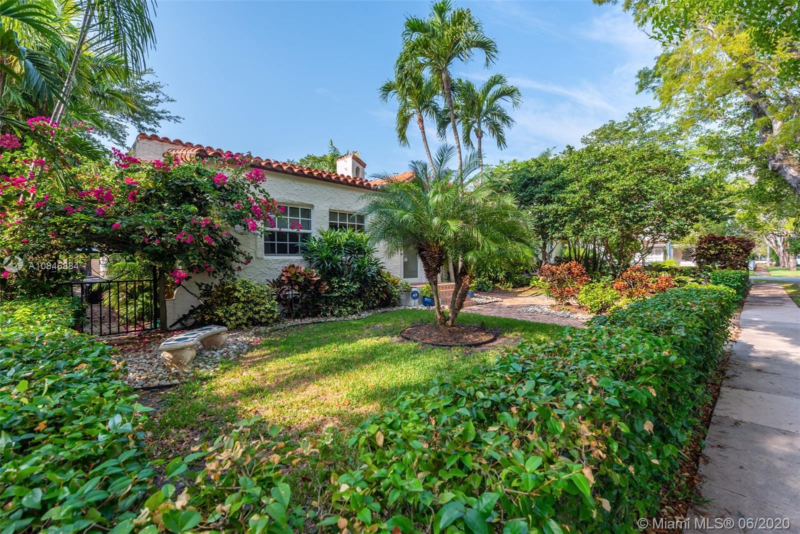 Undeniable Coral Gables charm. Steps from the Granada Golf Course, this beautiful 2/2 home with 1/1 guest cottage offers oversized impact windows and doors, Brazilian cherry wood floors, custom cabinets, and built-ins throughout, updated electrical and plumbing, sewer, new tankless water heater, new roof and completely re-built guest house. Historic arches, French doors and wood-burning fireplace have been perfectly preserved. Inviting backyard patio includes pergola with outdoor fan, cafe lights mature landscaping and lighting, and iron gates. Guest cottage has full bath and own A/C unit.