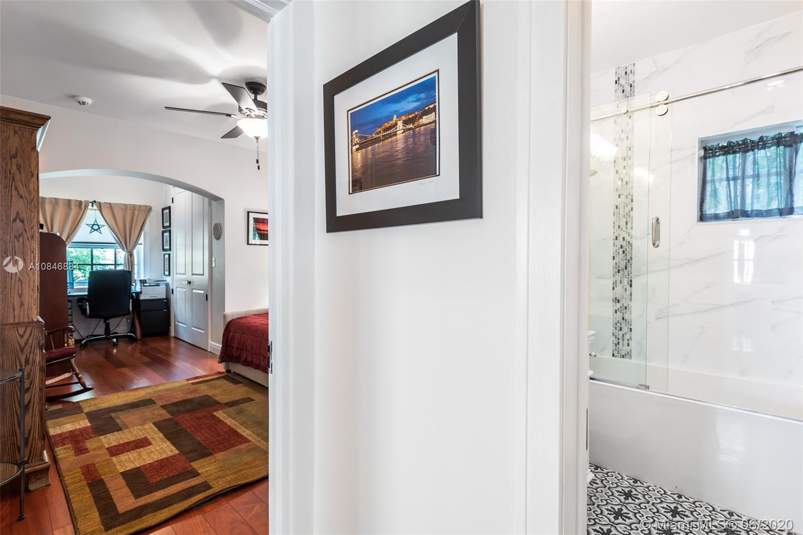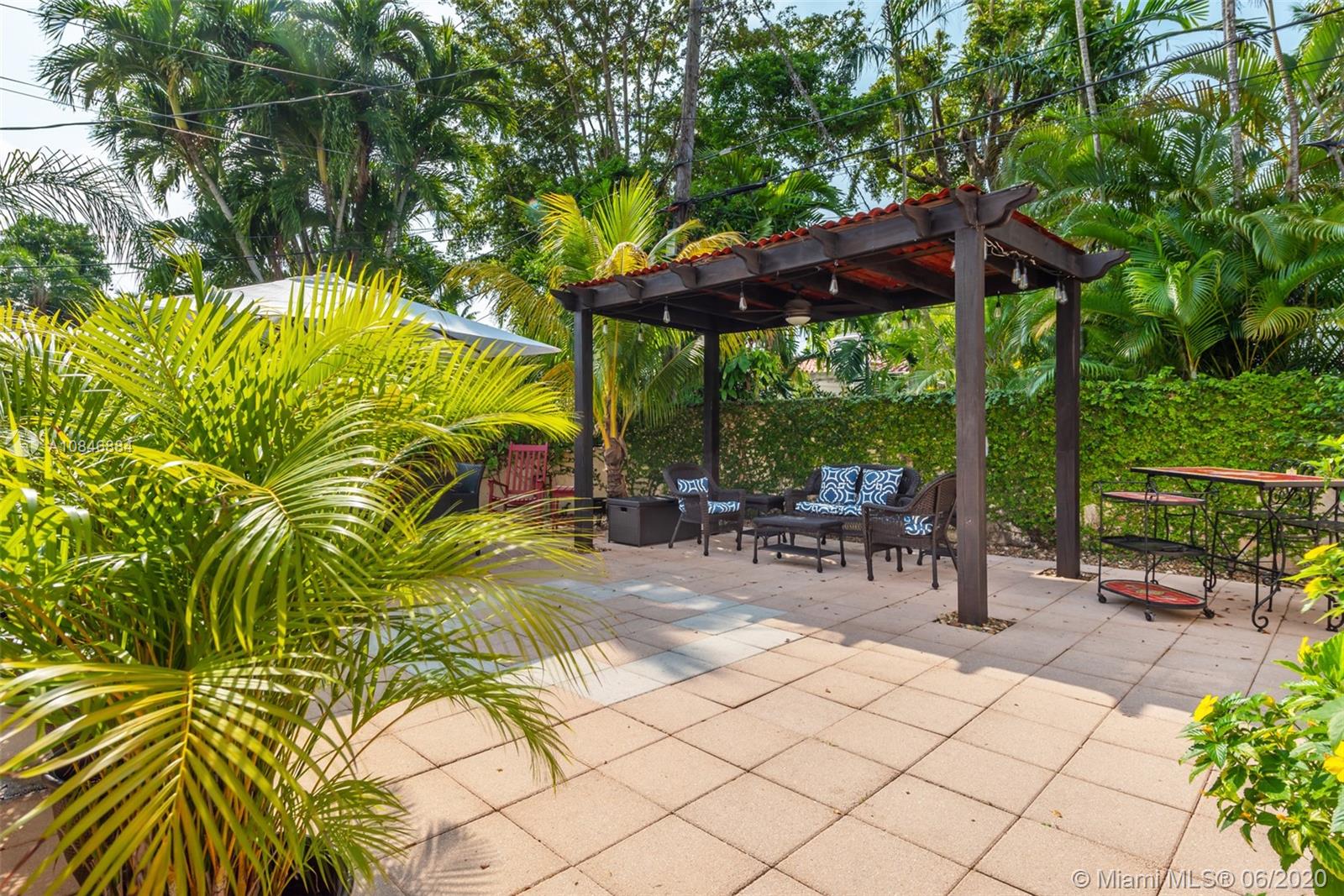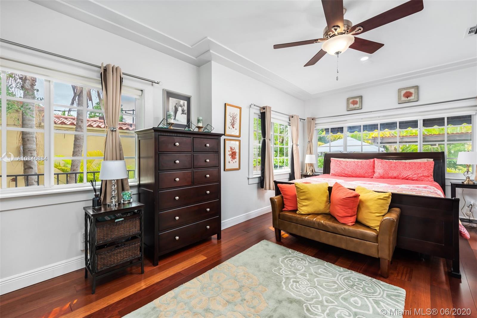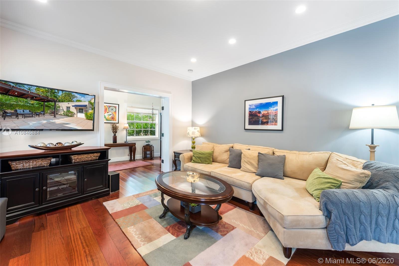 Undeniable Coral Gables charm. Steps from the Granada Golf Course, this beautiful 2/2 home with 1/1 guest cottage offers oversized impact windows and doors, Brazilian cherry wood floors, custom cabinets, and built-ins throughout, updated electrical and plumbing, sewer, new tankless water heater, new roof and completely re-built guest house. Historic arches, French doors and wood-burning fireplace have been perfectly preserved. Inviting backyard patio includes pergola with outdoor fan, cafe lights mature landscaping and lighting, and iron gates. Guest cottage has full bath and own A/C unit.