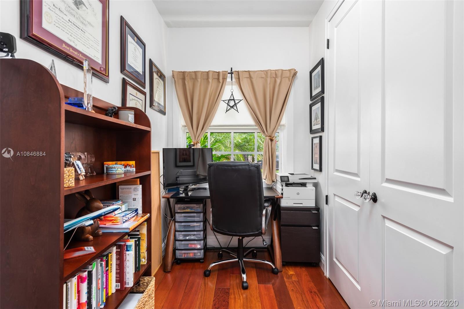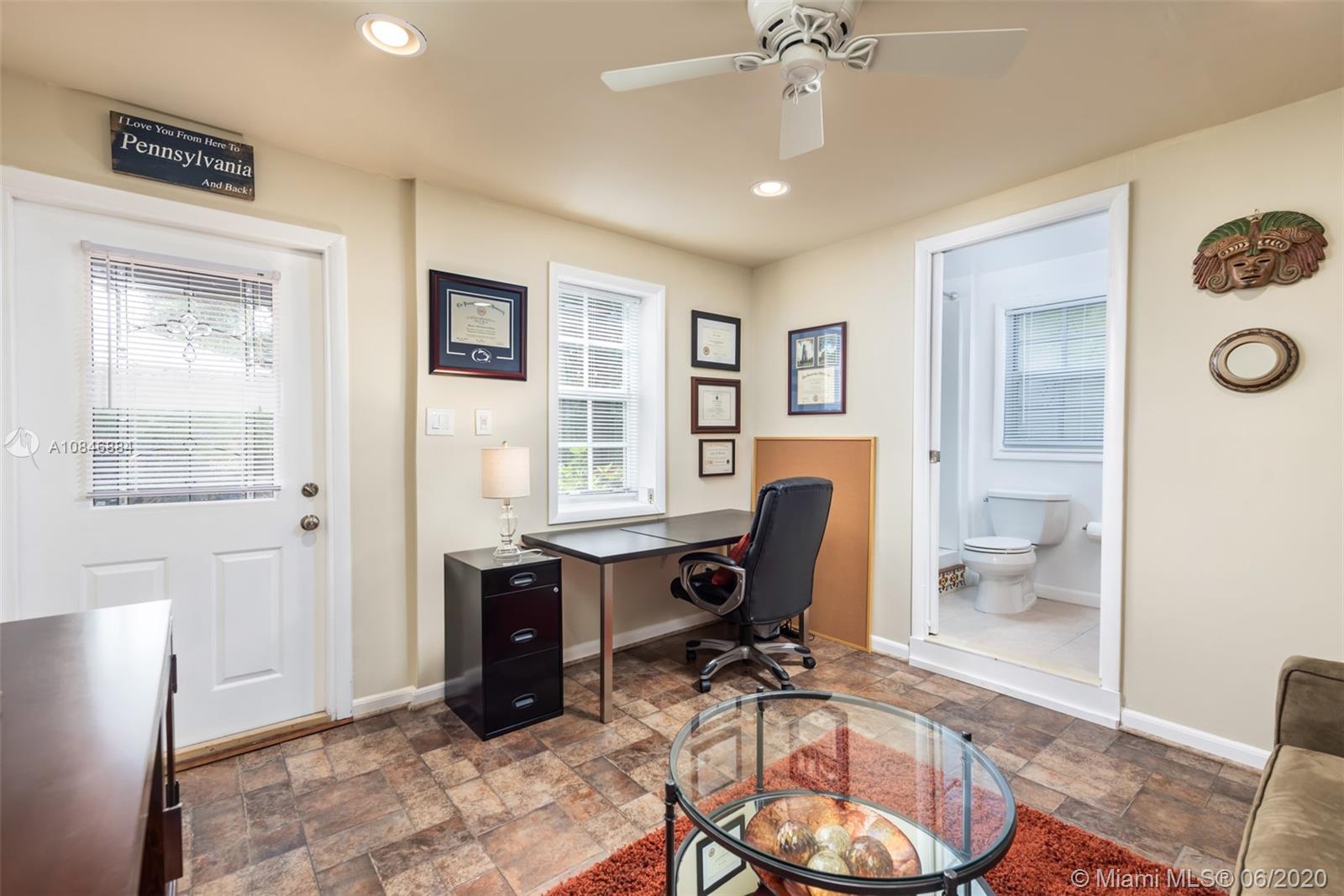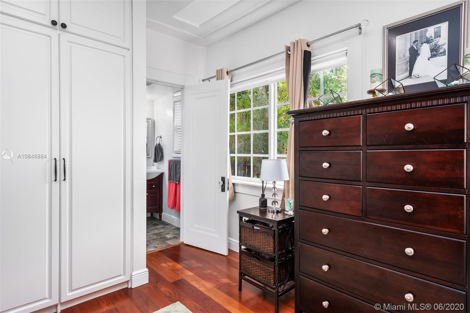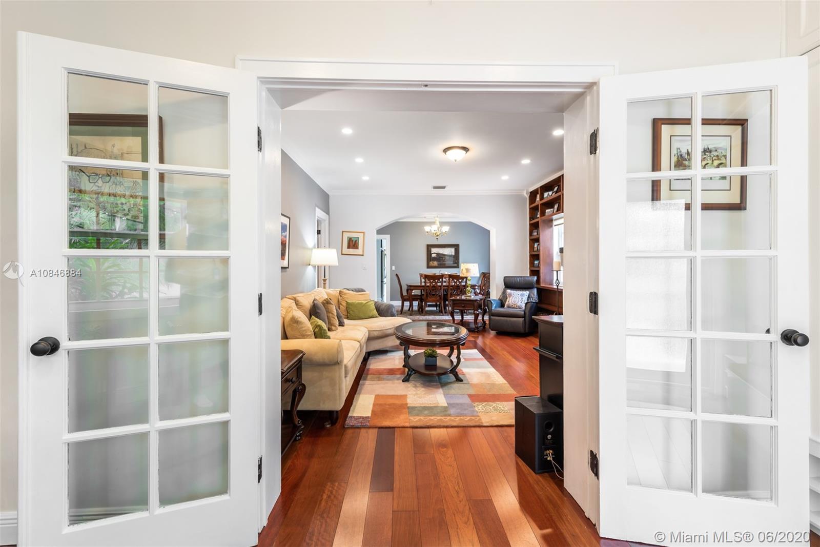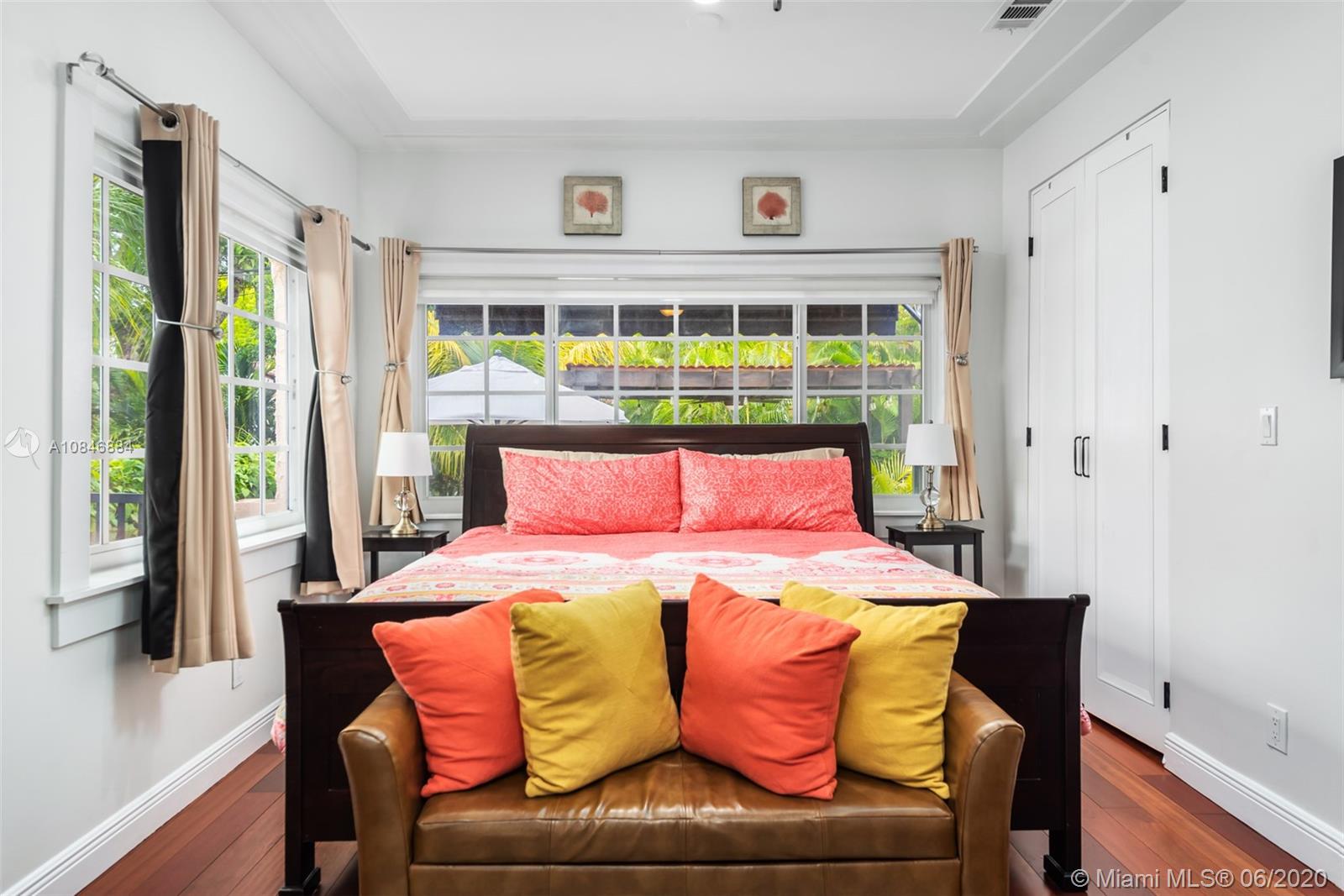 Undeniable Coral Gables charm. Steps from the Granada Golf Course, this beautiful 2/2 home with 1/1 guest cottage offers oversized impact windows and doors, Brazilian cherry wood floors, custom cabinets, and built-ins throughout, updated electrical and plumbing, sewer, new tankless water heater, new roof and completely re-built guest house. Historic arches, French doors and wood-burning fireplace have been perfectly preserved. Inviting backyard patio includes pergola with outdoor fan, cafe lights mature landscaping and lighting, and iron gates. Guest cottage has full bath and own A/C unit.