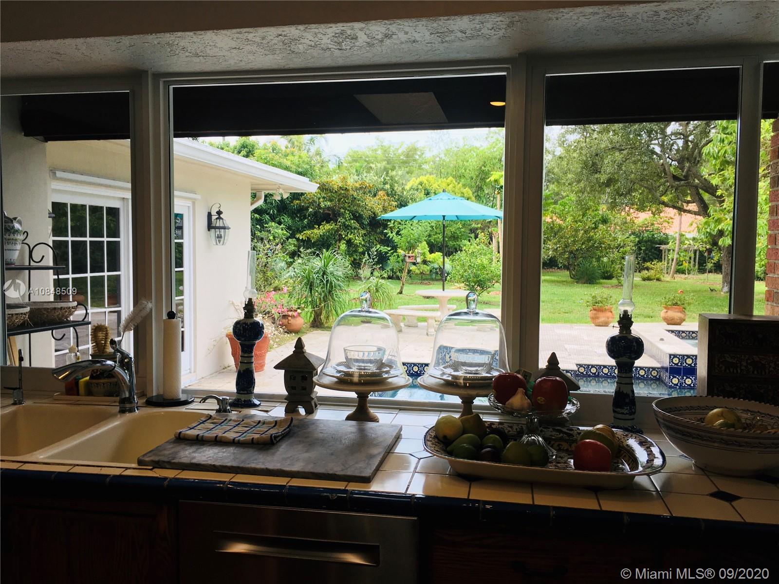 Fairchild-Inspired Pinecrest Home. Over 80 Exotic Fruit Trees. Seasonal Organic Vegetable Garden. Separate Artist studio or guest cottage (1/1) w/ 1 bed / 1 bath, sun-infused living area, plus an add'l den. Covered Patio. Sparkling Pool. Updated home (3/3) with foyer, den, LR, DR, FR. New electric, plumbing, baths, kitchen, septic, impact glass. New Roof 2016. Portuguese tile & terracotta from Spain. Acre property - fenced. Professionally landscaped by Sara. Beautiful residential street. "Tropical, with Europe's Allure". Video Open-House Tour Available.