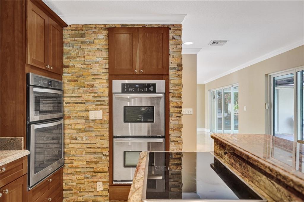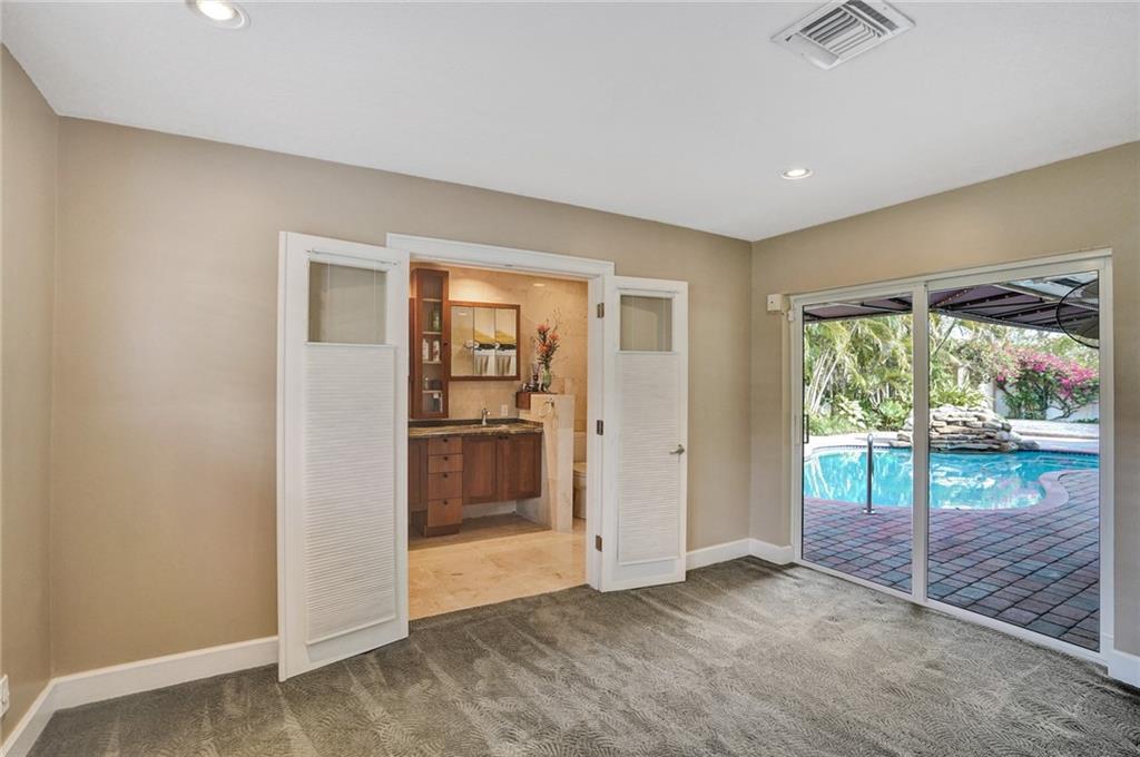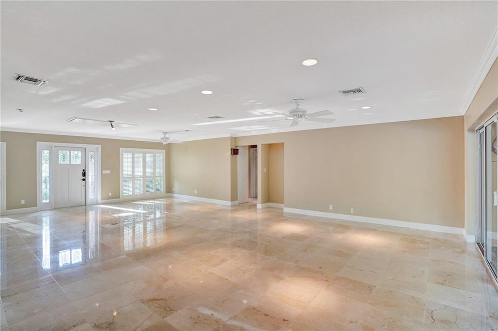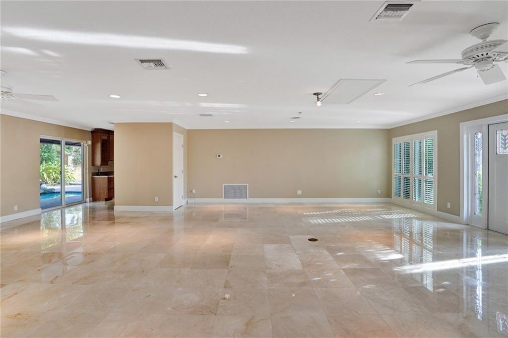Home is currently being represented as a 2 bedroom home. This house checks all the boxes. Incredible open floor plan design as you walk in the door. Two large sliding glass doors allow you to view your gorgeous pool and patio from the front door. Stunning Marble floors flow throughout the living space. 9000 sq ft Fully fenced lot with clean white PVC fencing. Propane gas fed home takes advantage with, a Tankless water heater, and Generac WHOLE HOME Generator. Flat -tile roof, and Impact Glass doors and windows have you fully prepared for Storms. Inside laundry room and extra pantry space that you will love. Custom kitchen with 4 Ovens and induction countertop ! SOLAR POWERED Heated and salt water pool with peaceful waterfall. Updated electrical panel.