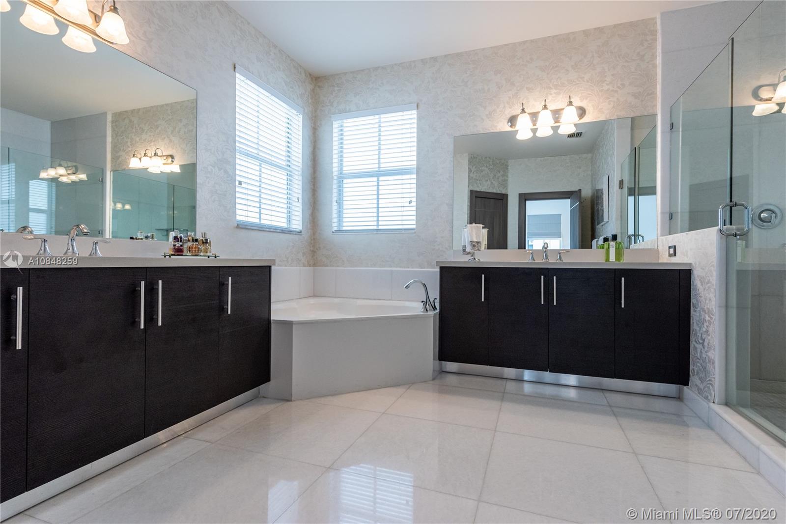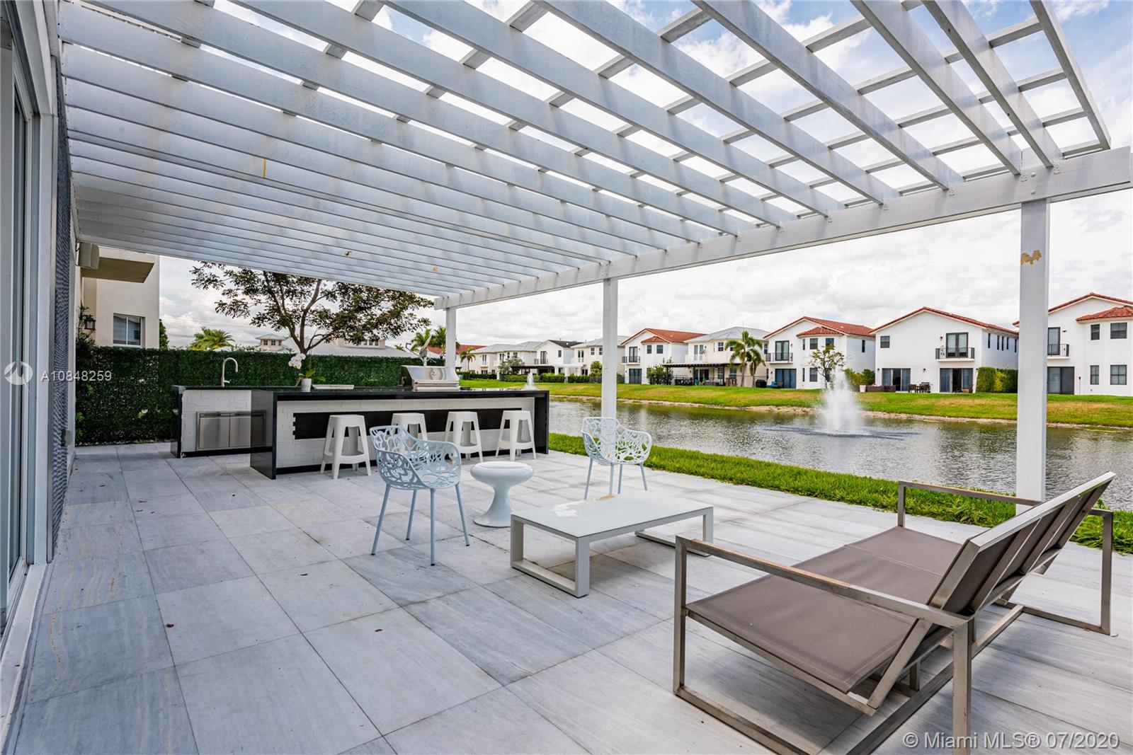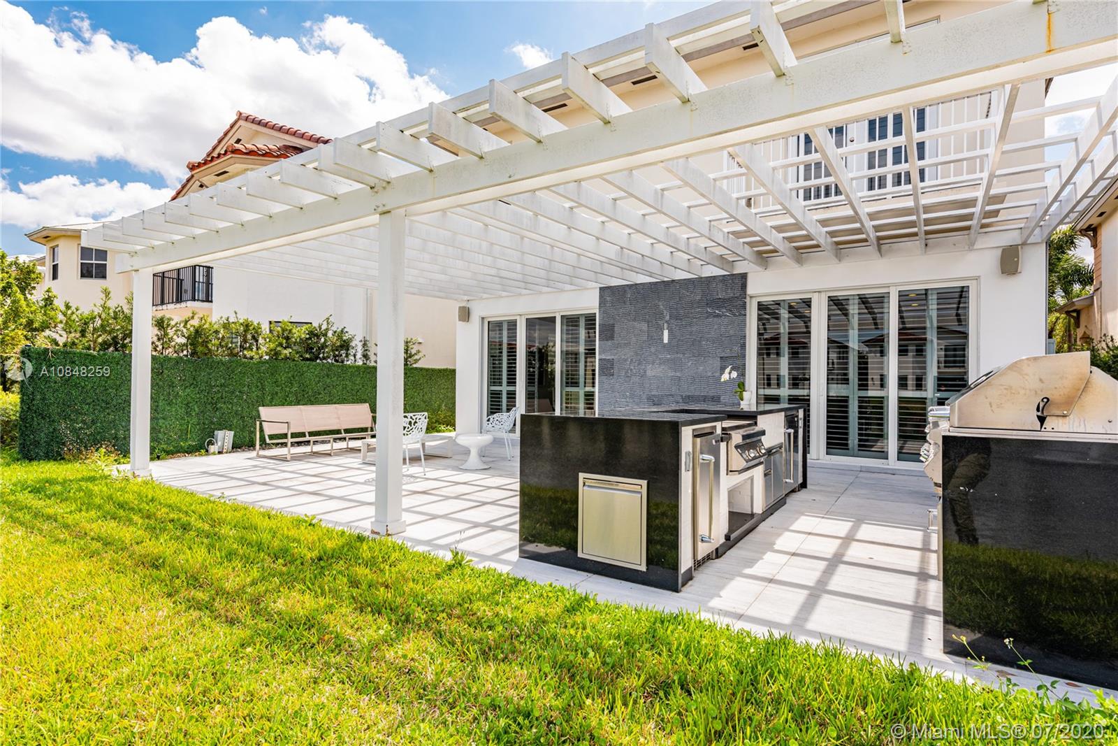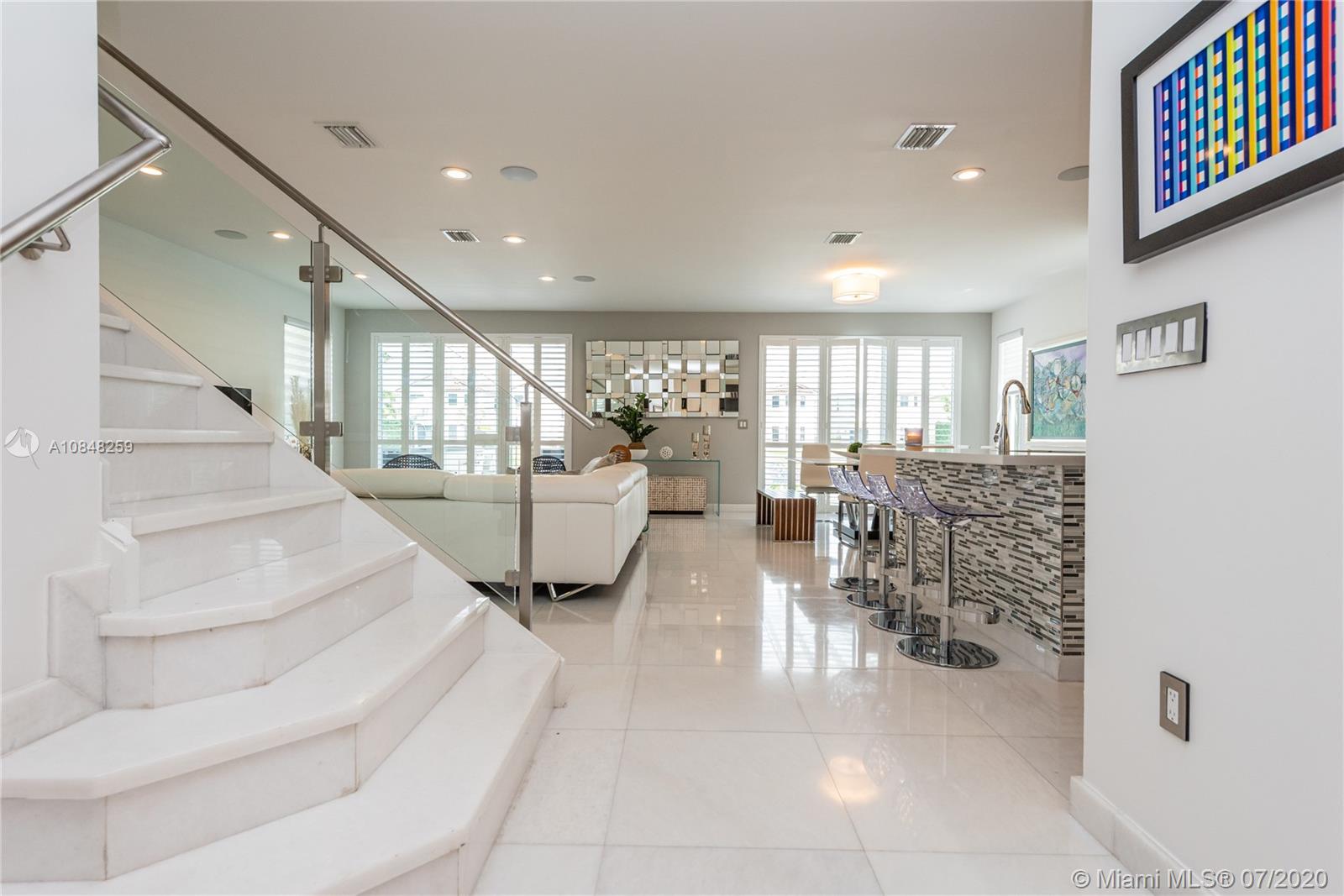 REDUCED FOR A QUICK SALE -Nestled in the heart of Doral, Vintage Estates is a beautiful community with amenities to enjoy. Pools & playgrounds to a gym and saunas. Within walking distance, our residents enjoy the convenience of two shopping malls and various restaurants to choose from. This unique largest model in Vintage features 5 bedroom & 4 full baths. Totally remodeled high-end touches. White marble throughout, modern glass and stainless steel staircase. Impact windows throughout, Italian contemporary closets cabinetry and doors with Stainless S handles, Hunter Douglas windows treatments, black out in all bedrooms, motorized in the stairs and plantation shutters downstairs to the deck/patio area. Smart Lighting Dimmer system.Luxurious totally equipped Summer Kitchen Overlooking lake.