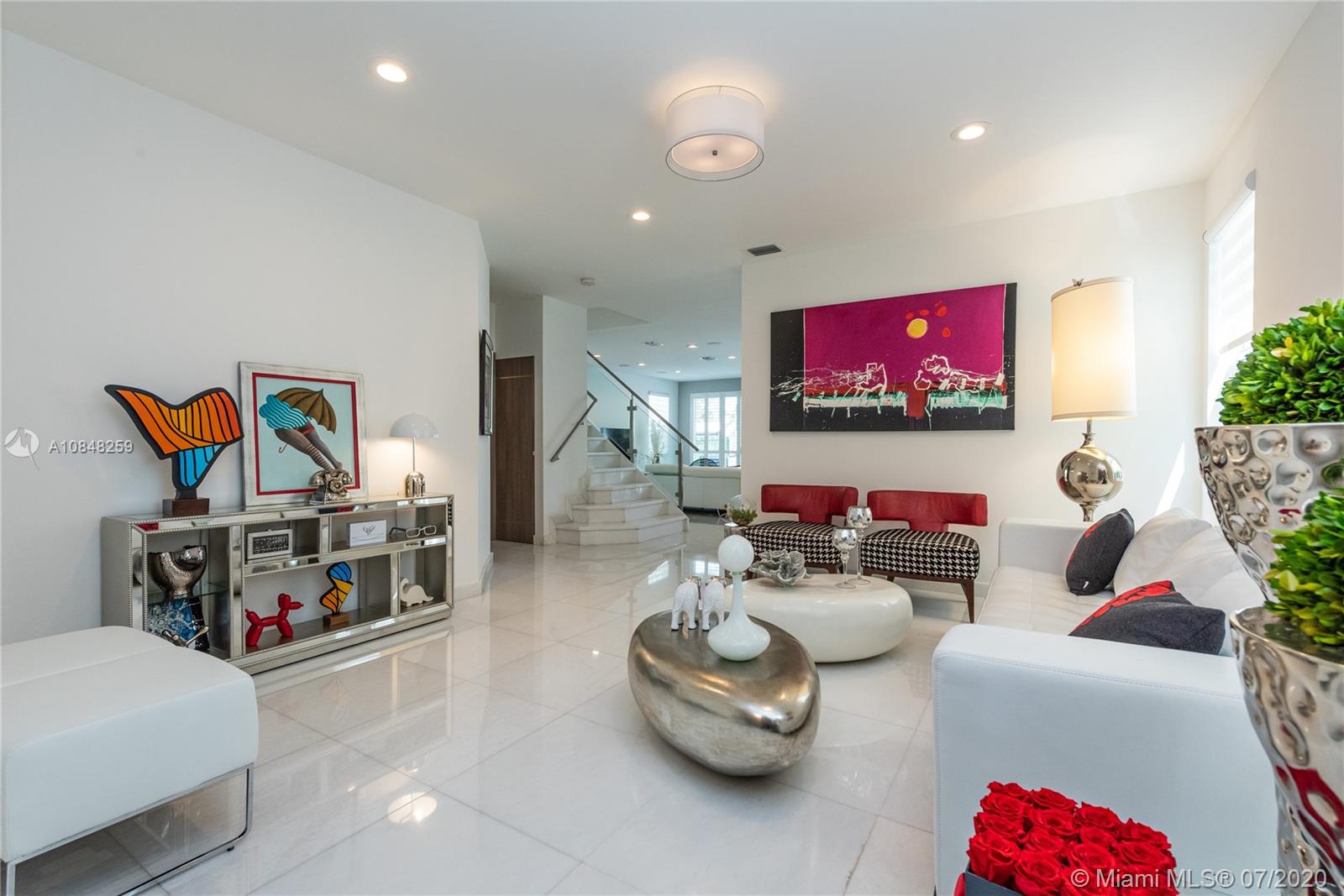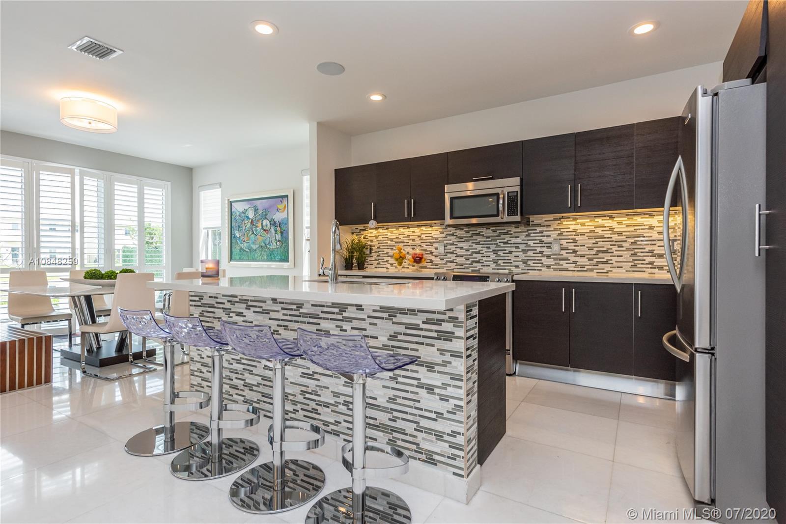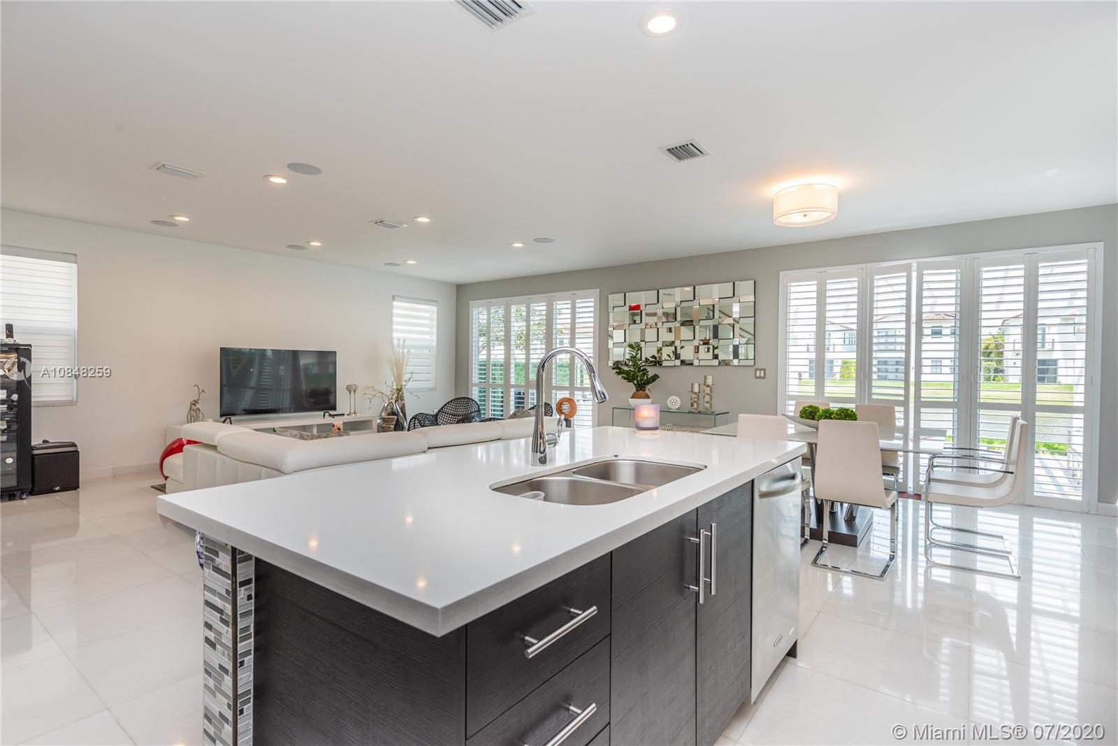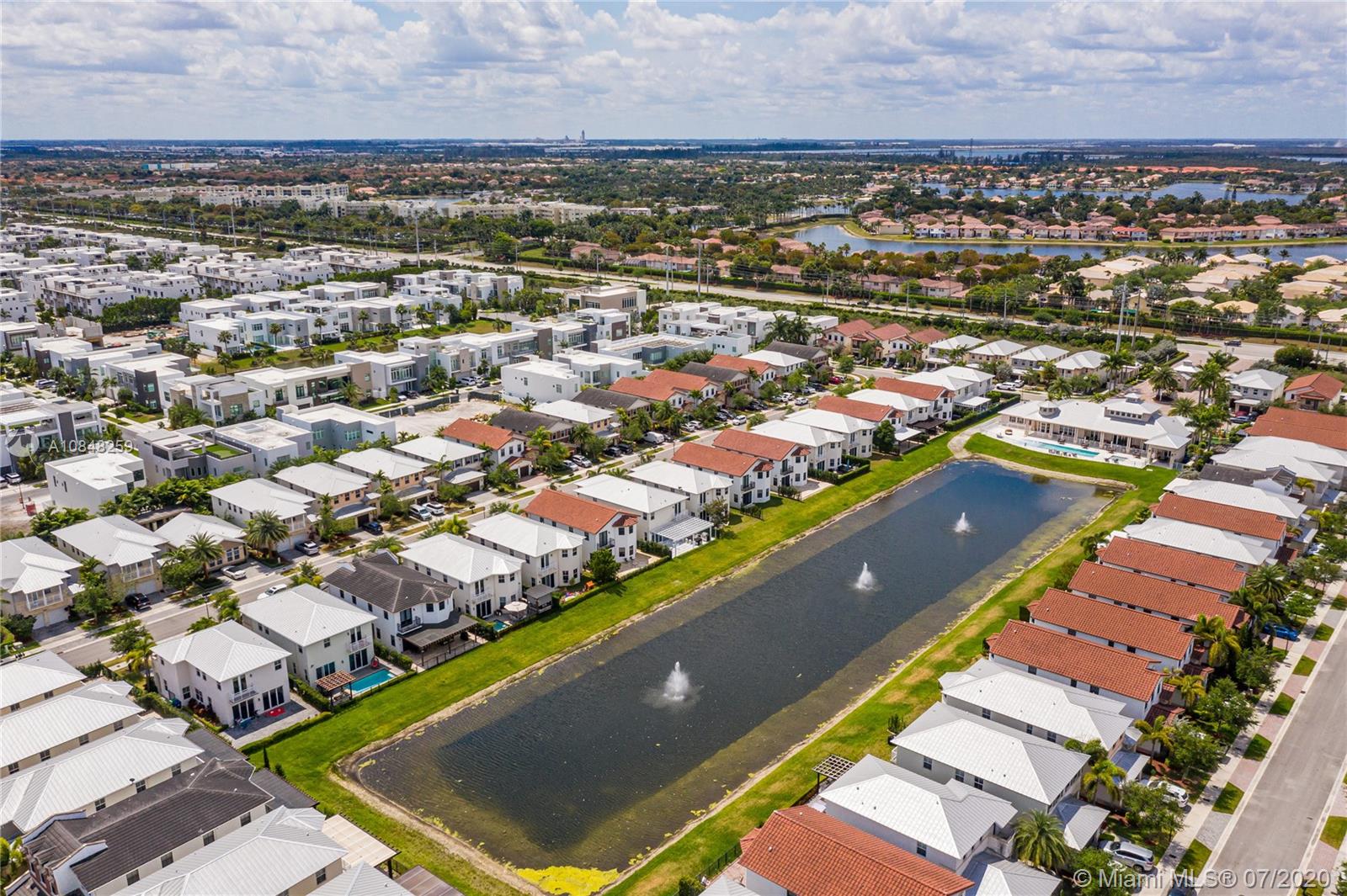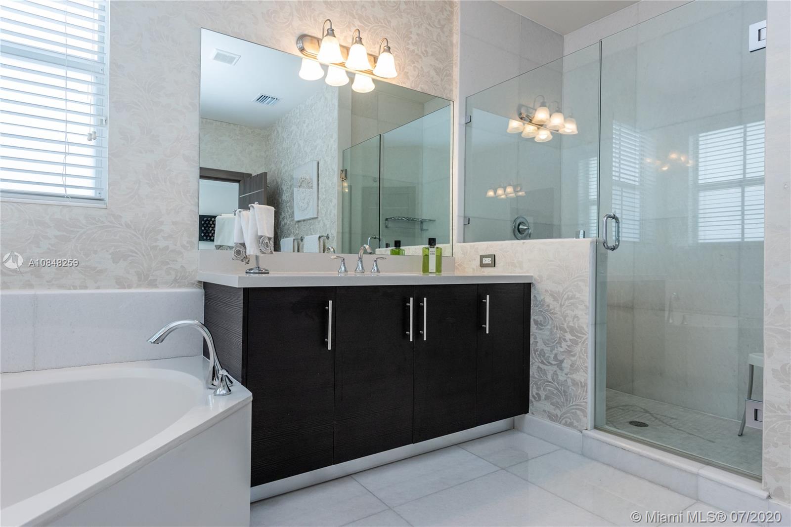 REDUCED FOR A QUICK SALE -Nestled in the heart of Doral, Vintage Estates is a beautiful community with amenities to enjoy. Pools & playgrounds to a gym and saunas. Within walking distance, our residents enjoy the convenience of two shopping malls and various restaurants to choose from. This unique largest model in Vintage features 5 bedroom & 4 full baths. Totally remodeled high-end touches. White marble throughout, modern glass and stainless steel staircase. Impact windows throughout, Italian contemporary closets cabinetry and doors with Stainless S handles, Hunter Douglas windows treatments, black out in all bedrooms, motorized in the stairs and plantation shutters downstairs to the deck/patio area. Smart Lighting Dimmer system.Luxurious totally equipped Summer Kitchen Overlooking lake.