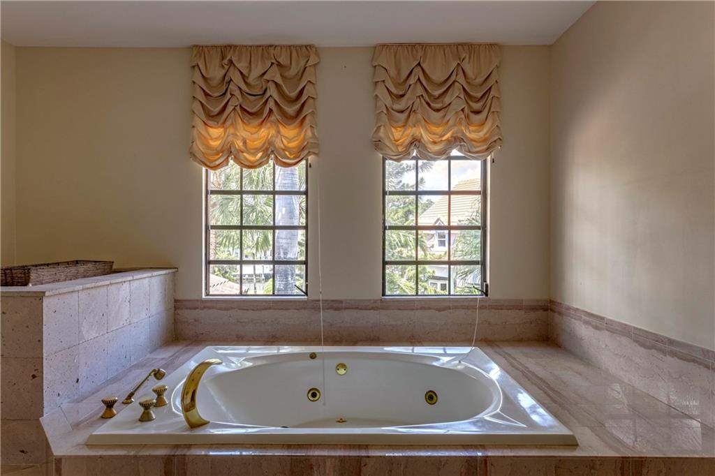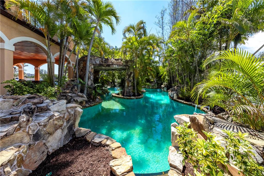 Trophy Point Lot. Nestled on a secluded street of just two homes in exclusive Bay Colony. A developers dream. Amazing opportunity to build your dream home or completely renovate existing Spanish Style structure. Over 450 feet of water-frontage, lagoon style pool, South East exposure .Current structure is comprised of 6 bedrooms 10 baths, approximately 10,868 square feet of living space. Lagoon style pool wraps around the property, waterfalls, grotto, bridge, tropical landscape ground. An ideal setting for outdoor entertainment and Yacht enthusiast. Bay Colony is a private enclave of waterfront homes with 24 hour guard gated security.