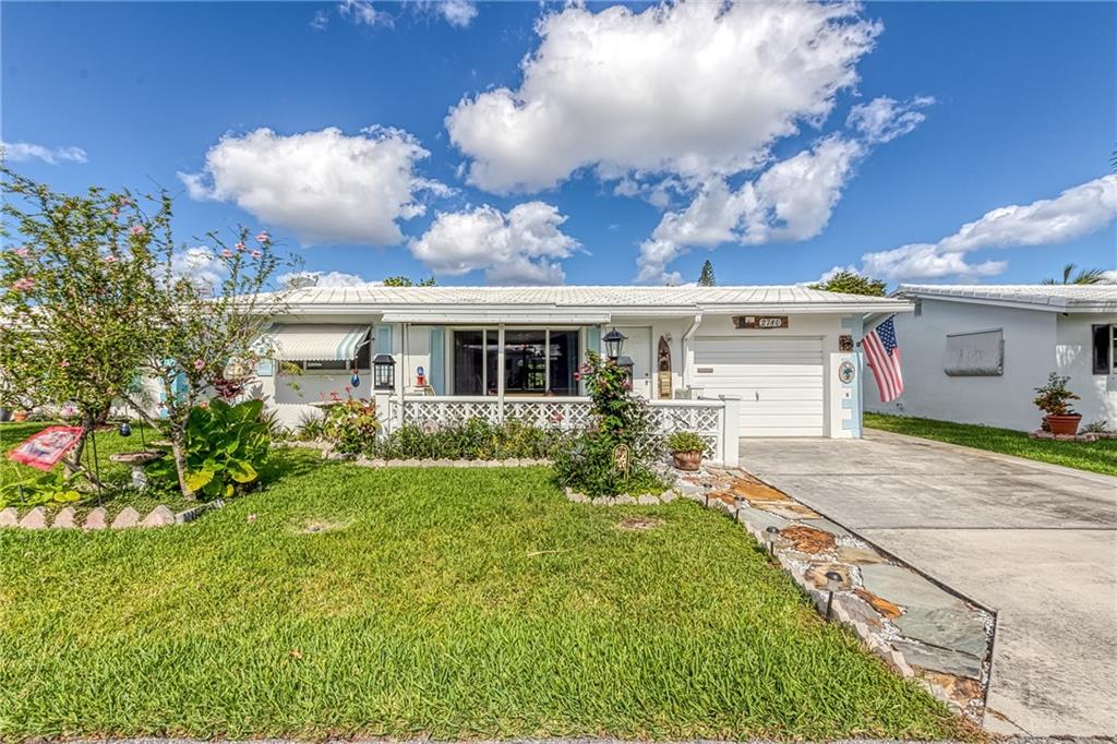 UPDATED and CHARMING 2 bdrm 1 1/2 bath, 1 car garage with ALL IMPACT WINDOWS. Remodeled kitchen with granite counters & pull out drawers! Modern bathrooms and ~1000 sf of porcelain flooring. Relax in your spacious garden backyard with fido exiting the doggie doors to join you on the enclosed back patio. Replaced Roof in 2009 & AC 2015. Low maintenance fees $219/mo and no land lease in this (55+) Active Community, 9-hole Golf Course free to residents, 2 ClubHouses, Pools & Sauna, Gym, Game Rooms with Billiards, Lighted Picnic Areas & a Lake, House and Roof Painting, Water & Sprinklers included. CENTRALLY LOCATED and close to Highways, Parks, Equestrian Stables, Courtesy Bus, the Beach & all of the exciting NEW DEVELOPMENT in Pompano Beach. Safe arrangements for viewing.