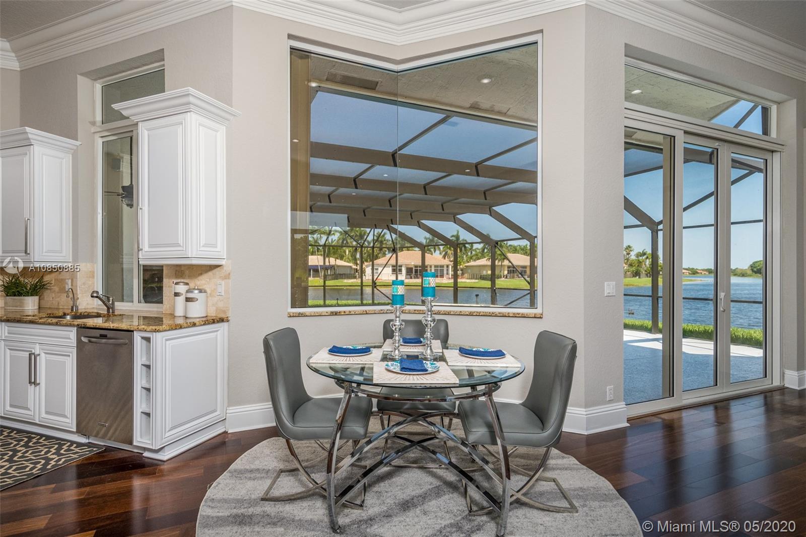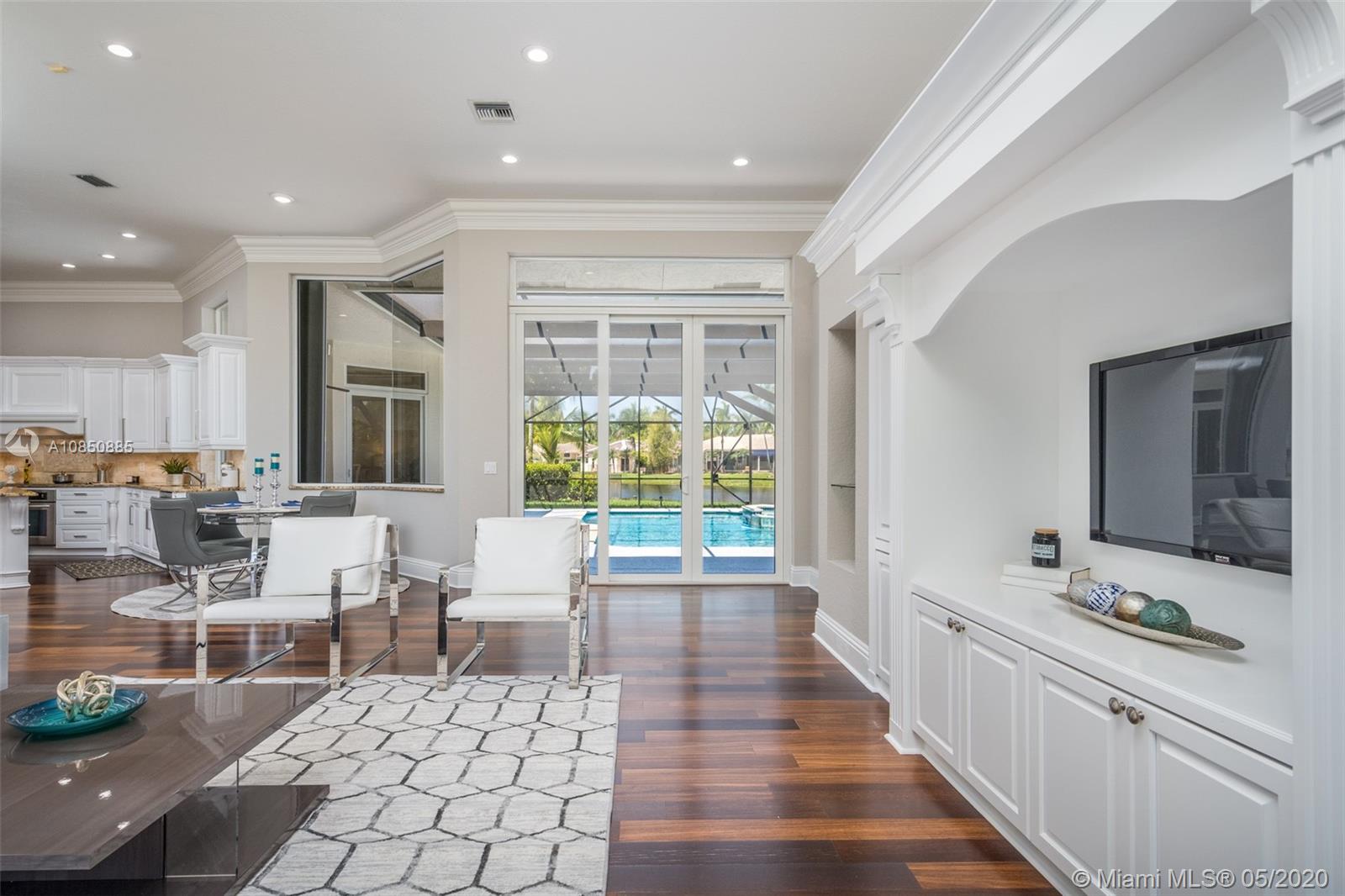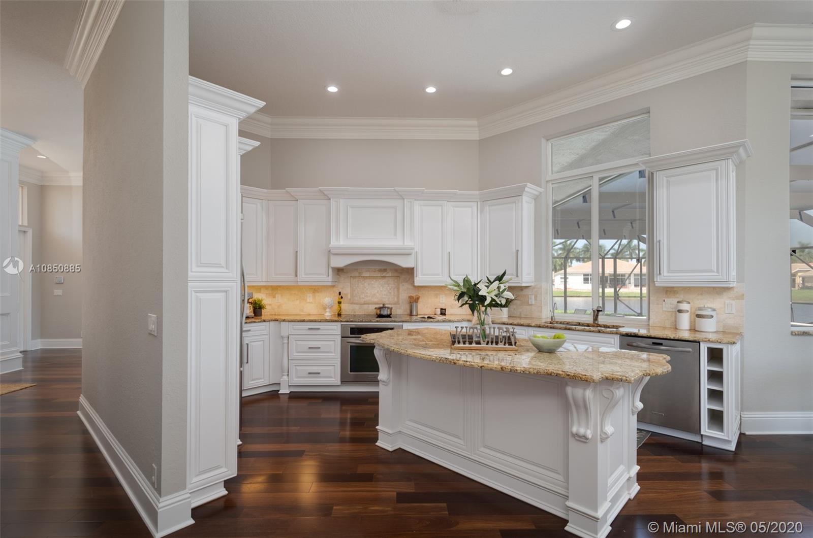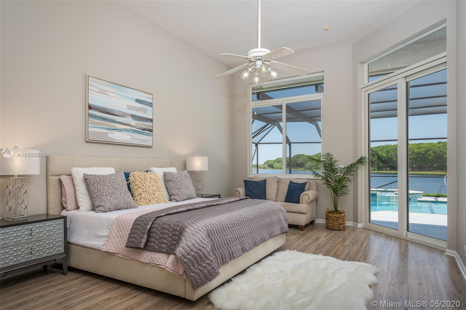 LOTTERY WINNING LOT tucked in quiet CUL DE SAC POINTE WATER LOT backing to the berm for pure privacy. Custom modified Kingsley model boasts a BRAND NEW ROOF 2019 FULL IMPACT PROTECTION hurricane protection. Oversized 18,423 square foot lot with wrapping unobstructed lake views SCREENED POOL/SPA and patio with new DIAMOND BRIGHT 2019 Freshly painted interior in today's hues with REAL WOOD FLOORS in all living areas. Extensive crown moldings. WHITE CONTEMPORARY with center island, granite countertops, top of the line Stainless Steel appliances. Master bedroom with soaring ceilings and windows on the water. NEW SEAMLESS SHOWER in master bath. Triple split floorplan with three more spacious bedrooms plus an office. Cabana bath, decorator light fixtures, new exterior paint, LED LIGHT