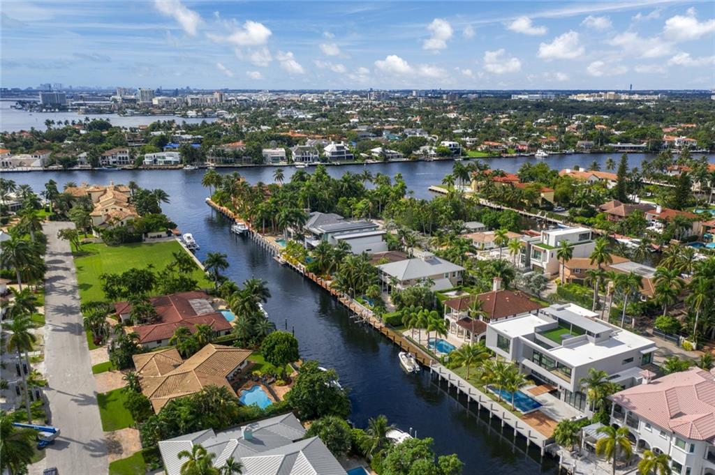 ULTRA MODERN WATERFRONT HOME IN LAS OLAS ISLE! This luxurious home features 100-feet of waterfront on deep water canal access with a new seawall & concrete dock. This estate features 6 beds, 6 full baths, 2 HB, along with a 3-car garage (convertible to 5) 6,430 SF under air. Offering a convenient first-floor VIP suite. Oversized Italian tile flooring throughout, and a pool-facing living area with floor-to ceiling windows. Ideal for waterfront living and entertaining guests, an east-facing waterfront pool, an outdoor summer kitchen, and a 900 SF private, covered rooftop terrace with a jacuzzi (reachable by elevator) and downtown views.The house features a modern gourmet kitchen, outfitted with Cesar Italian cabinetry, a Wolf double oven, a Subzero refrigerator, and oversized kitchen island.
