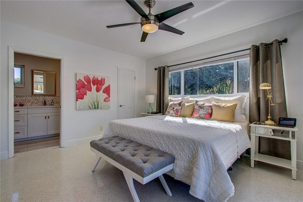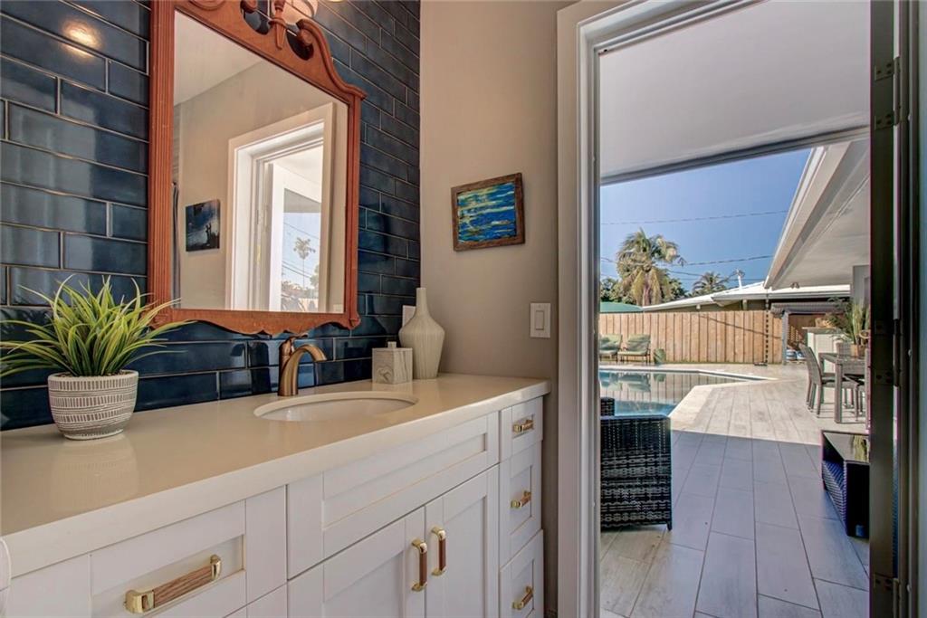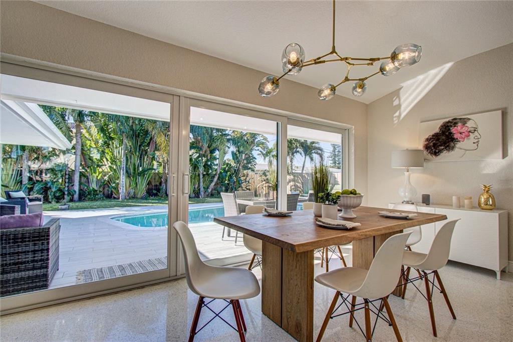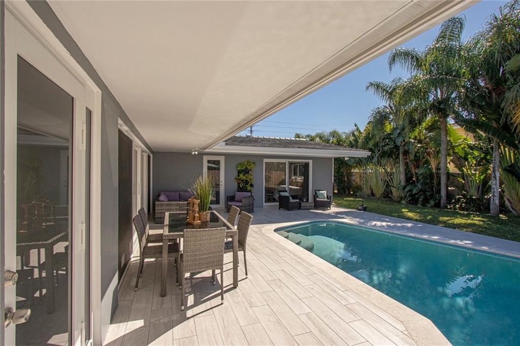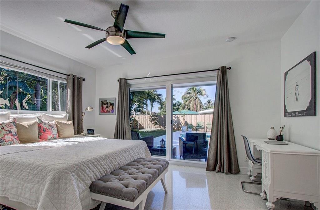 Stunning renovated home in the highly sought after Coral Ridge Country Club. Walk to the beach and restaurants. This Mid-Century home was beautifully updated and boasts all impact window's and doors, new roof with straps, mission style painted kitchen cabinets with Quartz, large open living/ dining area with 10' ceilings, restored terrazzo floors and large double sliders that bring the outdoors in. The master has a large soaking tub, marble tile, walk in closet and opens onto the patio. Bonus room for an office or guest room as well as 3 additional bedrooms. The custom pool has a beautiful tiled patio and is surrounded with palms that create a tranquil private area for enjoying the pool. Excellent location close to public beach, park, and more.