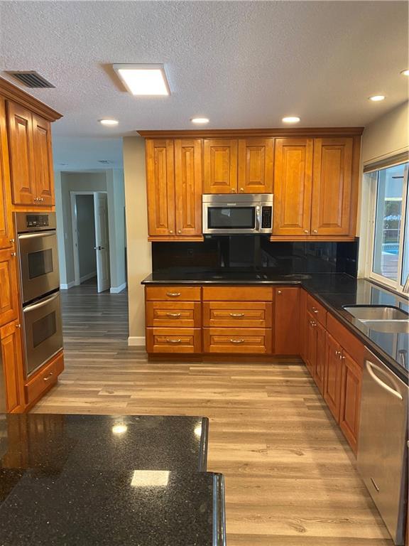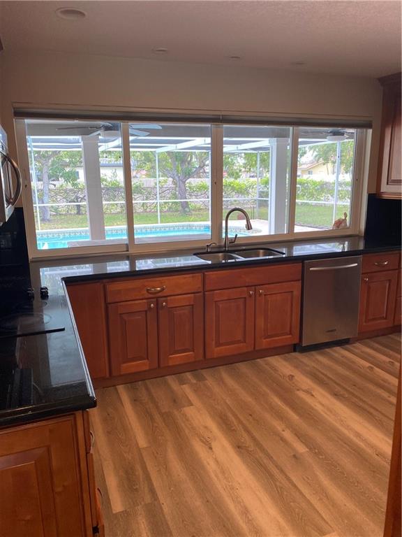 Beautiful CORNER POOL home w/5BR 4 Bath offering 3100+sq ft Liv area. Large Open kitchen w/granite counters, stainless appliances, overlooking Pool and backyard. Wood laminate floor throughout. Large Formal dining room, family room and large bedrooms w/plenty of closet space throughout. Master Bath is very spacious, has double sinks, Large Shower and a lot of closet space. Large laundry room with deluxe Washer/Dryer and huge Laundry Sink.