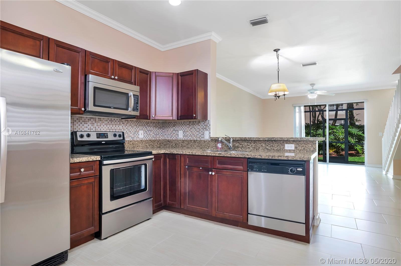 LOW HOA!!! Immaculate, well-maintained 2/2/1, turn-key ready townhome in the sought after community of San Messina is awaiting you. Beautiful kitchen, SS Appliances, Granite countertops & eat-in area. Imagine opening up the sliding glass doors to an enclosed patio, enjoying evenings relaxing, while overlooking the garden view. Seller states whole house is HURRICANE PROTECTED & Both ACs REPLACED in 2013 - Brand LENNOX! Enjoy the resort-style pool, sandy playground for the tots, and a volleyball court, all within walking distance from your home. Weston schools hold an “A” rating, also within walking distance to the shopping plaza with businesses, eateries and retail shops. Located less than 45 miles from major airports, major roadways, Sawgrass Expressway, the Turnpike & I-95.
