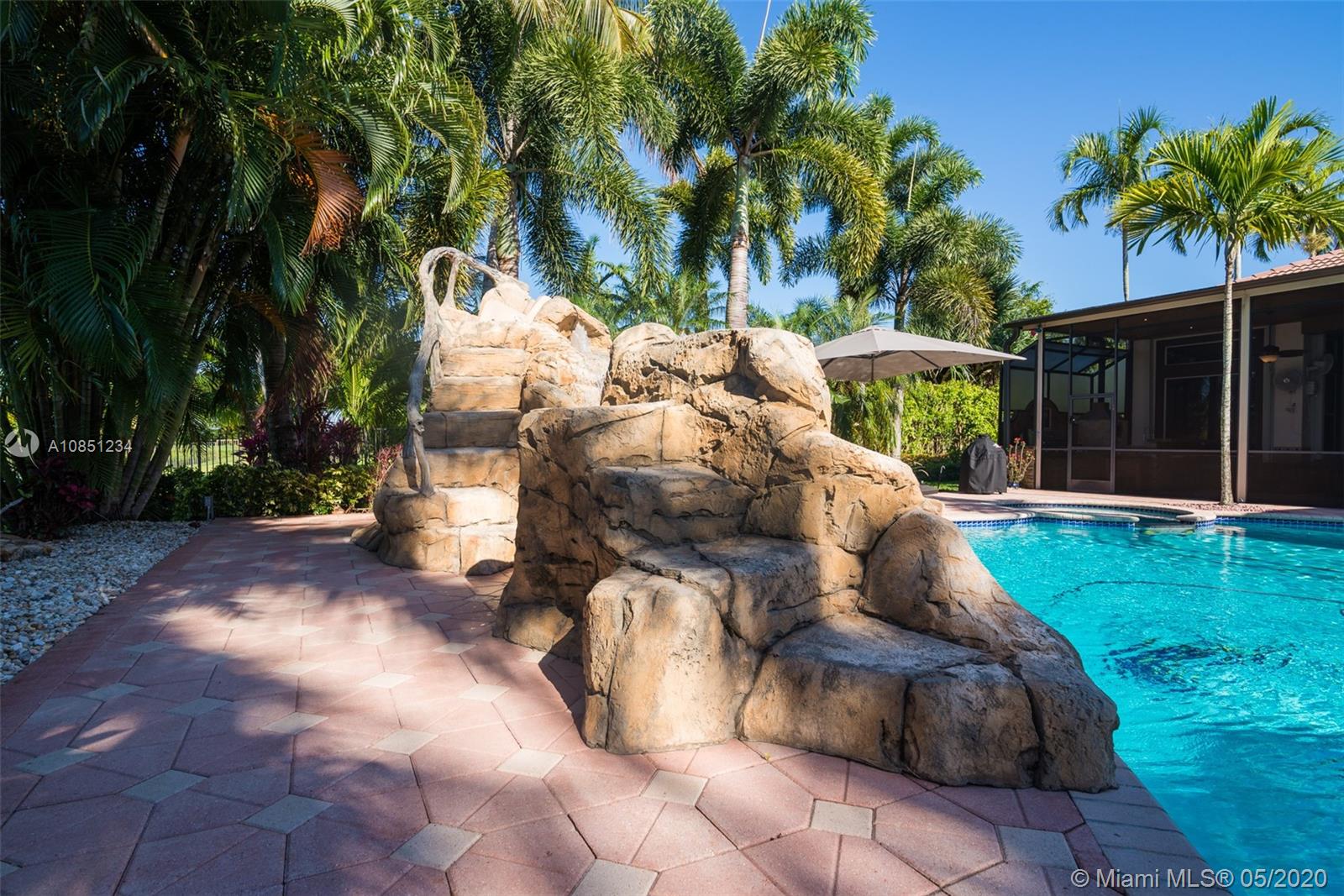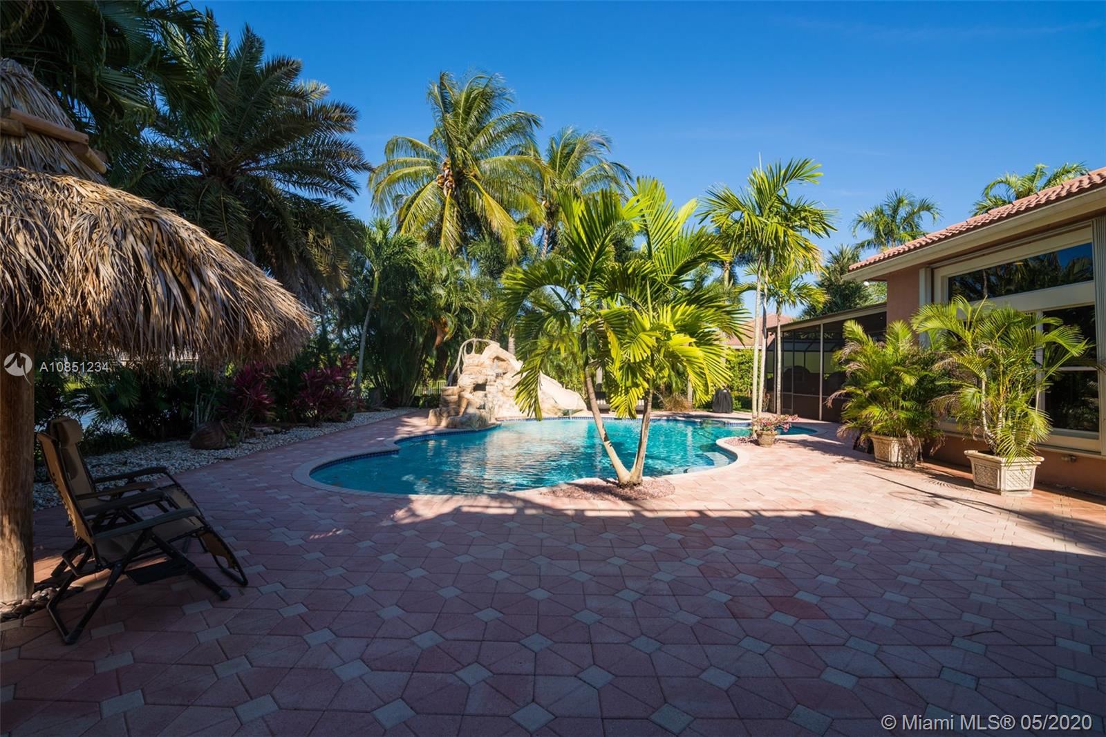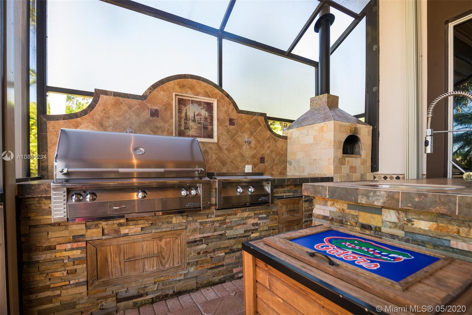 Welcome to your DREAM HOME at the luxurious Riverstone Community. Open and spacious 3-way split floor plan featuring 5 Bedrooms plus a Den, Circular Driveway, and Ornamental water fountain at the front of the home that adds to the amazing curb appeal. Spectacular LAKE views! BRAND NEW CONTEMPORARY STYLE KITCHEN w/ wood cabinets, apron sink, quartz countertops, & multifunctional kitchen island. Elegant Master Suite w/sitting area, 2 walk-in closets w/organizers. BUT WAIT… THE BACKYARD! Soak in the hot tub, take a plunge down the slide to your pool, kick back under the 2 tiki huts, or bake a personal pizza in the pizza oven. It’s your own private tropical retreat! Accordion Shutters. Most private cul-de-sac street. Amazing gated community w/ basketball and tennis courts play areas, and more!