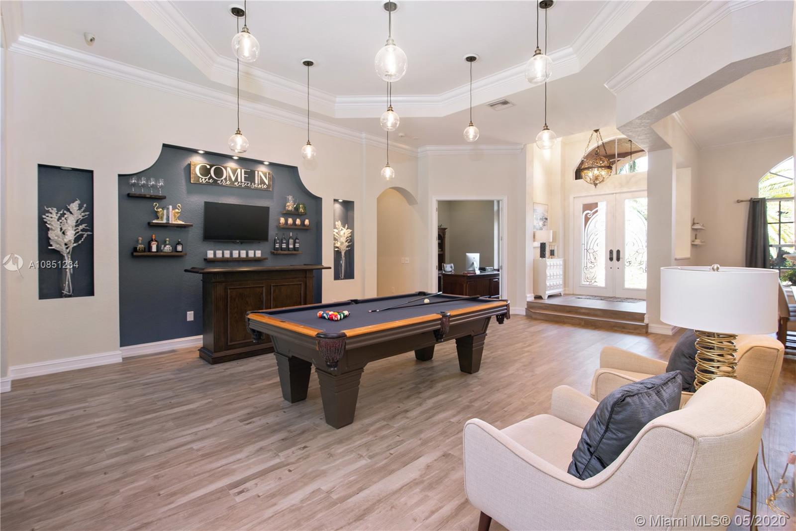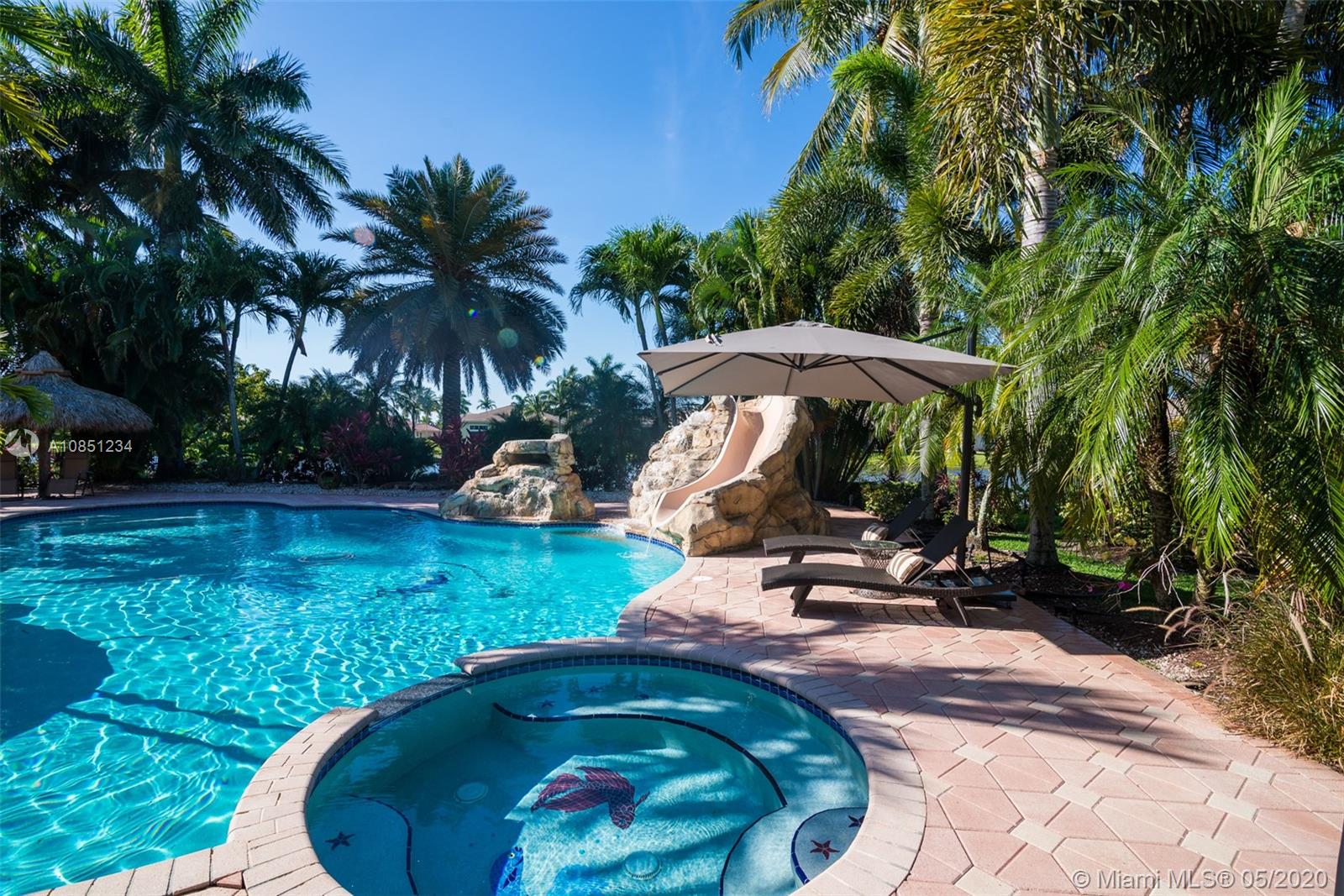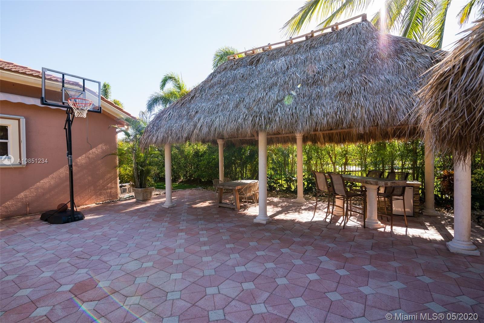 Welcome to your DREAM HOME at the luxurious Riverstone Community. Open and spacious 3-way split floor plan featuring 5 Bedrooms plus a Den, Circular Driveway, and Ornamental water fountain at the front of the home that adds to the amazing curb appeal. Spectacular LAKE views! BRAND NEW CONTEMPORARY STYLE KITCHEN w/ wood cabinets, apron sink, quartz countertops, & multifunctional kitchen island. Elegant Master Suite w/sitting area, 2 walk-in closets w/organizers. BUT WAIT… THE BACKYARD! Soak in the hot tub, take a plunge down the slide to your pool, kick back under the 2 tiki huts, or bake a personal pizza in the pizza oven. It’s your own private tropical retreat! Accordion Shutters. Most private cul-de-sac street. Amazing gated community w/ basketball and tennis courts play areas, and more!