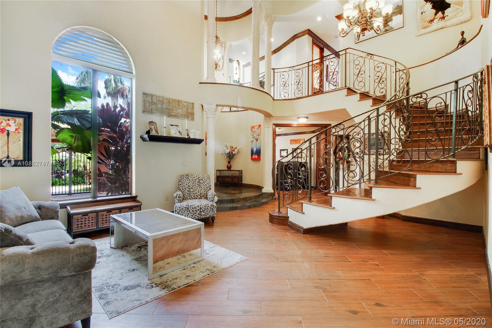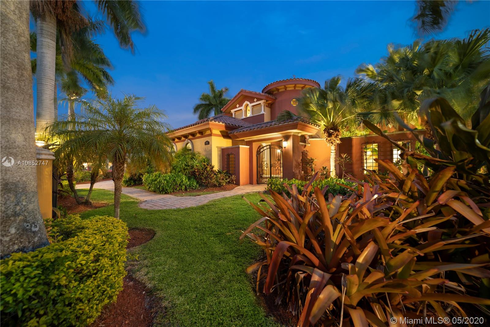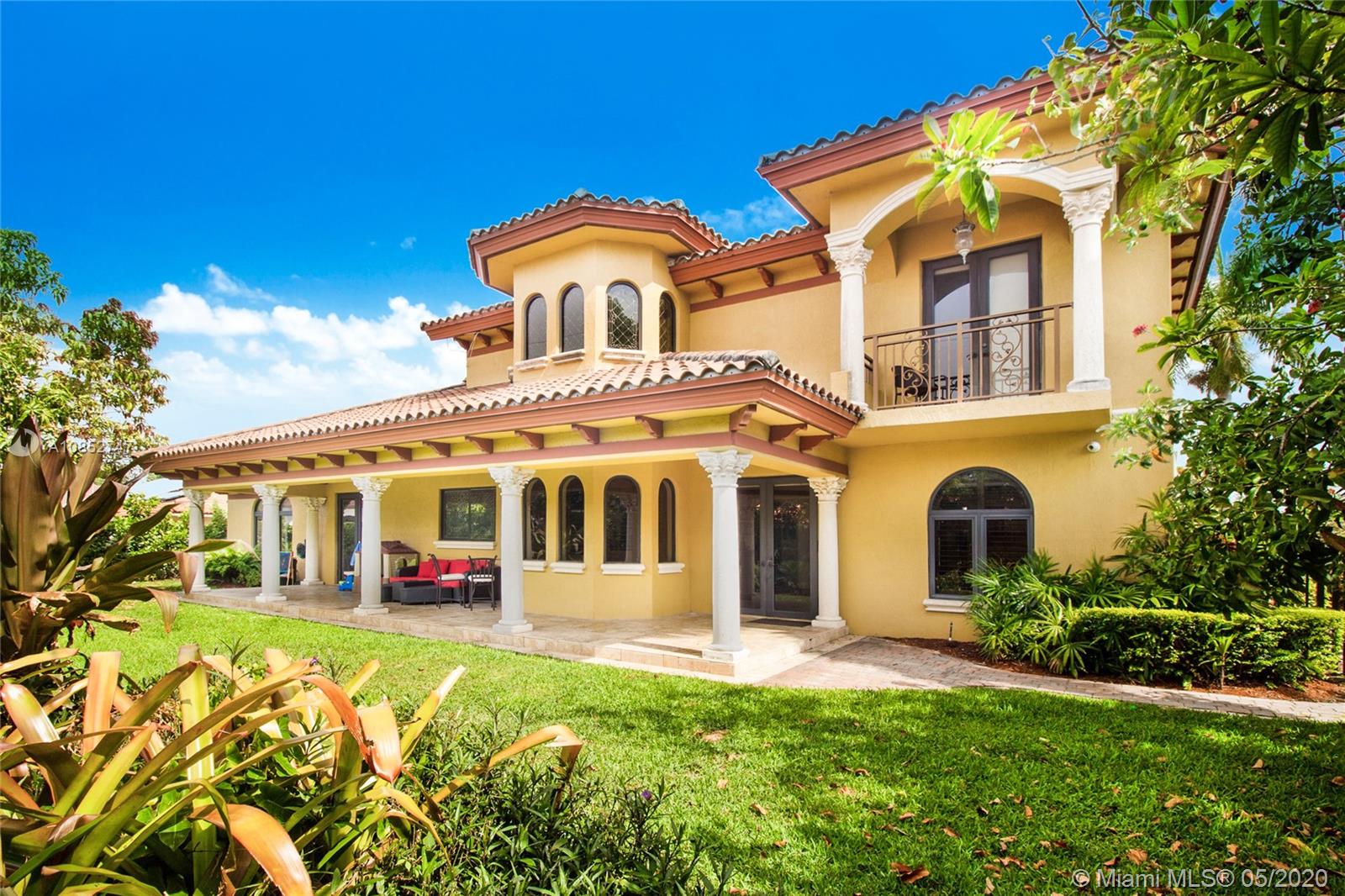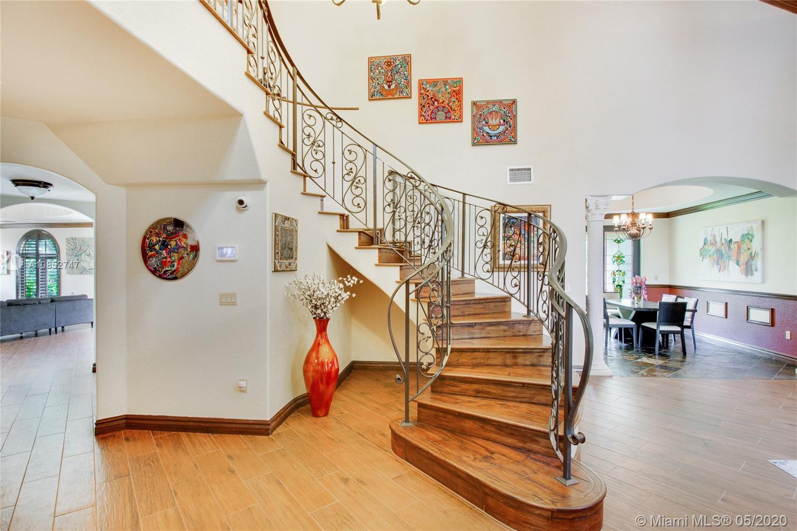 Beautiful, highly upgraded and move-in ready home in sought after Vanderbilt Park-High ceilings-crown molding, custom 10’ solid Mahogany arched doors in picturesque entranceway with stone columns- iron railing spiral staircase.Chef’s kitchen- granite countertops-custom backsplash-high end appliances-huge walk-in pantry, and vibrant stained glass windows/doors.Built-in wet bar-TV entertainment center with indoor/outdoor sound system. All bathrooms upgraded with tile mosaic on walls and natural stone floors. Large walk-in closets with built-ins.All Impact/hurricane doors and windows. Indoor/outdoor security cameras. Wi-Fi enabled alarm system, ACs, entrance swing gate-3 car garage-Architectural landscaping with lighting. Every detail of this house was carefully selected and quality crafted.
