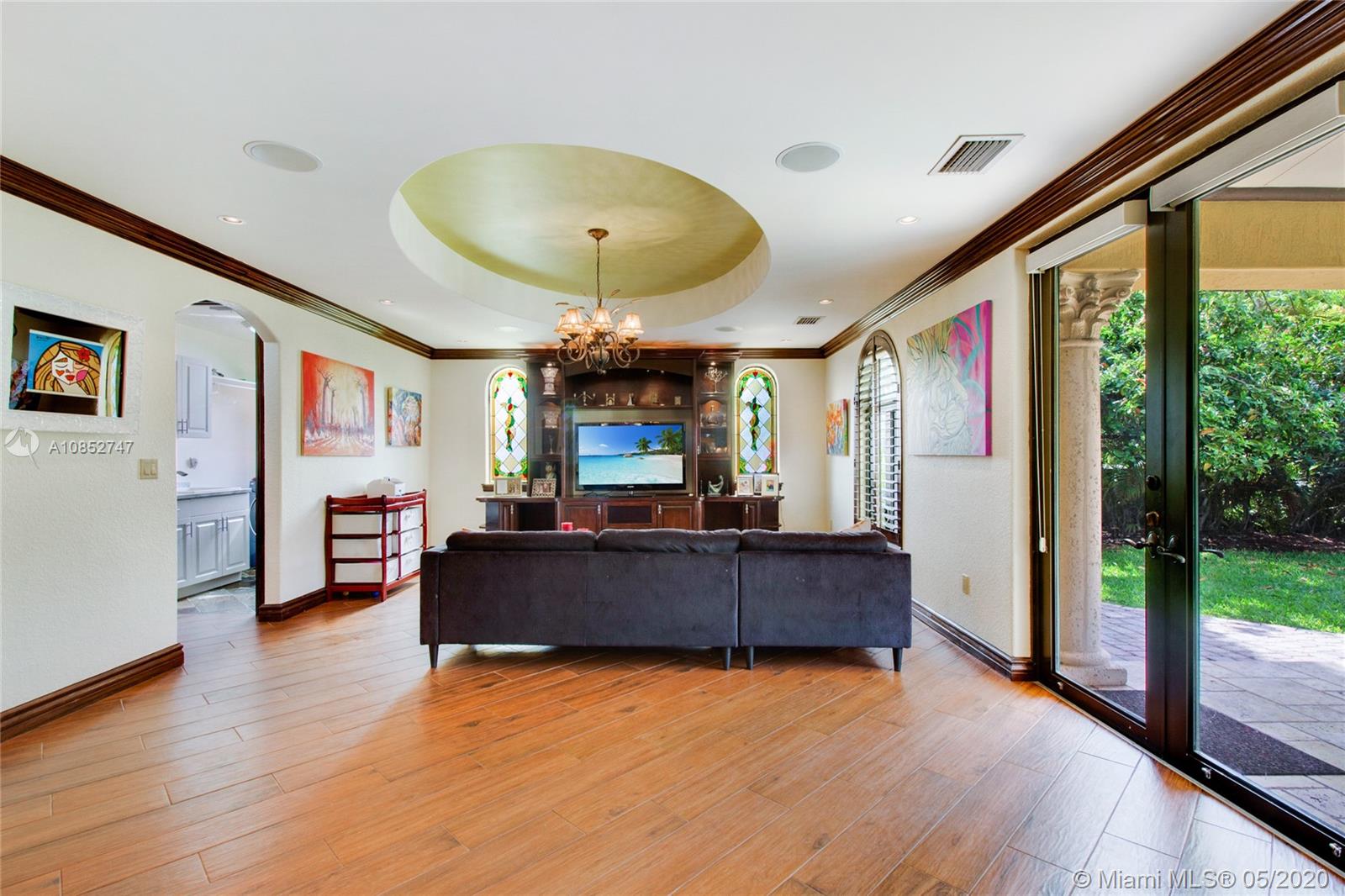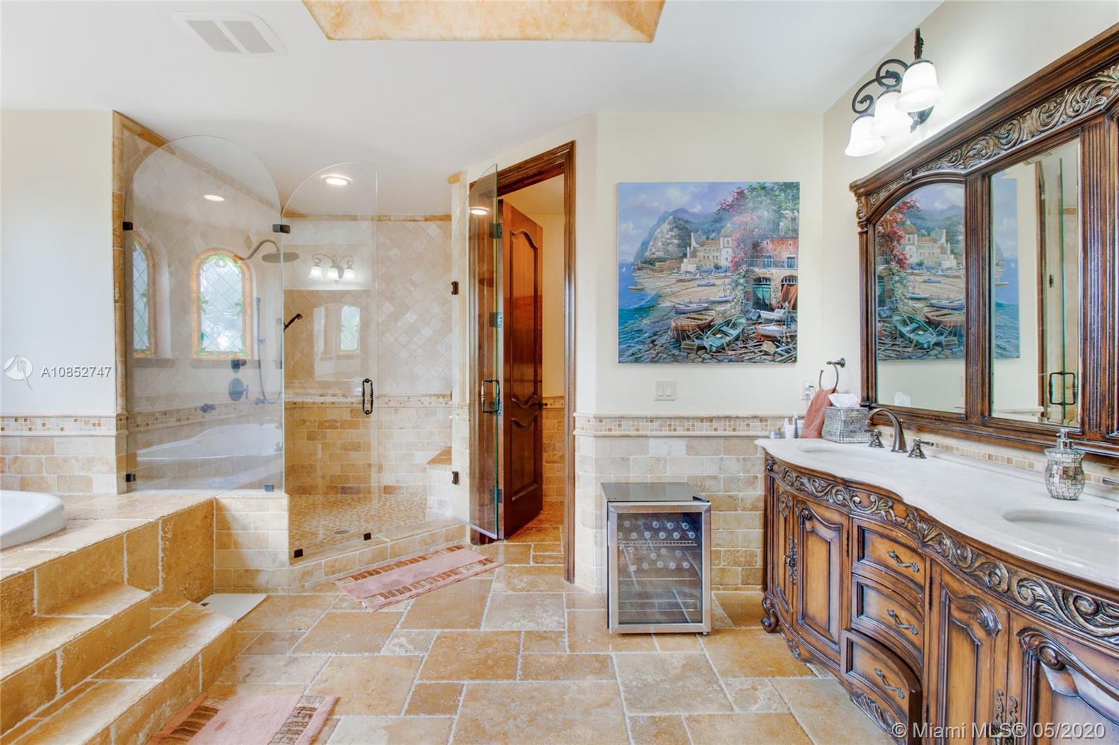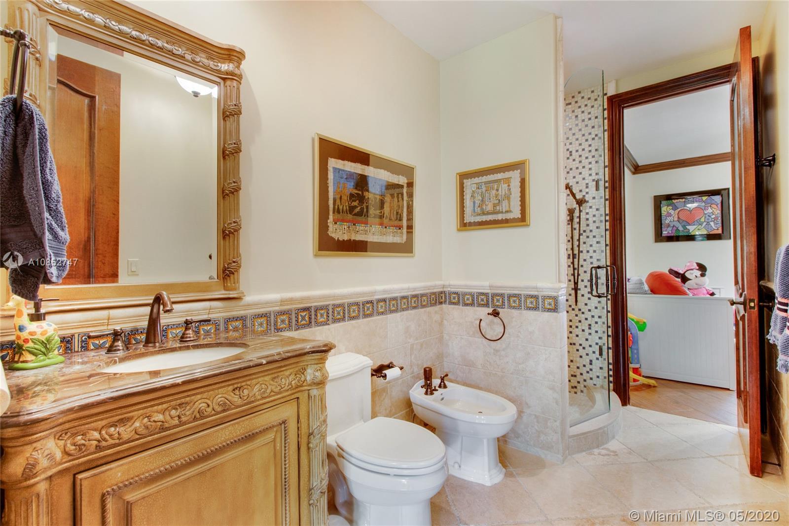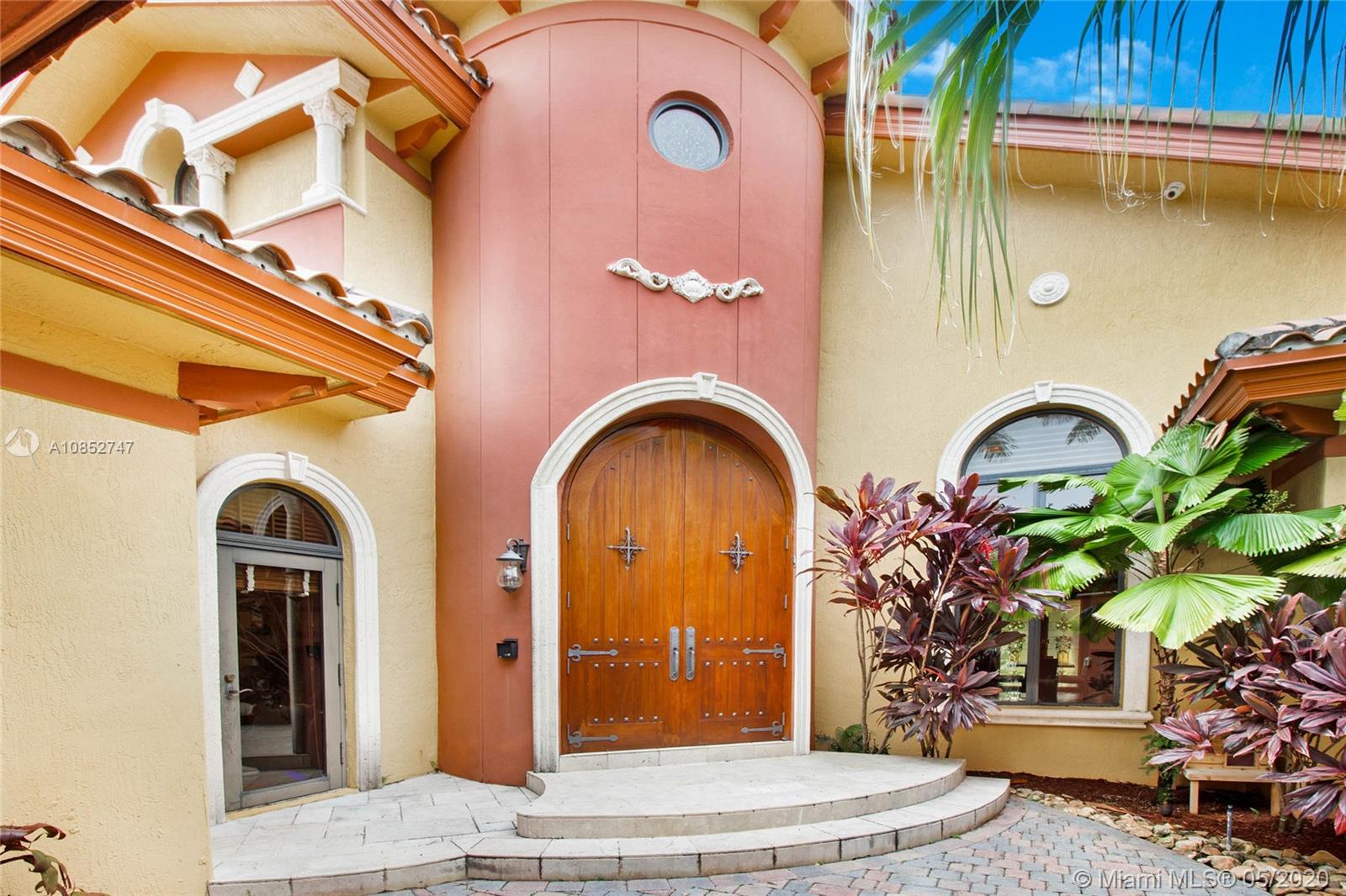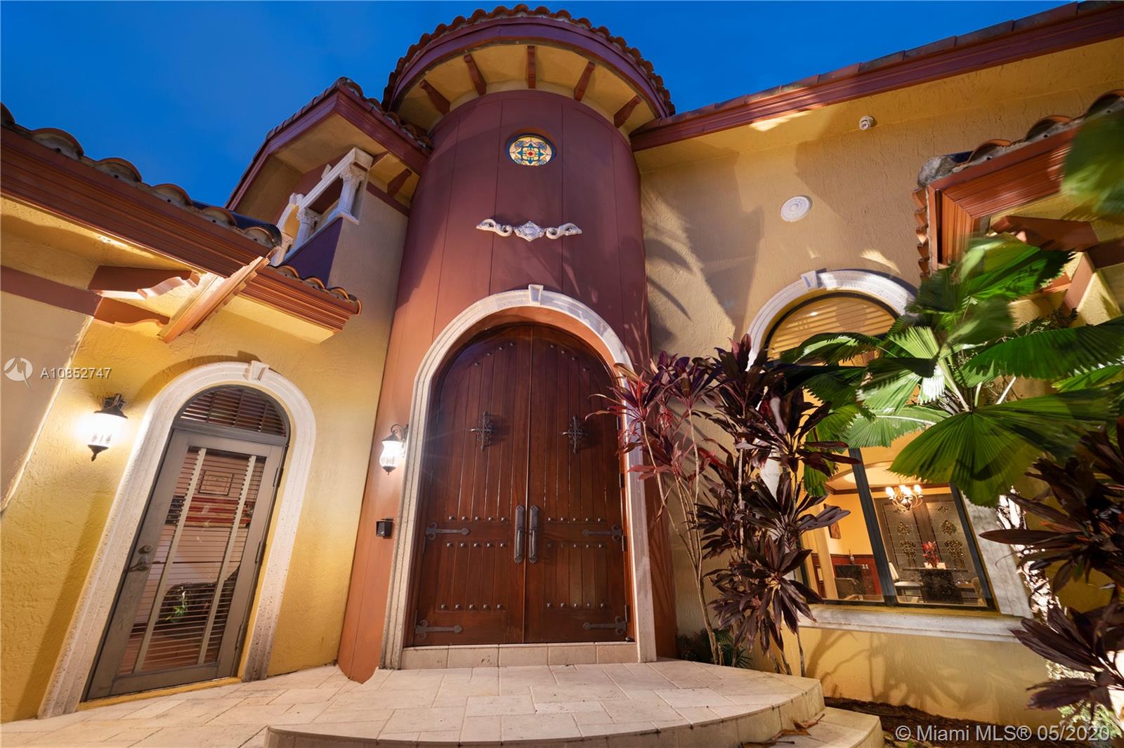 Beautiful, highly upgraded and move-in ready home in sought after Vanderbilt Park-High ceilings-crown molding, custom 10’ solid Mahogany arched doors in picturesque entranceway with stone columns- iron railing spiral staircase.Chef’s kitchen- granite countertops-custom backsplash-high end appliances-huge walk-in pantry, and vibrant stained glass windows/doors.Built-in wet bar-TV entertainment center with indoor/outdoor sound system. All bathrooms upgraded with tile mosaic on walls and natural stone floors. Large walk-in closets with built-ins.All Impact/hurricane doors and windows. Indoor/outdoor security cameras. Wi-Fi enabled alarm system, ACs, entrance swing gate-3 car garage-Architectural landscaping with lighting. Every detail of this house was carefully selected and quality crafted.
