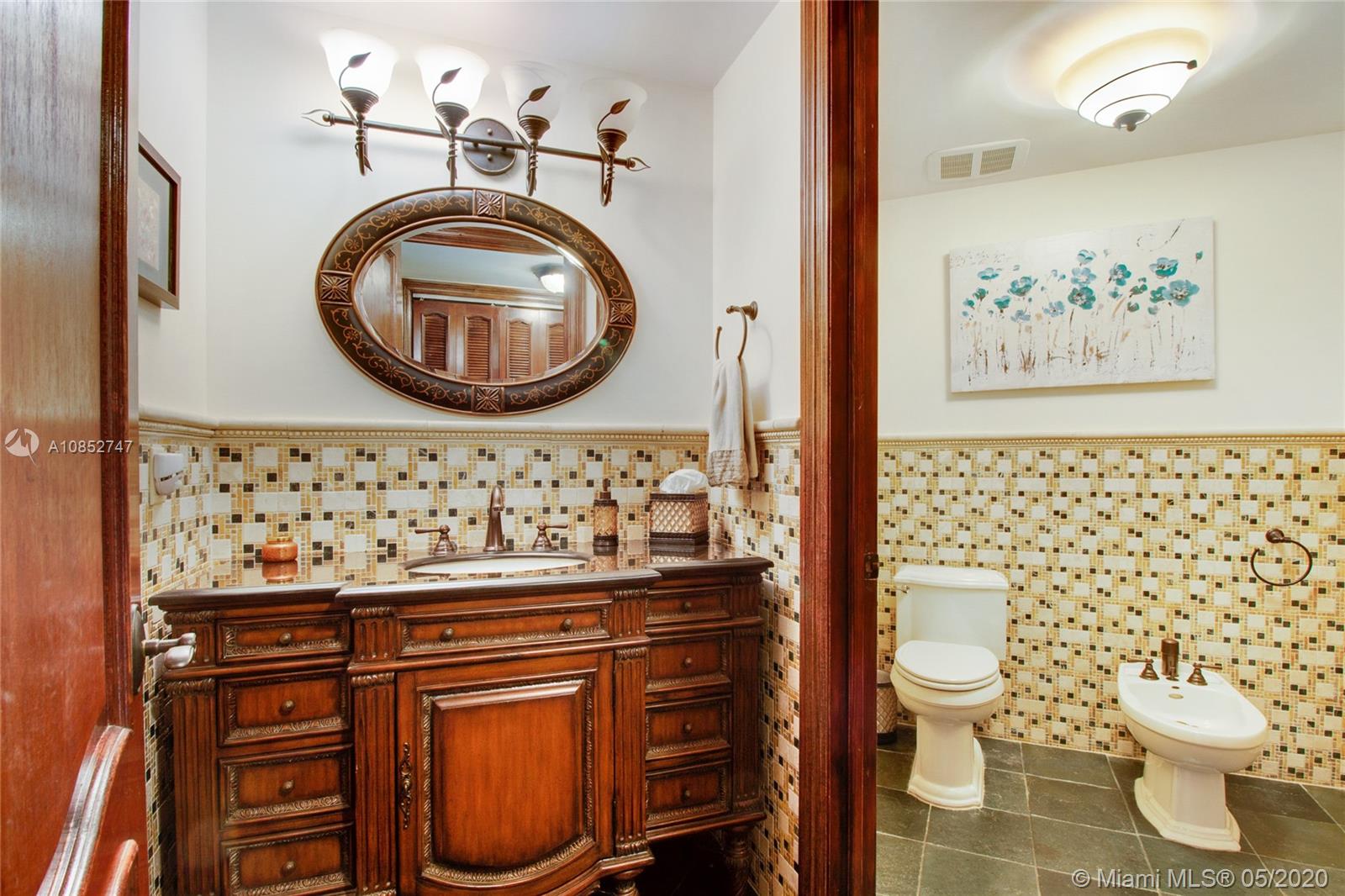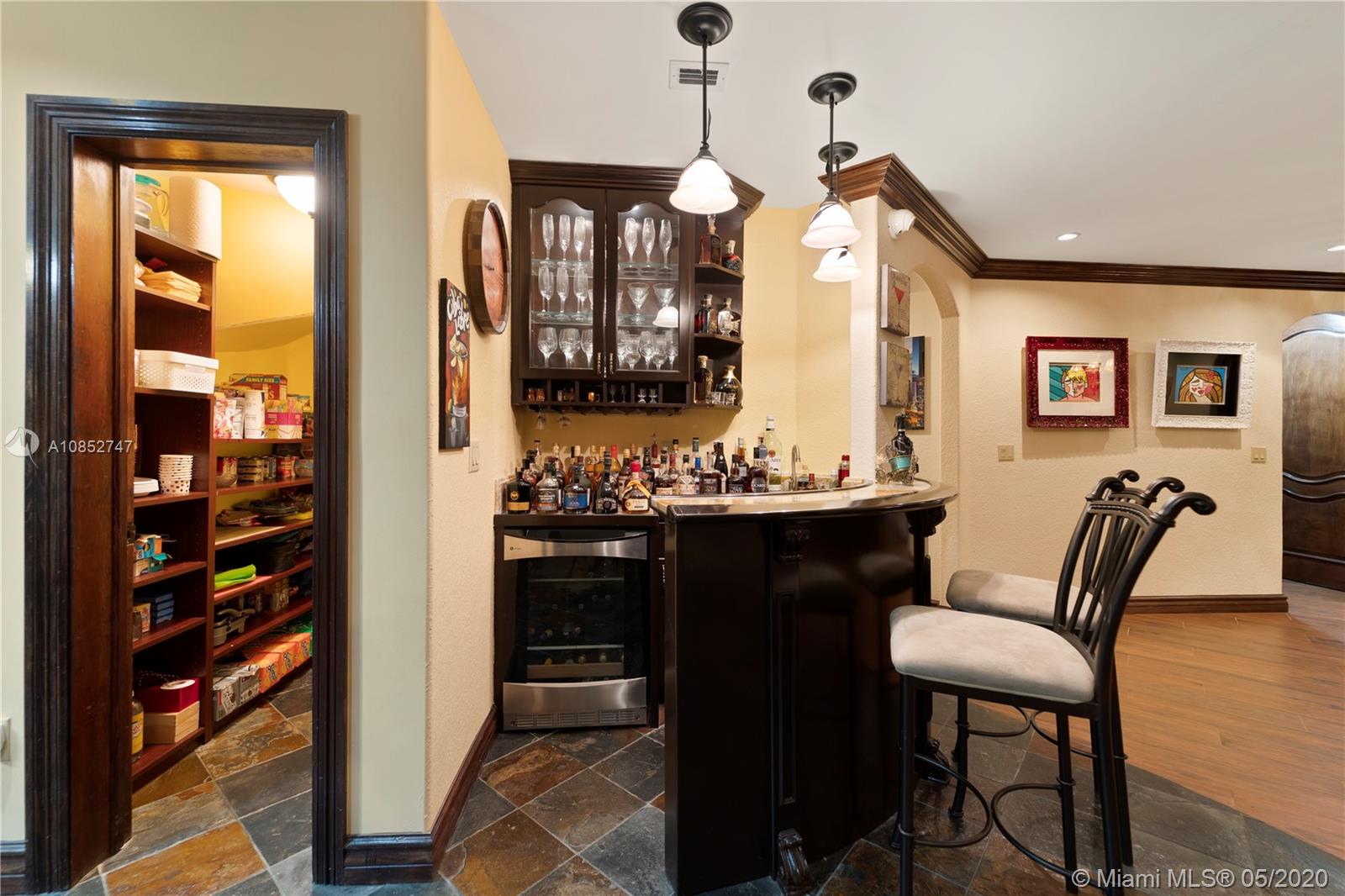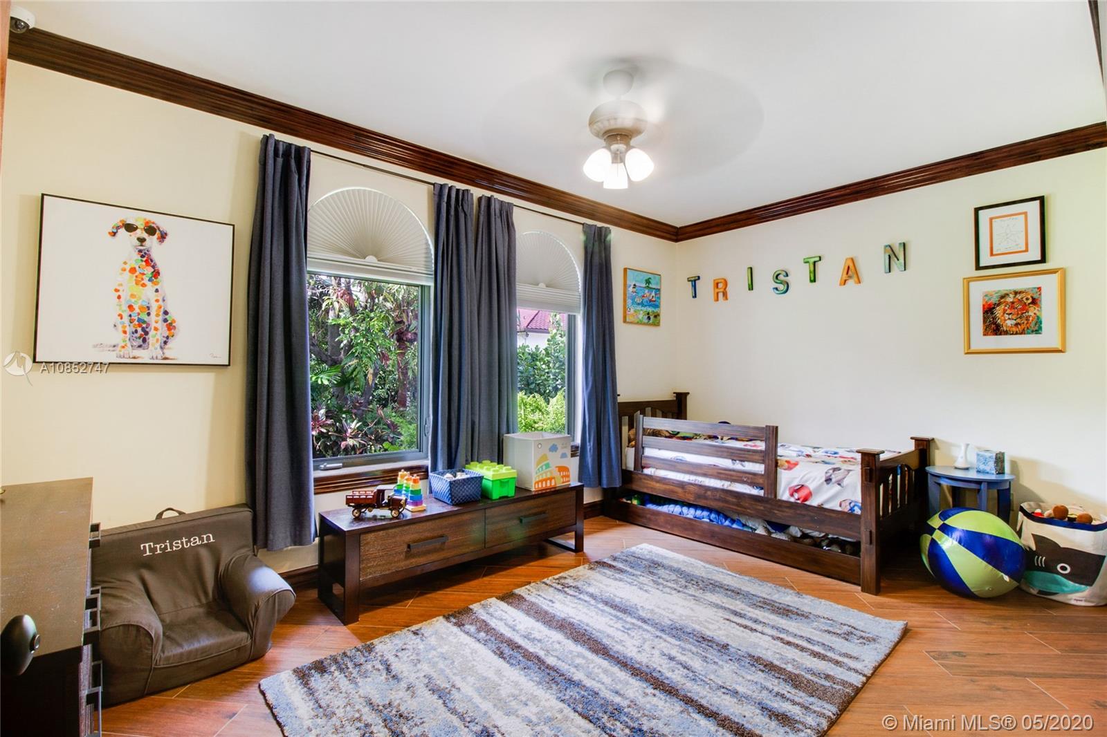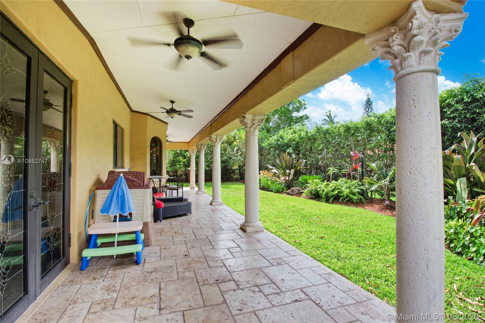 Beautiful, highly upgraded and move-in ready home in sought after Vanderbilt Park-High ceilings-crown molding, custom 10’ solid Mahogany arched doors in picturesque entranceway with stone columns- iron railing spiral staircase.Chef’s kitchen- granite countertops-custom backsplash-high end appliances-huge walk-in pantry, and vibrant stained glass windows/doors.Built-in wet bar-TV entertainment center with indoor/outdoor sound system. All bathrooms upgraded with tile mosaic on walls and natural stone floors. Large walk-in closets with built-ins.All Impact/hurricane doors and windows. Indoor/outdoor security cameras. Wi-Fi enabled alarm system, ACs, entrance swing gate-3 car garage-Architectural landscaping with lighting. Every detail of this house was carefully selected and quality crafted.