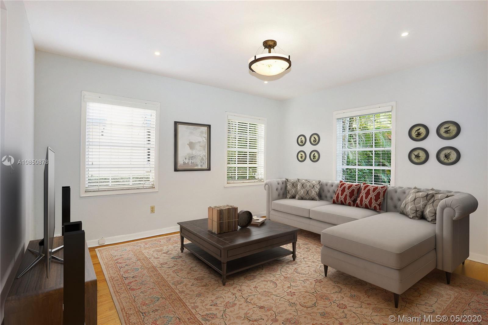 This Coral Gables 1926 Old Spanish style 3 bedroom/2 bathroom home with pool is a fabulous opportunity just 2 blocks from the Granada Golf Course & Country Club on a lovely tree-lined street. With traditional characteristics such as original swirled Corinthian columns in the foyer, French windows, a working fireplace & beautiful hardwood floors give this home a great balance for its modern features. Other features include updated bathrooms, an ample kitchen with s/s appliances, custom built-in closets & a newer roof under warranty. The fenced backyard features a lush tropical garden with a great pool as its focal point, brick pavers, a sizeable covered tiled bar & room for plenty more. This home truly transports you to another era with lots of potential in a great location.