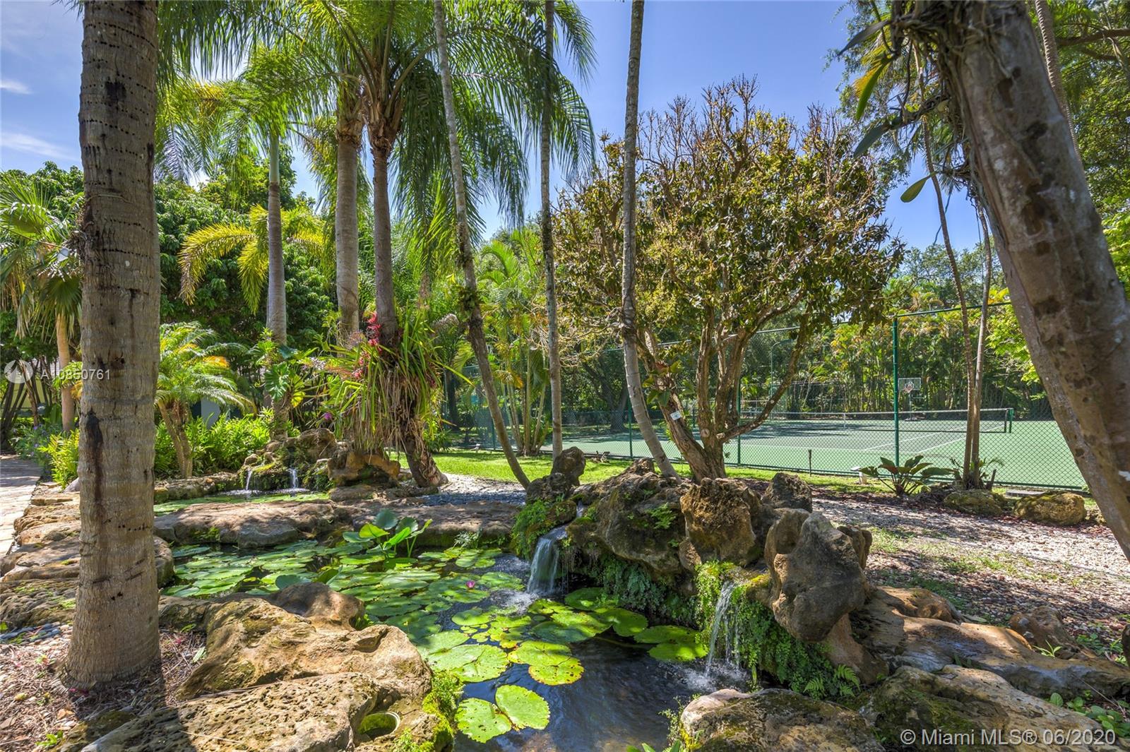 Enjoy a relaxed luxury lifestyle in this Pinecrest family oasis on a deep, private & lushly landscaped acre on a fabulous no-through street. This is the open floor plan you’ve been searching for w effortless flow between living, dining & family rooms & views of the pool & garden thru an expanse of French doors. A fireplace & sky lights add to the warmth & ambiance. This home was fully renovated in 2000 to include new plumbing, stunning travertine floors, an office + great kitchen w granite counters & huge butler’s pantry w extra frig & storage. The split floor plan has 2 masters w custom closets, built-ins and baths w jacuzzi’s. The quintessential entertainer’s dream w/ heated pool, covered patio, lit tennis court, koi pond, wet bar, bbq & fruit trees. New roof 2019, all Pinecrest schools.