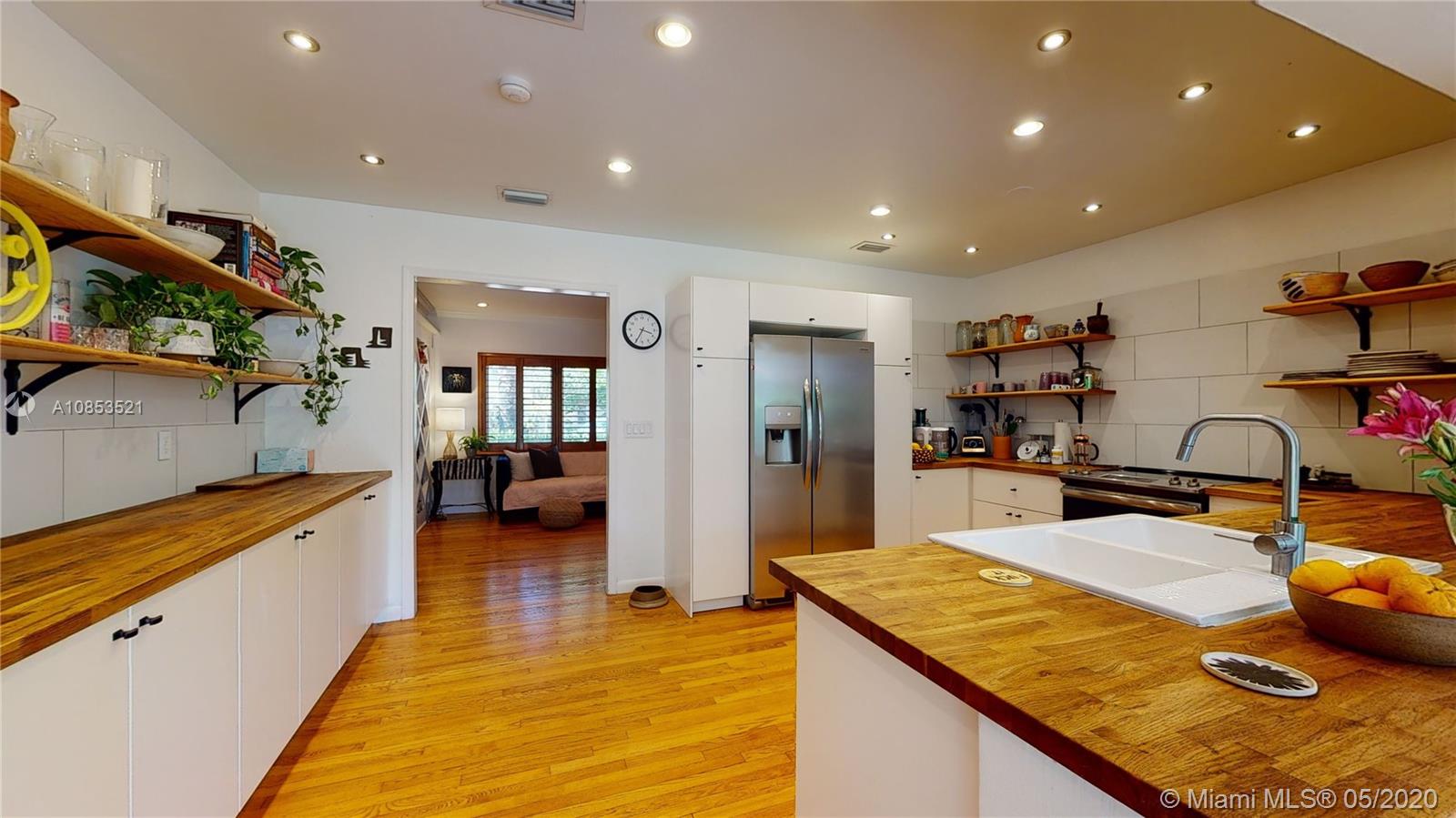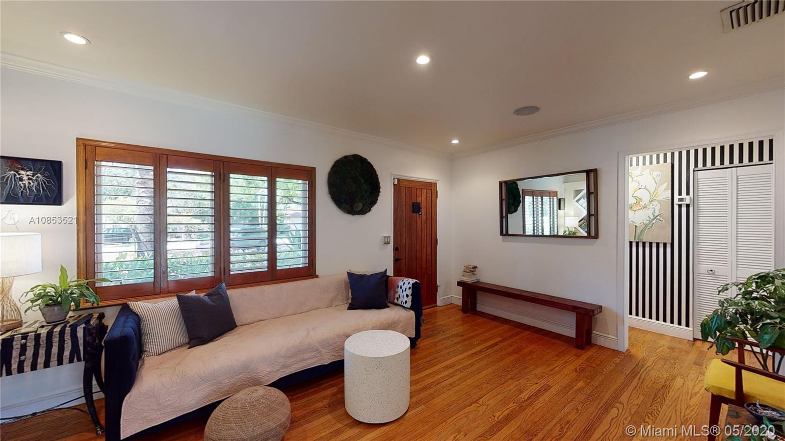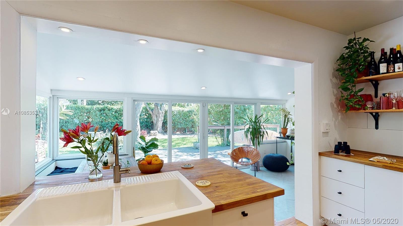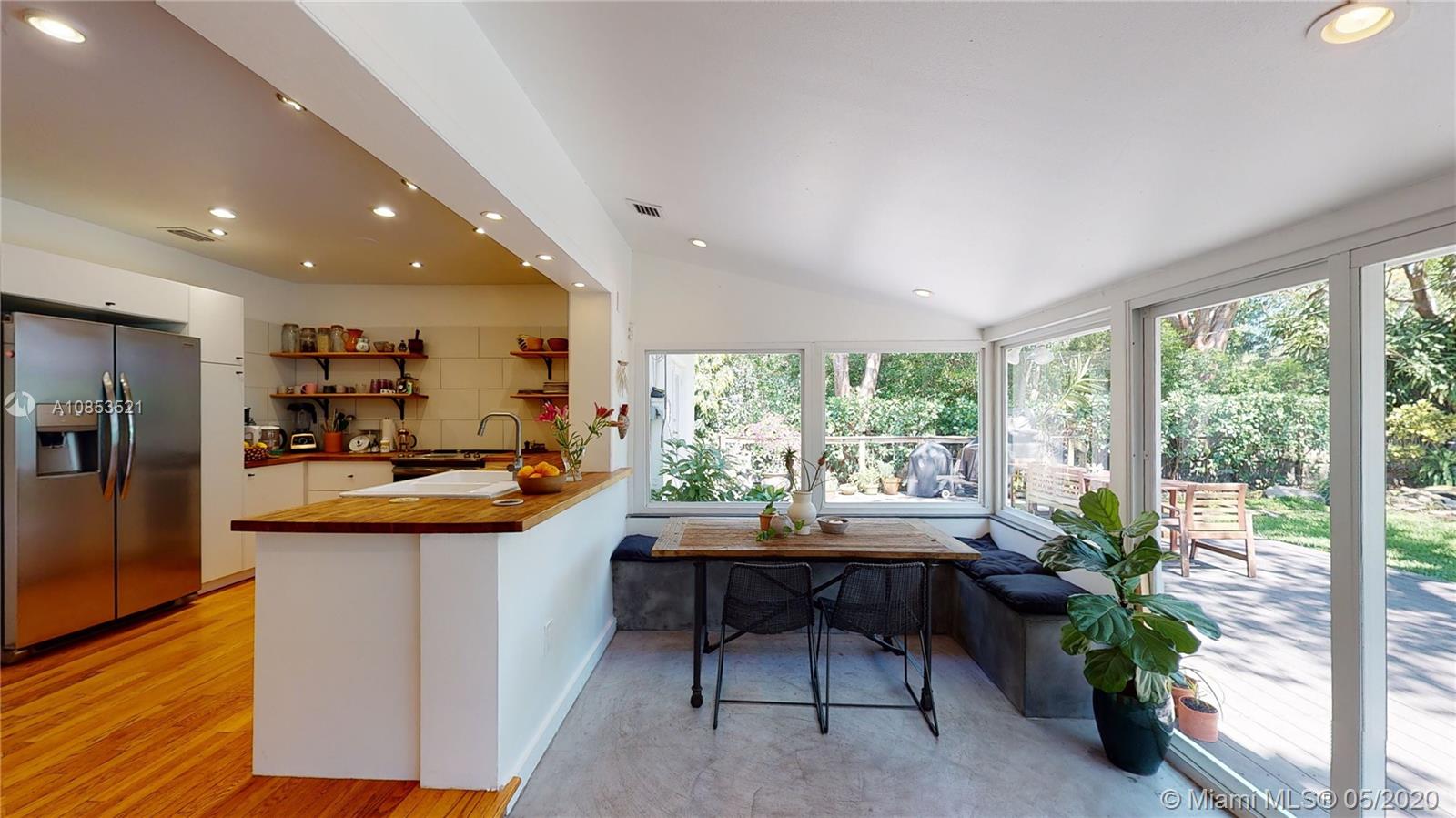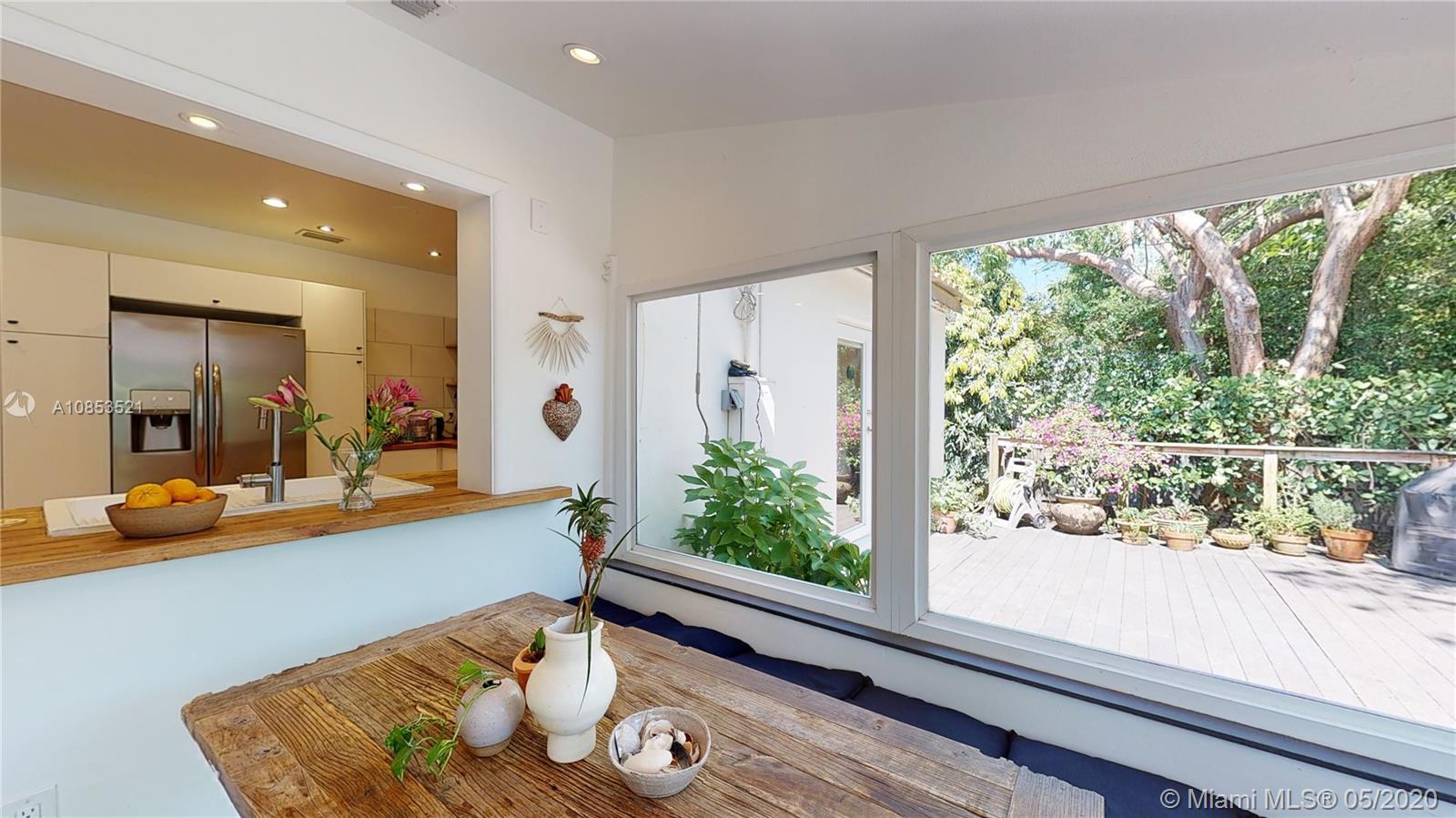 This lovely Garden bungalow is surrounded by a fantastic garden with bamboo, oak trees, privacy hedge and a waterfall with koi pond.The home is 1355 sq ft as per the seller. The home features new kitchen, 2 new bathrooms, bdrm converted to master closet, alarm ready, wifi-sprinkler system and Pergola parking.The floors are wood and sealed concrete.Kitchen area features open plan with new appliances, cabinetry and shelving. Master bathroom is pebbled lined with rain shower. Windows and Glass doors are impact. There are 2 sheds for storage.This home is in walking distance to the new downtown Miami shores.