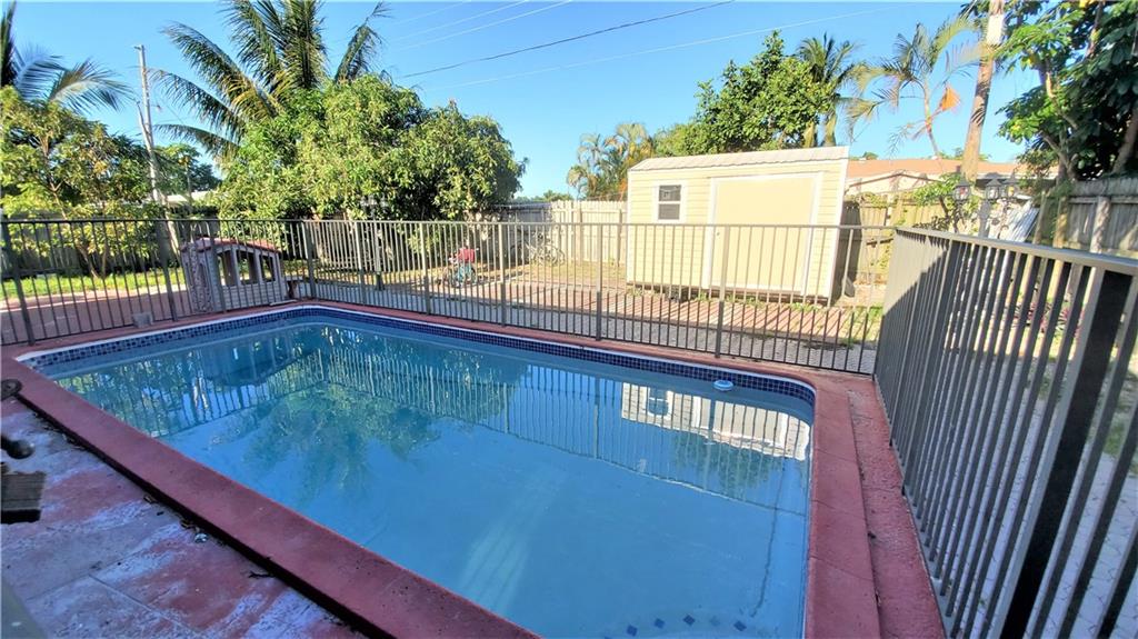 Great 3 bedroom 2 full bath home in family neighborhood. BRAND NEW ROOF, IMPACT WINDOWS, fenced pool, huge yard and amazing mango tree! Tile floors throughout, big master bedroom sits on large corner lot with 1 circular drive and 1 regular. Outdoor shed for extra storage and large patio for outside fun! Sprinkler system, tons of parking, Bonus room , new washer and hook up for dryer. A/C 2015, WATER HEATER 2017