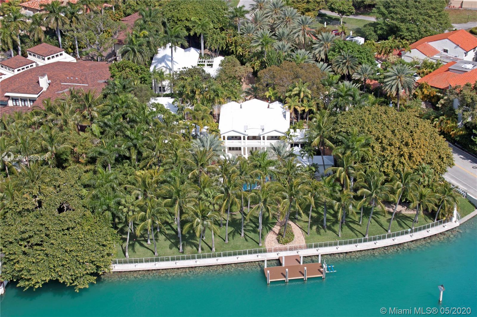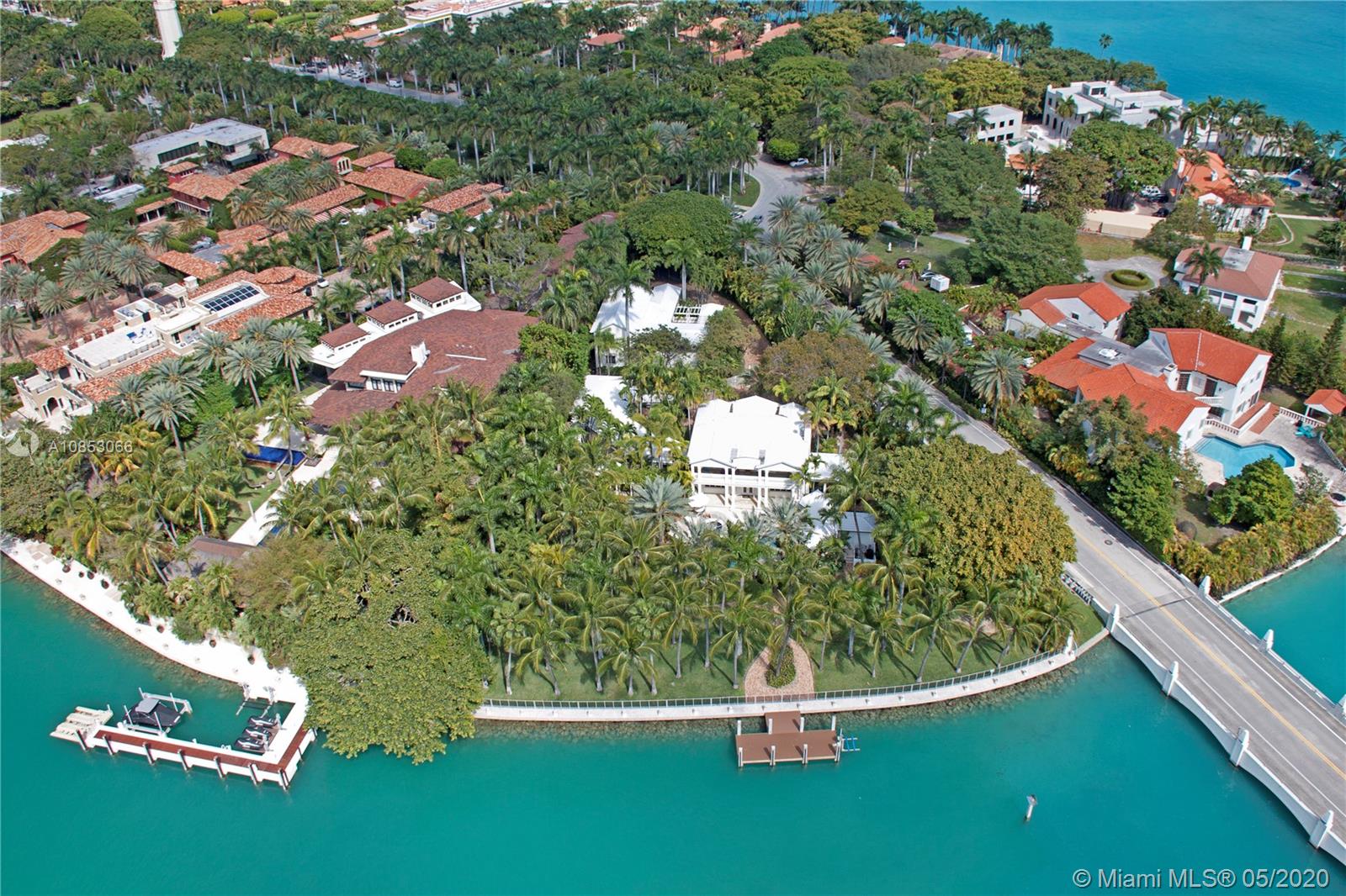 Located on exclusive guard-gated Star Island, this magnificent Bayfront estate rests upon an impressive 58,332 SQ FT corner lot w/240’ of sparkling waterfront & unobstructed views to Biscayne Bay & the Downtown Miami skyline. The estate boasts a beautiful 2-story, 3BR/6+1BA Floridian-style villa w/open verandas that face the bay, rich hardwood & marble floors, arched doorways, living room w/fireplace, private dining room, graceful piano room & a large kitchen all with water views. At the front of the home is a separate & private 3BR/2+1BA Guest House. The lushly landscaped grounds feature tropical foliage, palms, a resort-style pool/spa, private dock & amazing sunset views. This estate is truly one-of-a-kind. Location, lot size & amenities this residence is like no other on Star Island.
