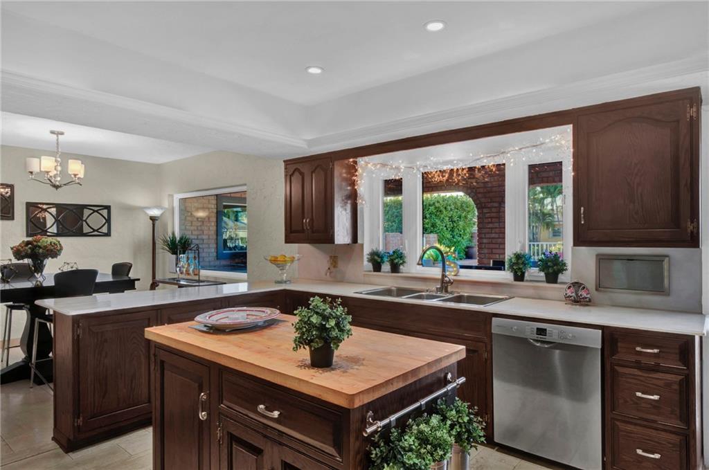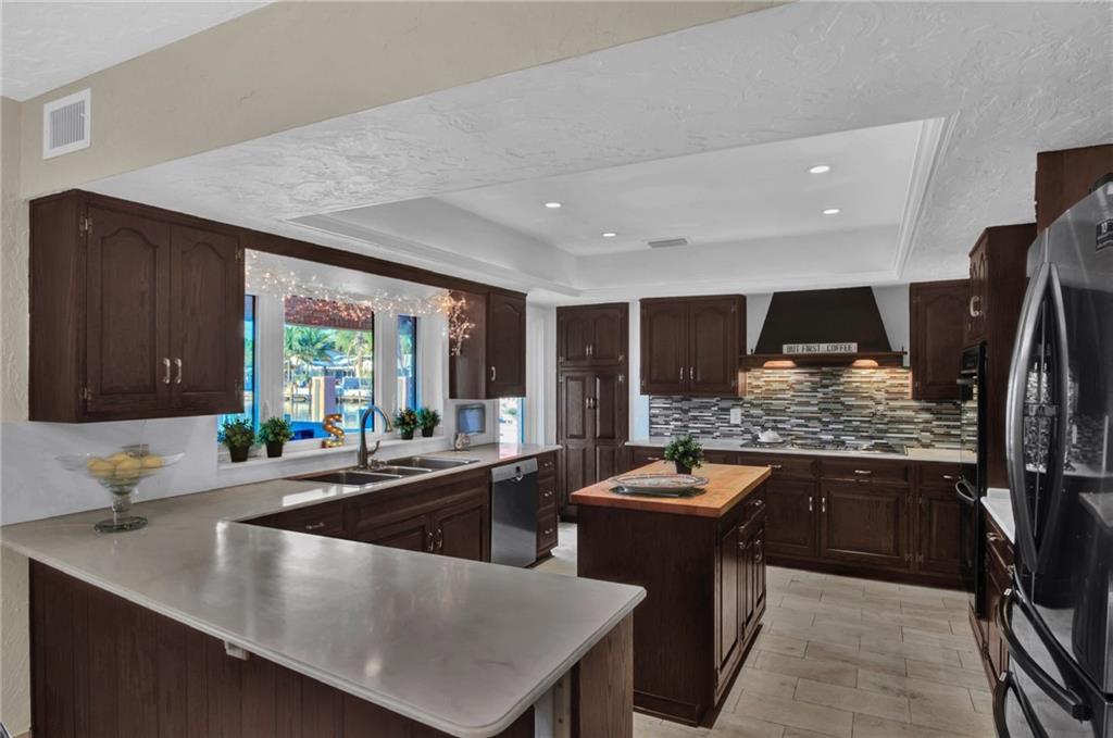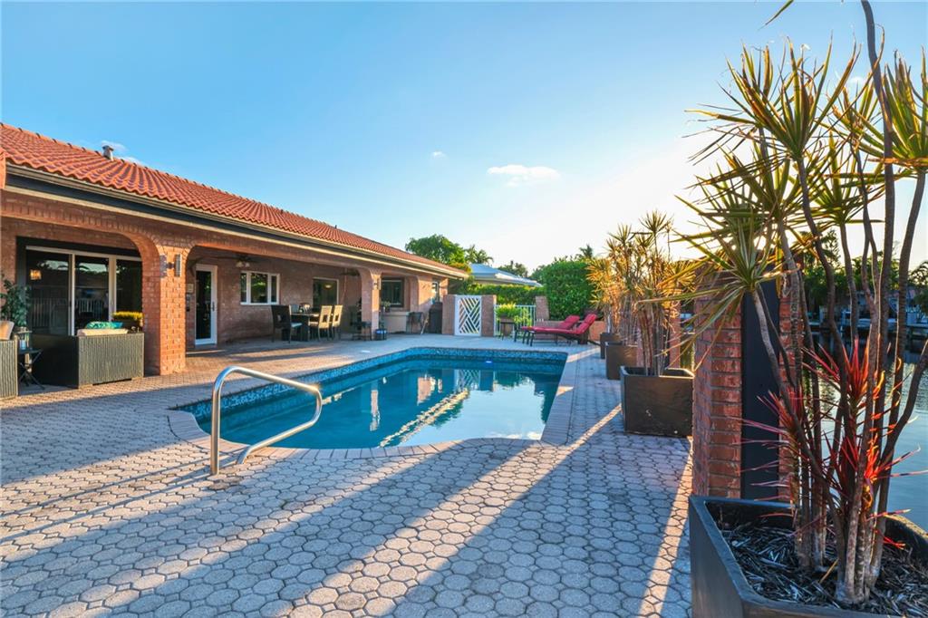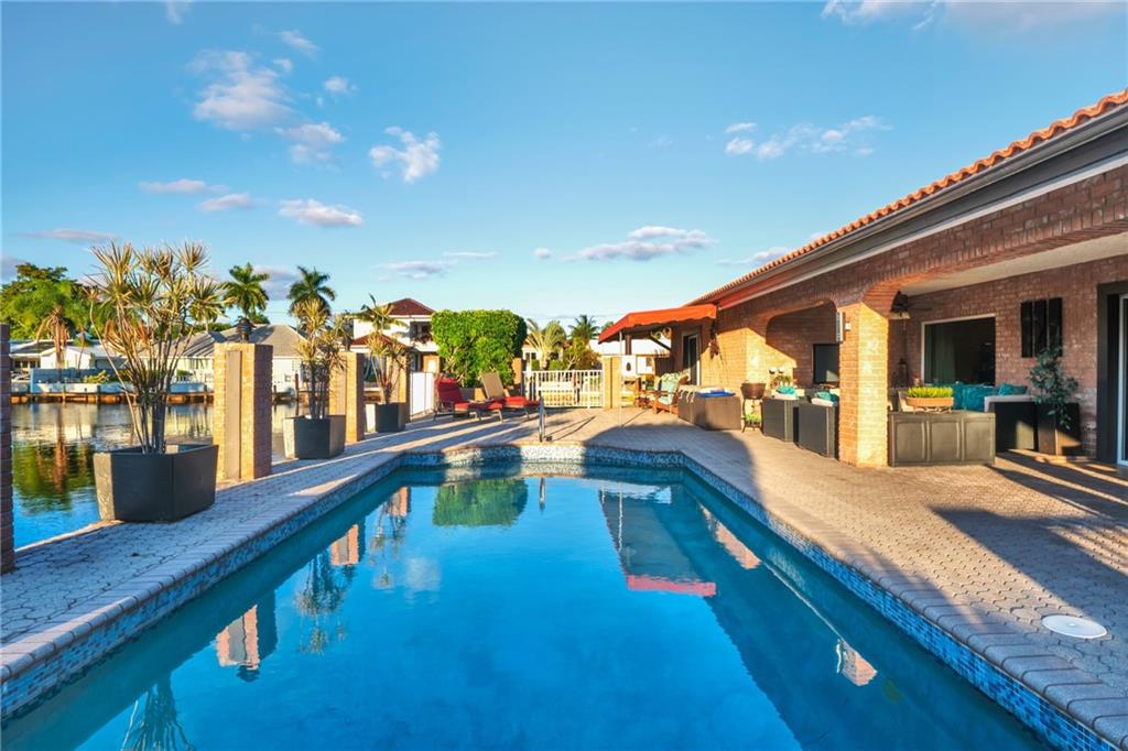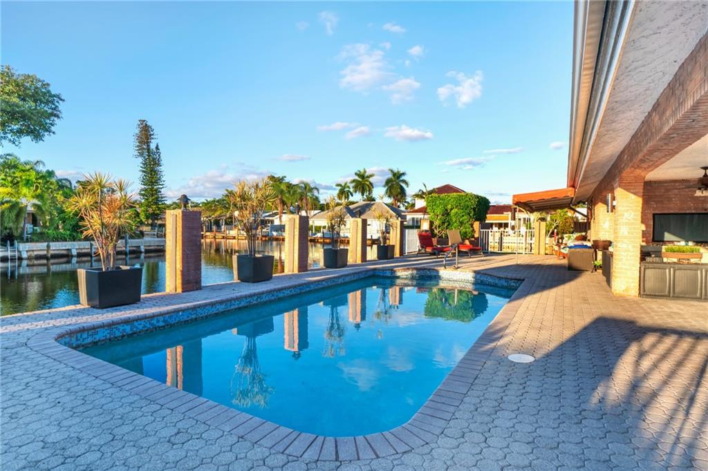 Welcome home to this exquisite, 212 ft waterfront 4 bedroom 3 bath estate in Landings,1 mile to the Lauderdale by the Sea beach. This one story home is an entertainer’s delight w/a privacy wall sitting on a corner lot surrounded by water on two sides. Private backyard features a beautiful pool w/special lighting effects, lush landscaping, tranquil water views, 30 ft dock.Large split bedroom plan with a separate maid’s quarters off the kitchen side next to the updated laundry room. Two master suites, one w/your private sauna. A formal dining area with fireplace and custom bar. A Chef's Kitchen w/second dining area, corian countertop, butcher block cooking island w/hand crafted wood cabinetry by RuttCustomKitchen.Fixed bridges will allow up to 25 ft boat to enjoy the waterfront lifestyle.