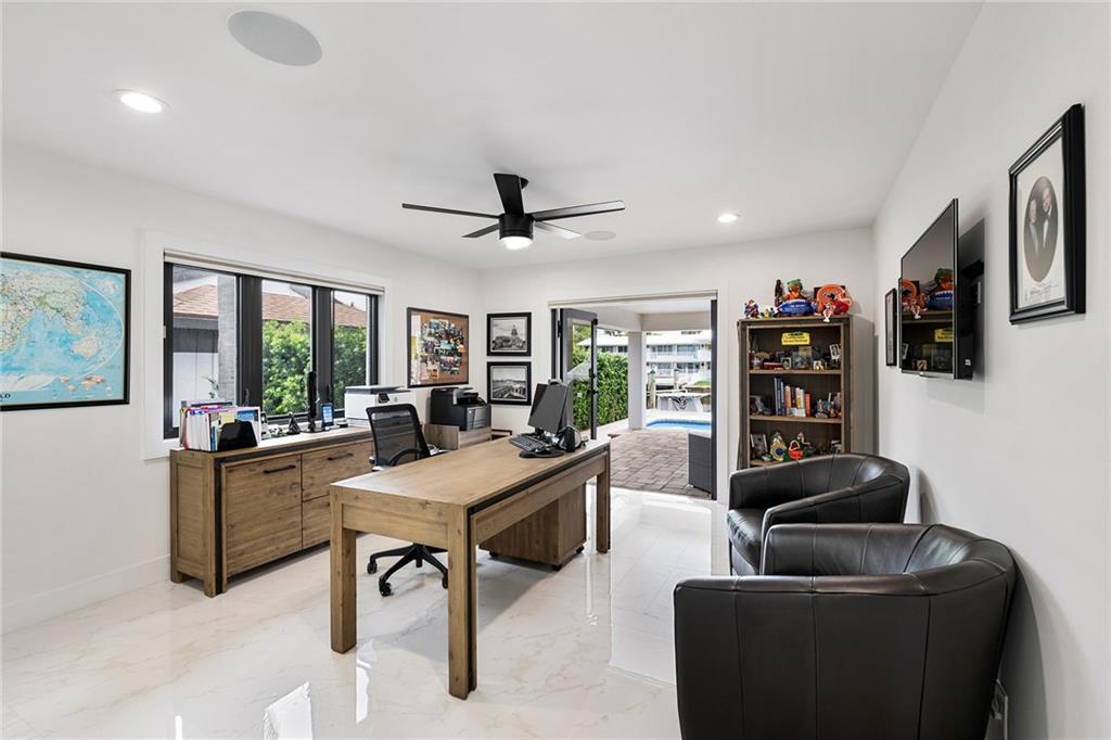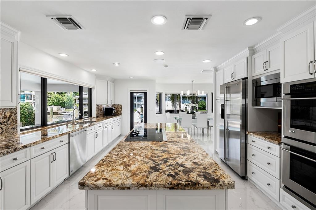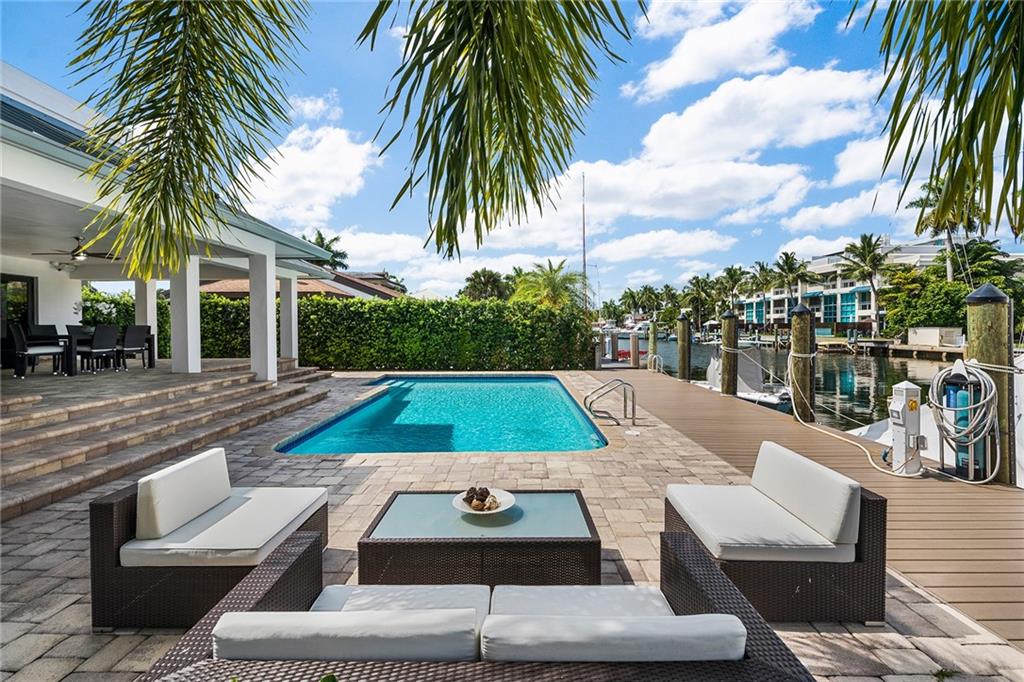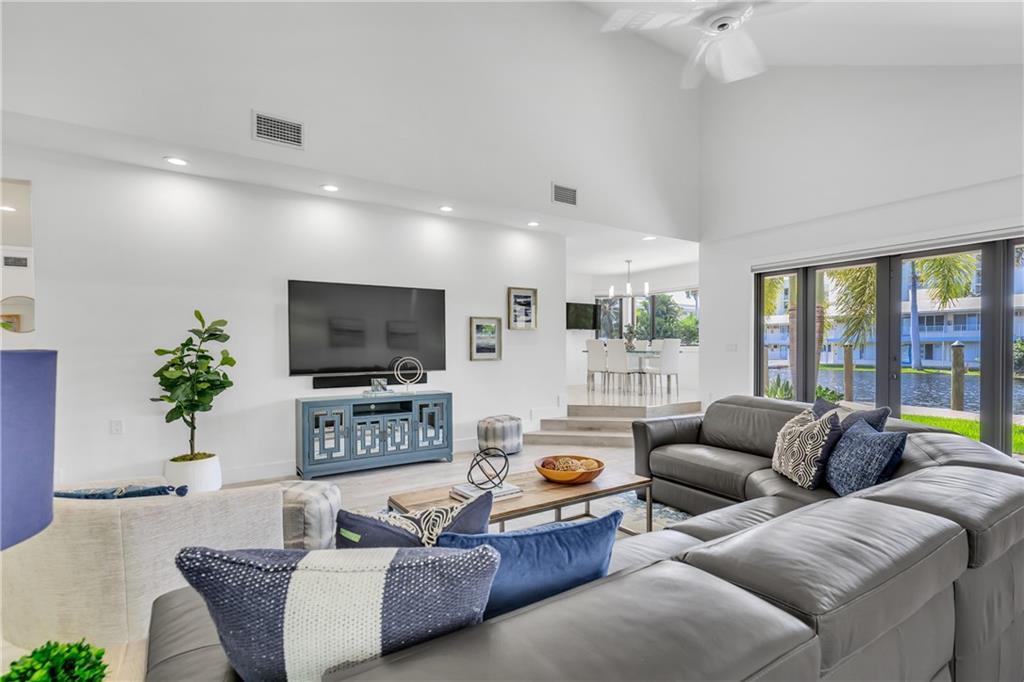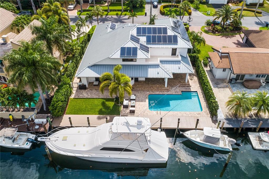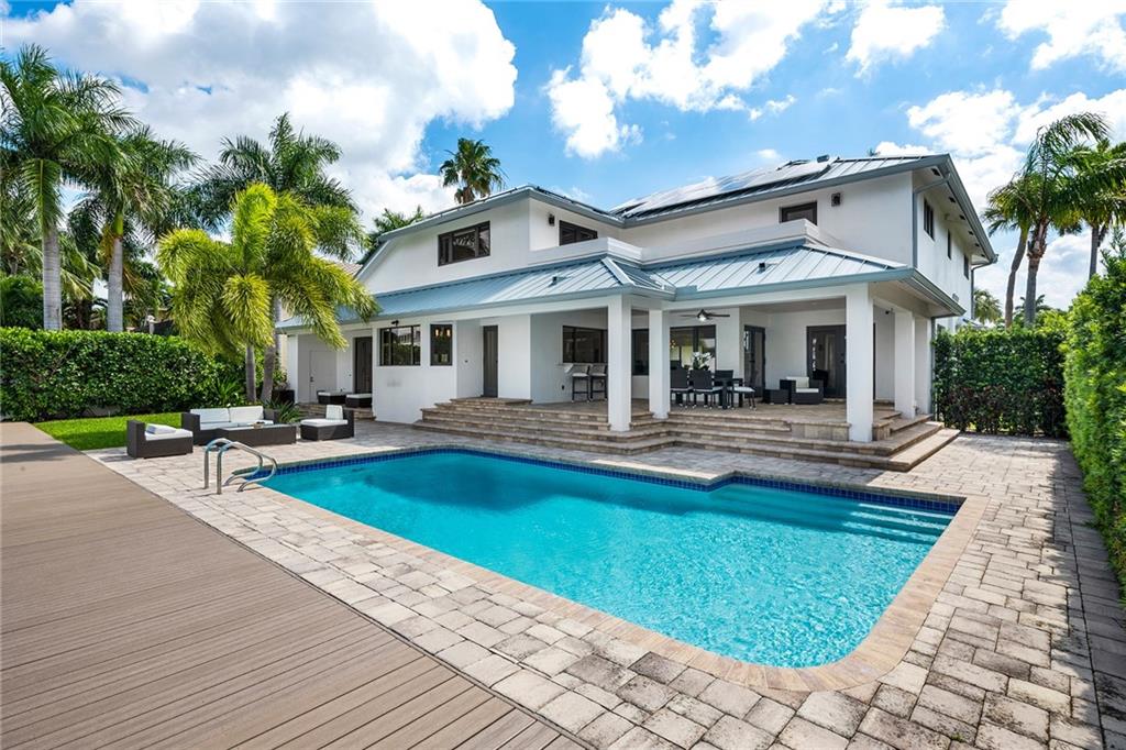 Newly renovated Coastal Contemporary Estate - this stunning 4 Bed/3.5 bath w/loft residence offers the finest elements of transitional architecture. Extensive renovations completed in 2019, over $500,000 in upgrades. 85' WF with new dock, raised seawall, & electric. Impact windows and doors, porcelain tile on first floor, new hardwood floors on stairs & second floor. New railing all along second floor w/views of living room below. Large covered patio area overlooking pool and water. All bathrooms renovated. Most amazing family room off dining room and kitchen area. New metal roof plus solar panels that reduce electric bill up to 40%. 2 storage areas which is perfect for boating & pool equipment etc. State of the art electronic system including surround sound. Don't miss opportunity to see!