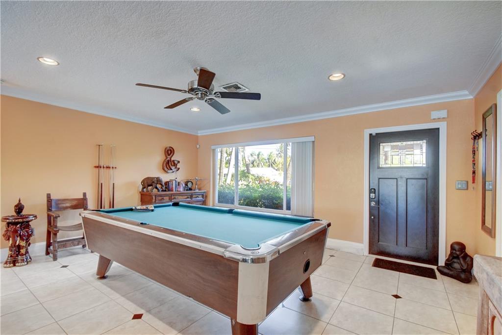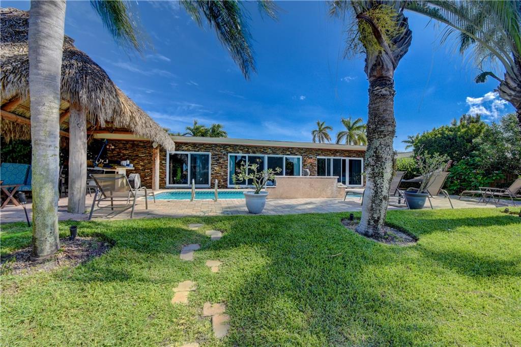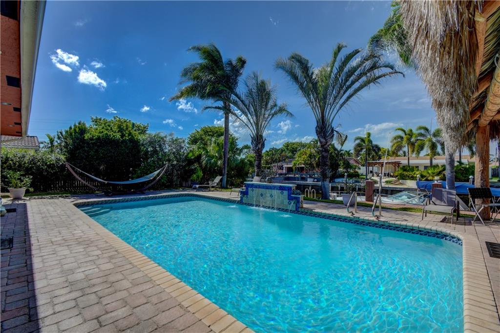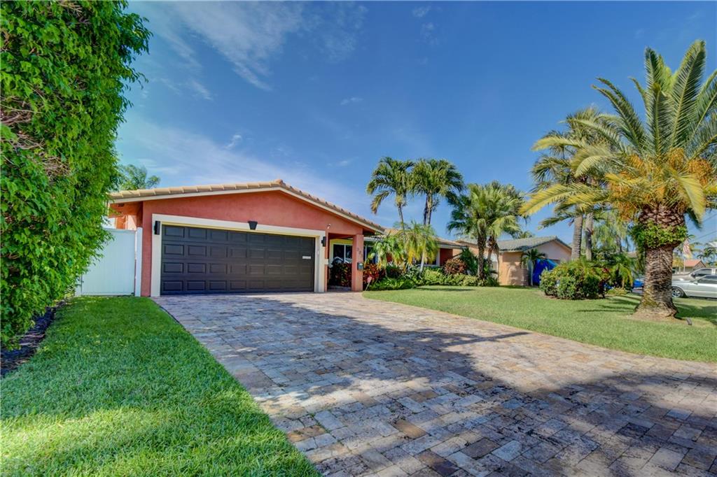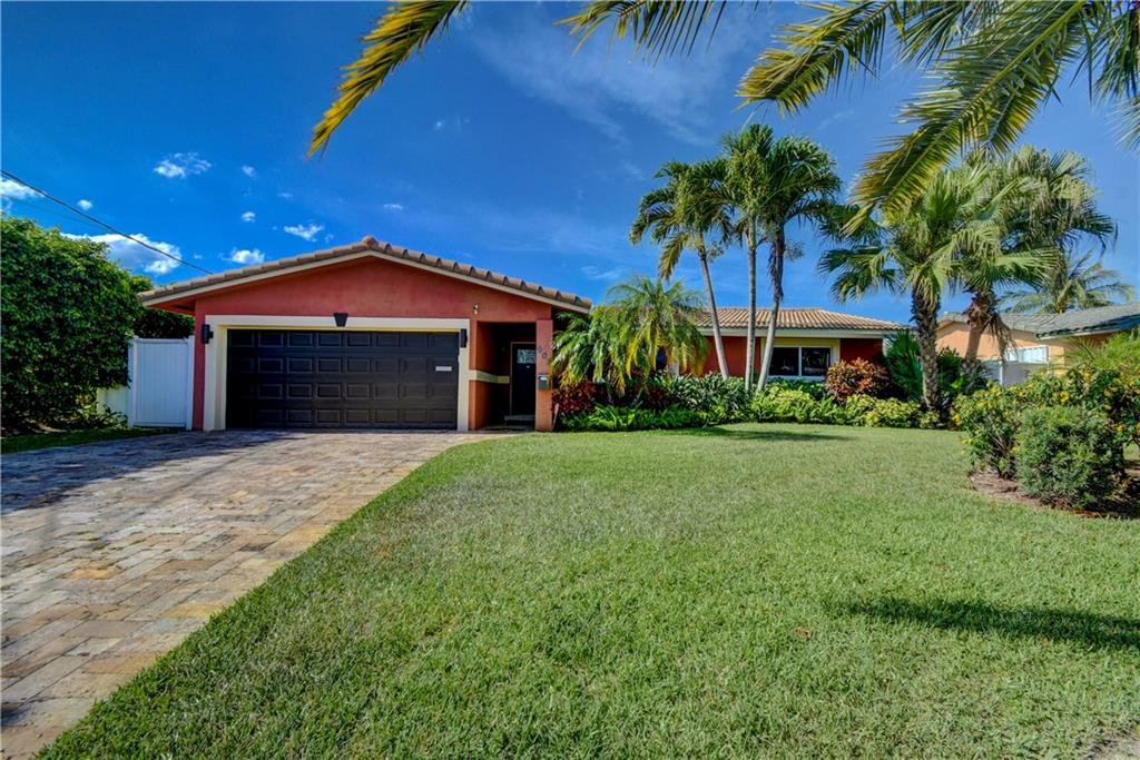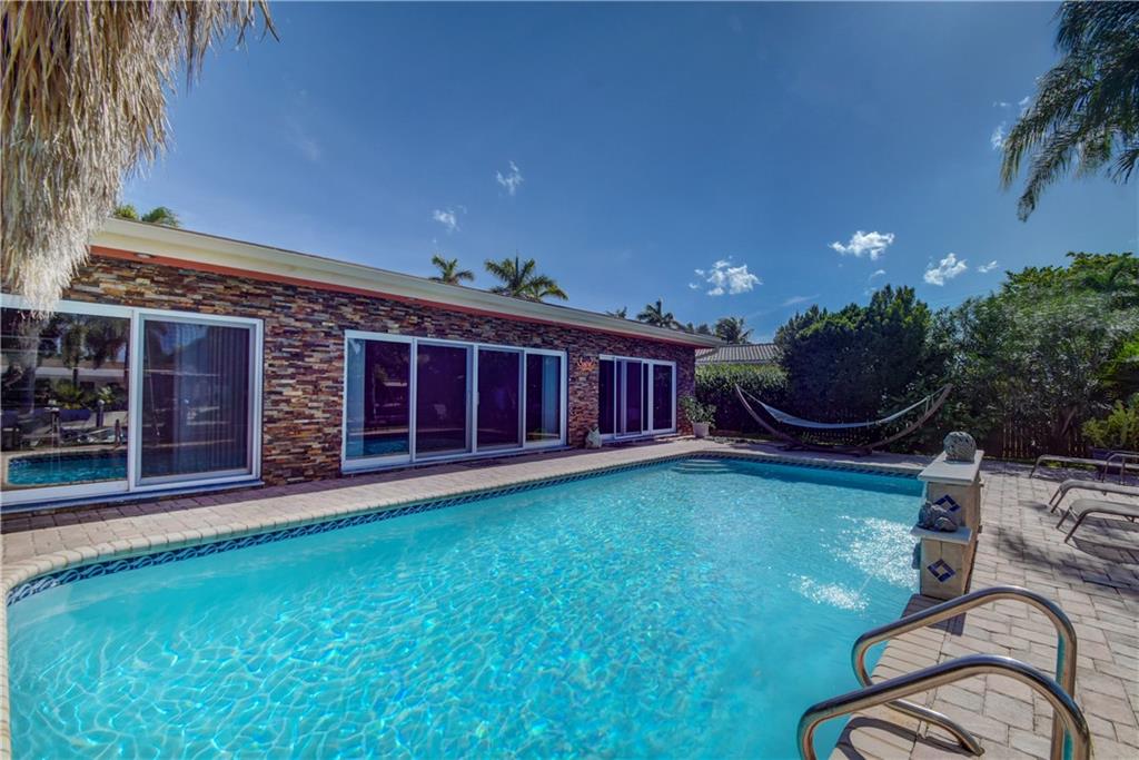 Completely updated ocean access home with only one fixed bridge (Federal Highway). Updated kitchen with granite and stainless steel appliances, split floor plan and impact glass throughout. 2016 barrel tile roof and 2014 seawall. Heated pool, and outdoor kitchen with tropical landscaping make this home perfect for entertaining. 3 sliders that open to the pool area, 2 car garage with hurricane impact garage door and a sprinkler system. Electric updated.