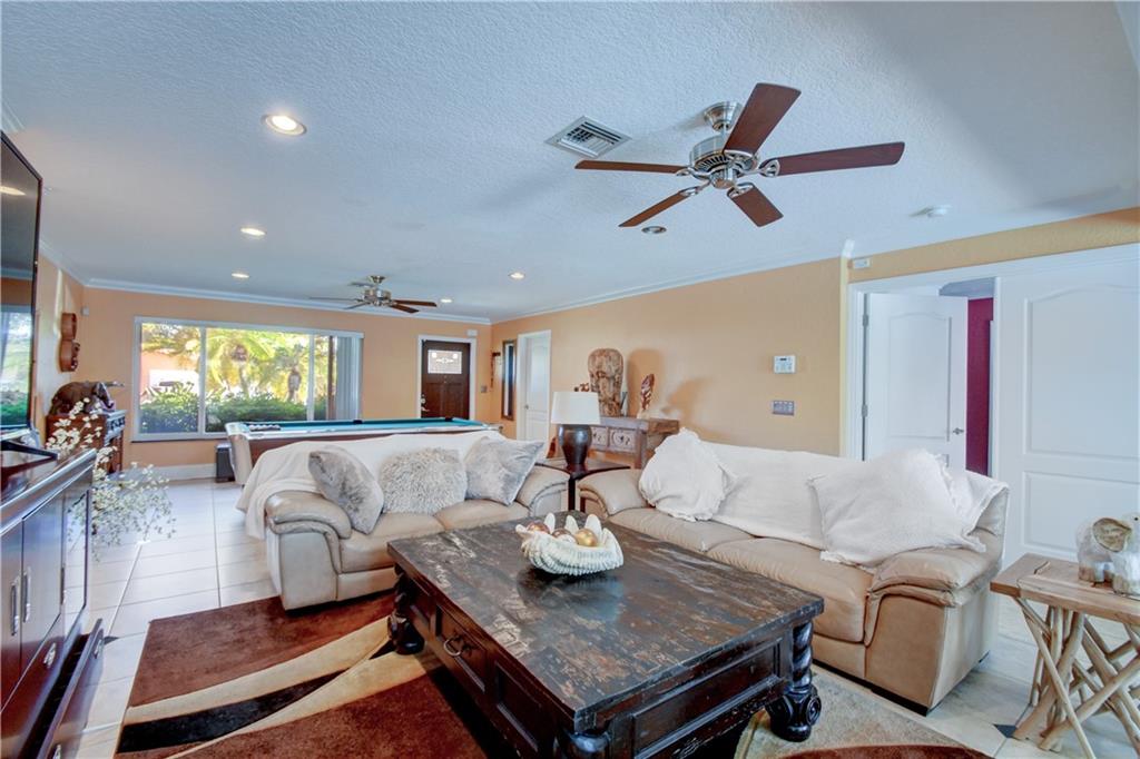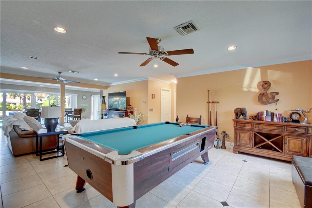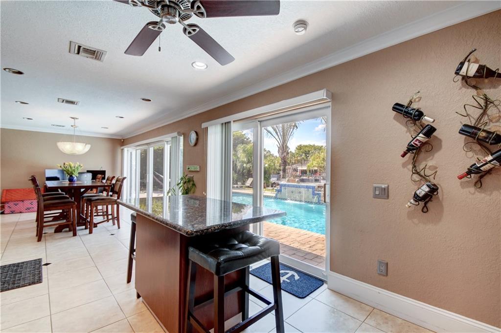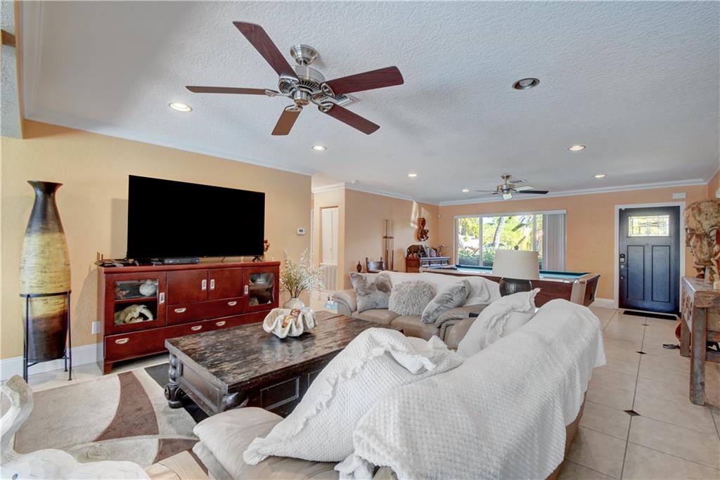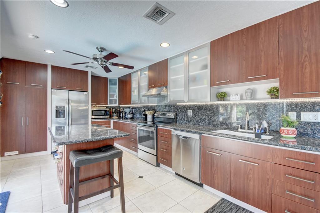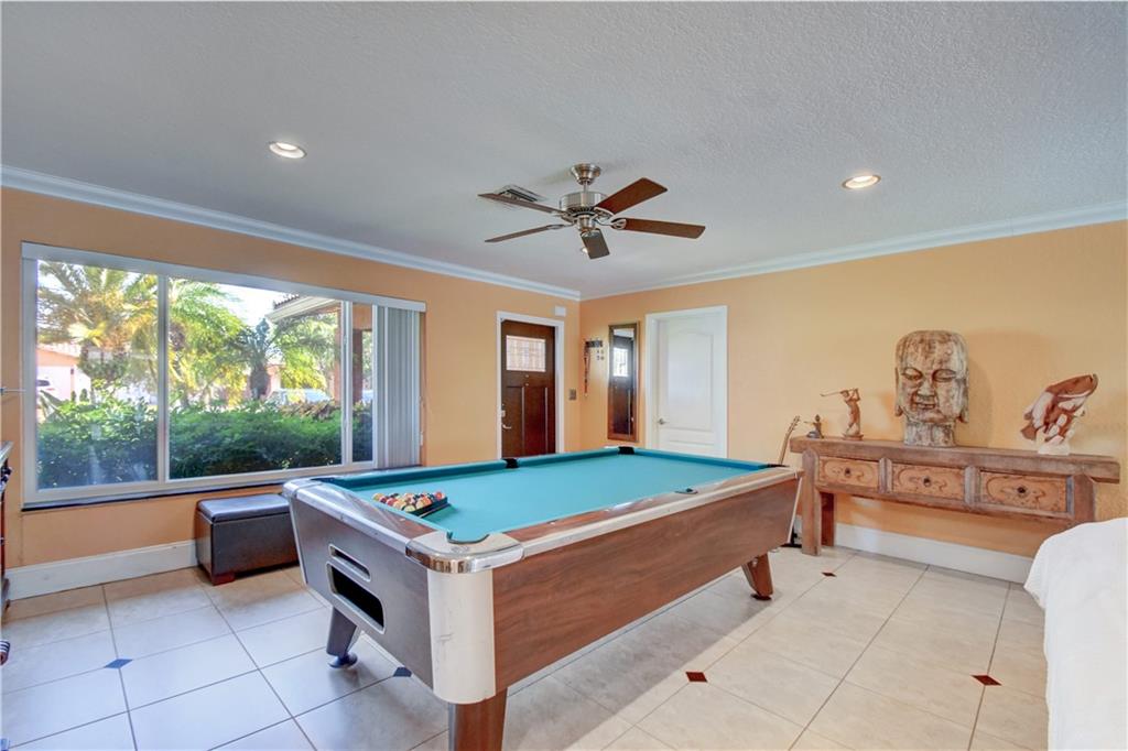 Completely updated ocean access home with only one fixed bridge (Federal Highway). Updated kitchen with granite and stainless steel appliances, split floor plan and impact glass throughout. 2016 barrel tile roof and 2014 seawall. Heated pool, and outdoor kitchen with tropical landscaping make this home perfect for entertaining. 3 sliders that open to the pool area, 2 car garage with hurricane impact garage door and a sprinkler system. Electric updated.