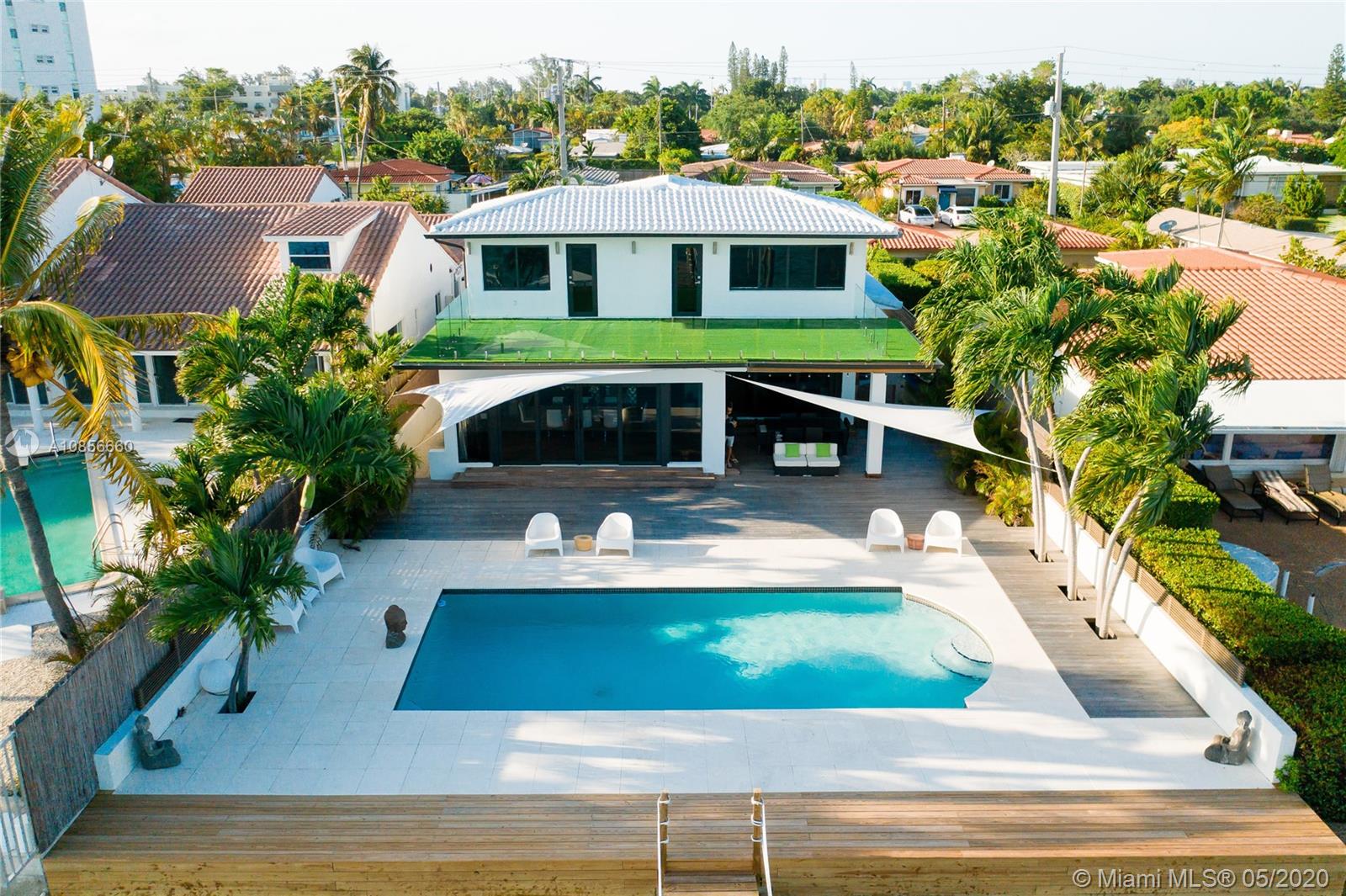 Beautifully renovated home with exceptional direct wide water views of Biscayne bay & Miami skyline, don't miss this opportunity! This two story waterfront home sits on a large lot with brand new dock and boat lift. The layout of main room is open & bright. The large sliding glass windows allows views of the pool & water. A lovely master suite & a second bedroom in the second level leads to a large terrace overlooking the bay. Some of the other features include: designer kitchen, one car covered garage, 2006 new seawall, large ipe wood deck, salt water pool, hurricane proof windows all around.