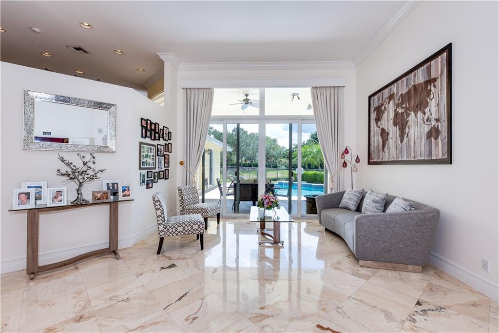 This home is special. Newer roof(2013)Impact Glass throughout(2018) AC(2017)….And those aren't even the best parts. The backyard is one of a kind where you get a great big backyard fully fenced on a prime waterfront lot with total privacy across the lake with no neighbors. Pool has new motor(2019)As you enter the home- you'll notice the immaculate condition floor to ceiling. Marble floors throughout entire home except for Master which has real wood floors(2016). High ceiling throughout. Tons of light. Kitchen has island which opens to the family room and has stunning views of lake,pool, & yard. Family room is spacious. Cabana Bath out to pool. Split bedroom plan with secondary bedrooms across house from Master. Gated community. A plus schools.
