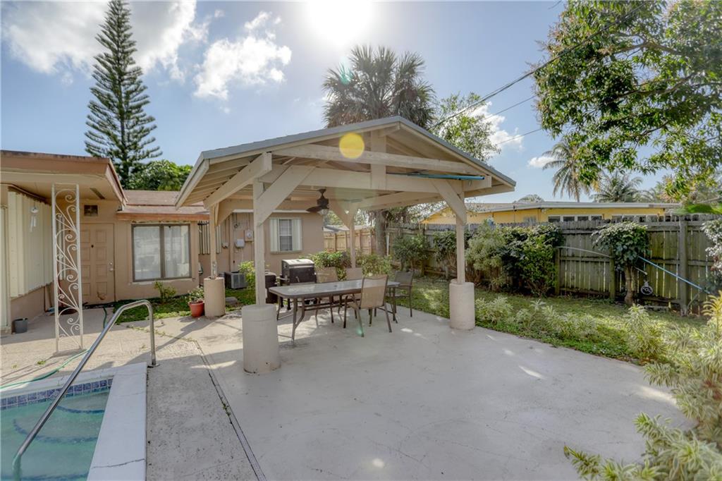 Located in desirable Lauderdale Manors, this three bedroom, three bathroom home features a private back yard complete with a stunning gazebo, spacious pool house, and great barbeque area. The interior boasts an open living and dining area, with spectacular and unique butlers giving enough separation for plenty of conversation while still providing privacy. Enjoy the extra living space in the Florida room, and no need to clutter with extra storage. Home has accordion shutters, and panels for extra protection. Walk out the sliding glass doors through the pool area to the cabana bath. Easy access to 95 and minutes to Wilton Manors restaurant. Make this home your own, don’t wait!