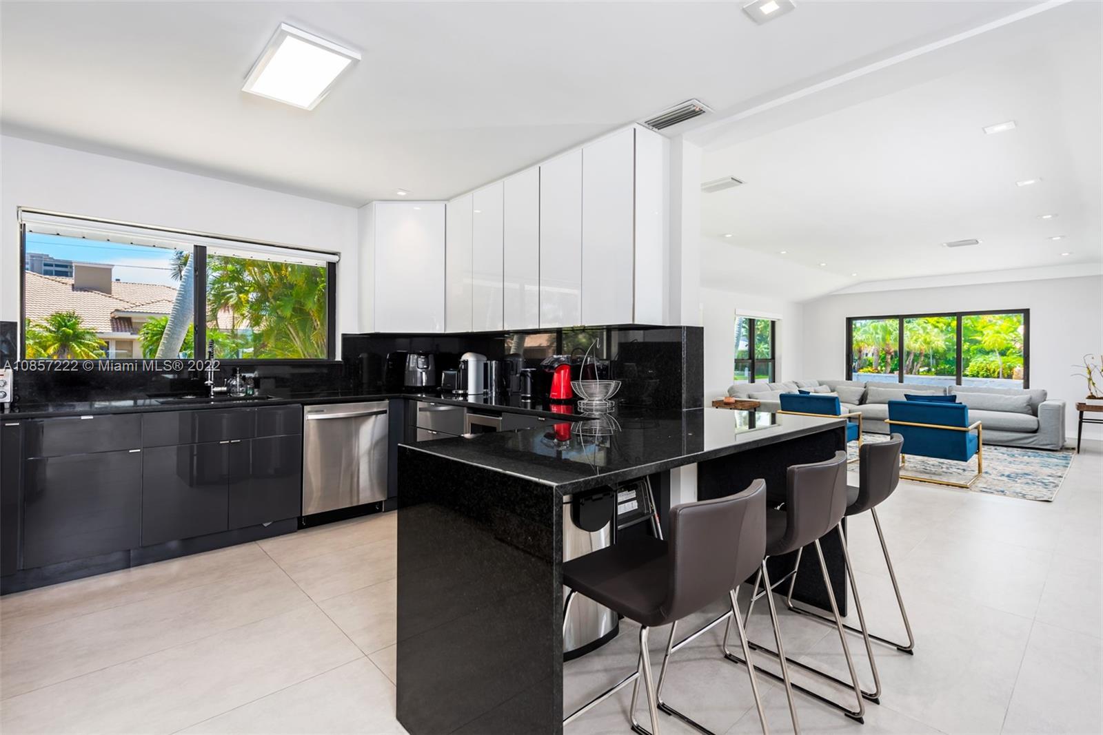 One-Story Corner Waterfront Home on 85' X 135' Lot. Open living spaces and lots of natural lighting throughout. Oversized Master Bedroom. Dockage for your vessel, ocean access, no fixed bridges and deep water. Backyard is ideal to take in the South Florida waterfront lifestyle with covered terrace, pool and plenty of green yard area. Central Location in sought after gated waterfront Golden Isles community.