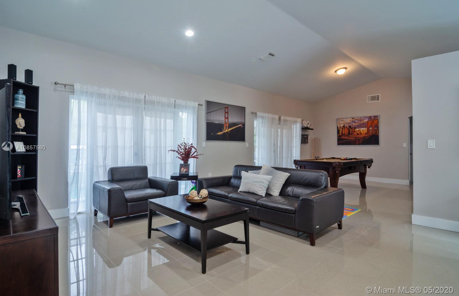Enjoy outdoor living & sparkling pool views - your own private tropical oasis! This gorgeous & fully upgraded 3 bed, 2 bath, fenced pool home features a spacious open concept layout w/new tile flooring throughout, high vaulted ceilings, new custom remodeled kitchen (2019) & new stainless steel appliances (2019). New 2019 Roof! Master suite includes huge walk-in closet! Enjoy the outdoors with an extended patio perfect for BBQ, large yard and sparkling pool w/new pool pump (2020) - this home is ready for entertaining! New 2019 Washer & Dryer! Enjoy this beautiful freshly painted light & bright home in the heart of Miramar! Great location close to excellent schools, shopping, dining, parks, highways & transportation!