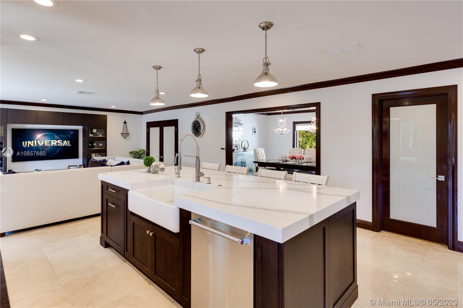 Beautifully remodeled 5 bed 4 bath single level home in guard gated community of Gables by The Sea on Canal with magnificent water view with Sea-wall, no ocean access. Home features open concept kitchen with Large Island, commercial grade app & premium countertops. Spectacular indoor wet-bar with ice maker & wine cooler. Outdoor kitchen with fridge & two custom built-in grills; wired outdoor Bose speakers, large pool & stone patio area with room for outdoor dining, seating, & lounging, Impact doors & windows, NEW ROOF and more>>>Call Now!!