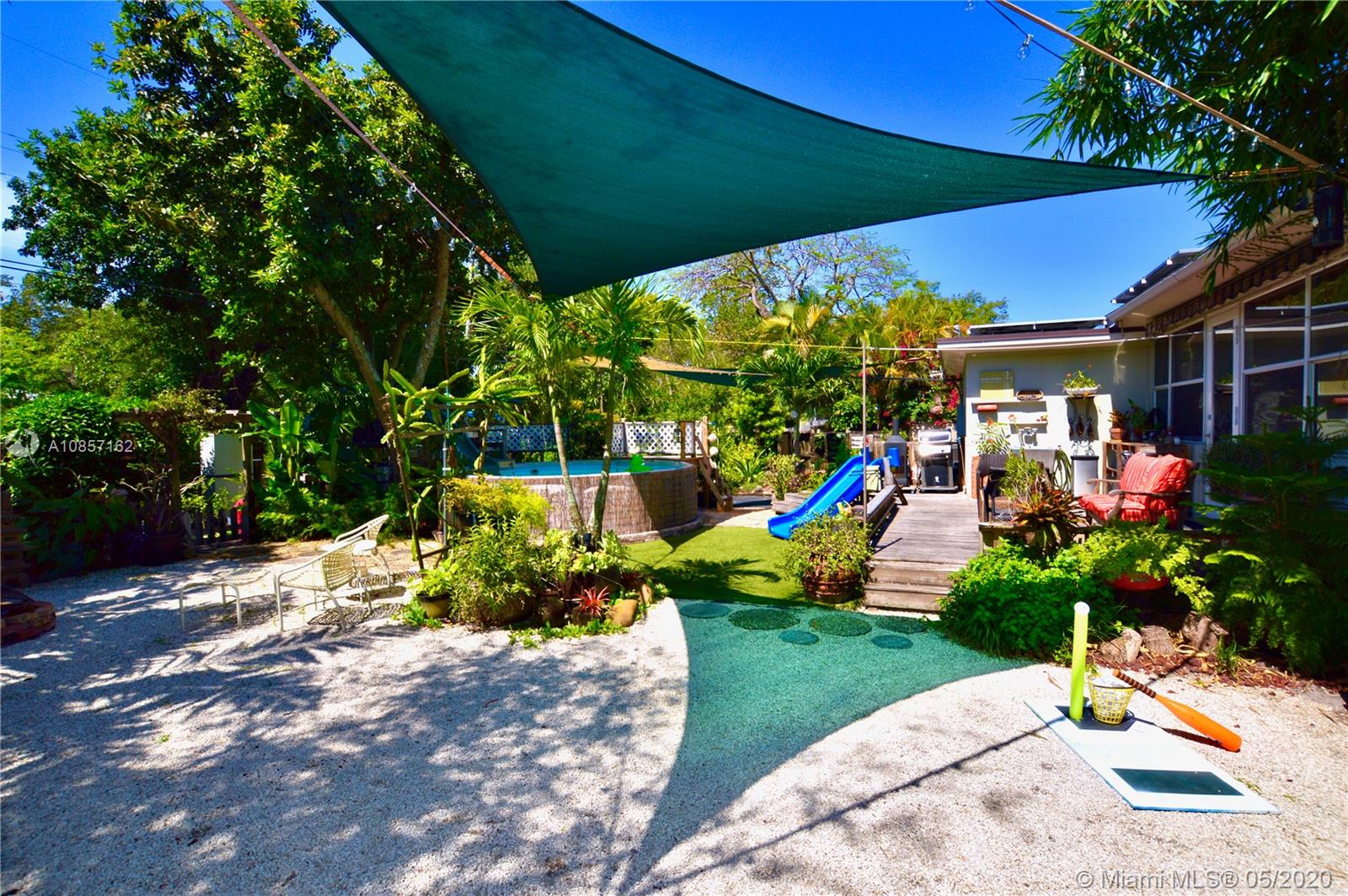 Charming, energy efficient home featuring solar panels & gas appliances. Actual living space is 1394sqft. Roof is in great condition, new electric, plumbing, AC unit & ducts. All impact windows & doors. Hardwood floors throughout. Lush landscaping including avocado, papaya, mango, tamarind & banana trees. Corner lot w/ample parking. Driveways located on the front, side & backyard.