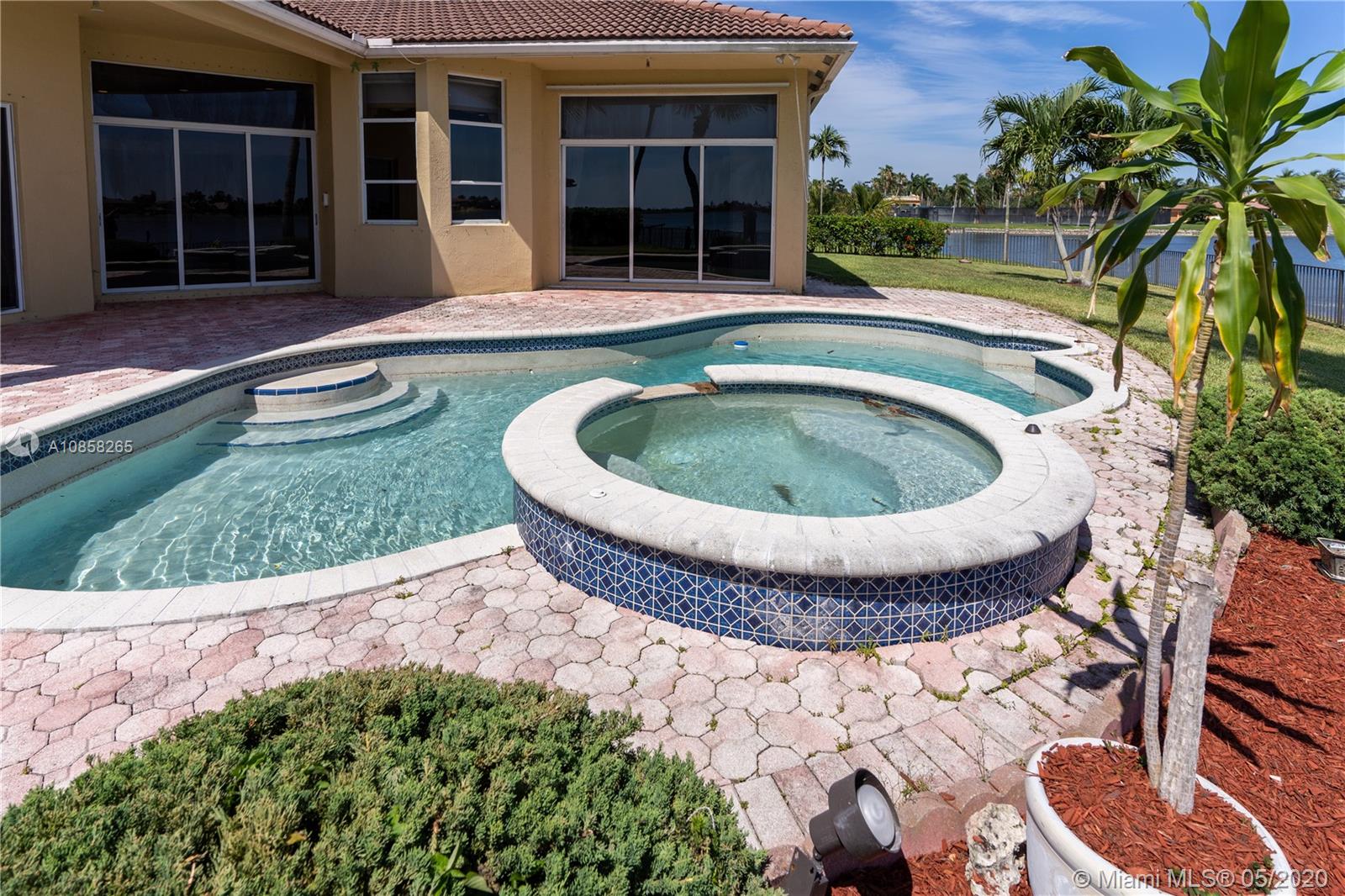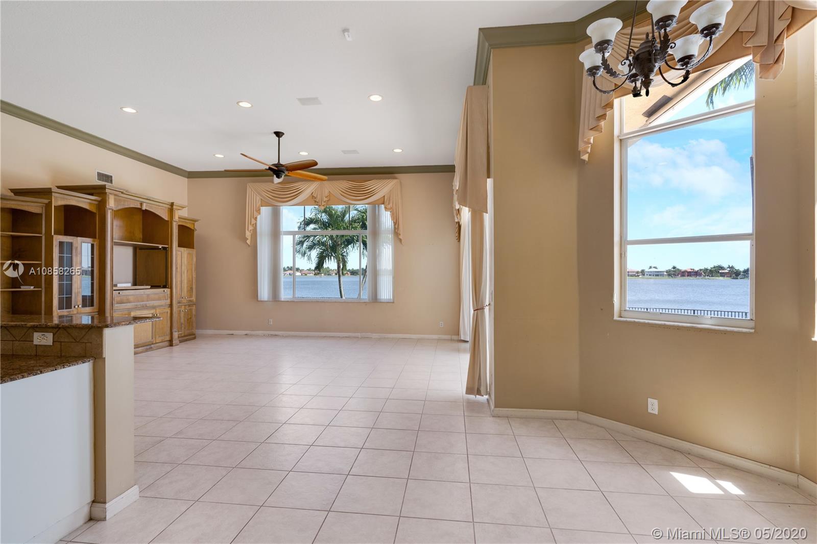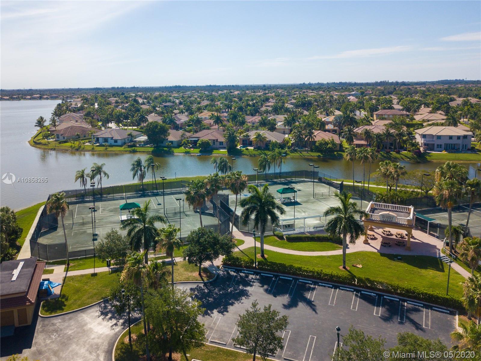 5 Bedroom 3 bath estate pool home with expansive lakeview in Sunset Lakes. Open floorplan with split Master. Volume ceilings throughout living areas. Gated community features resort like amenities including gym, pool, tennis and basketball courts and party room. Matterport virtual video available.