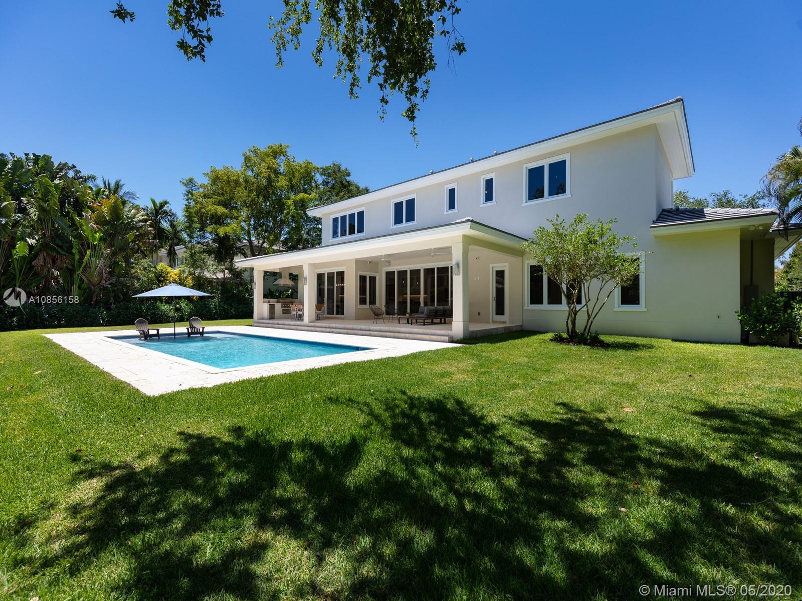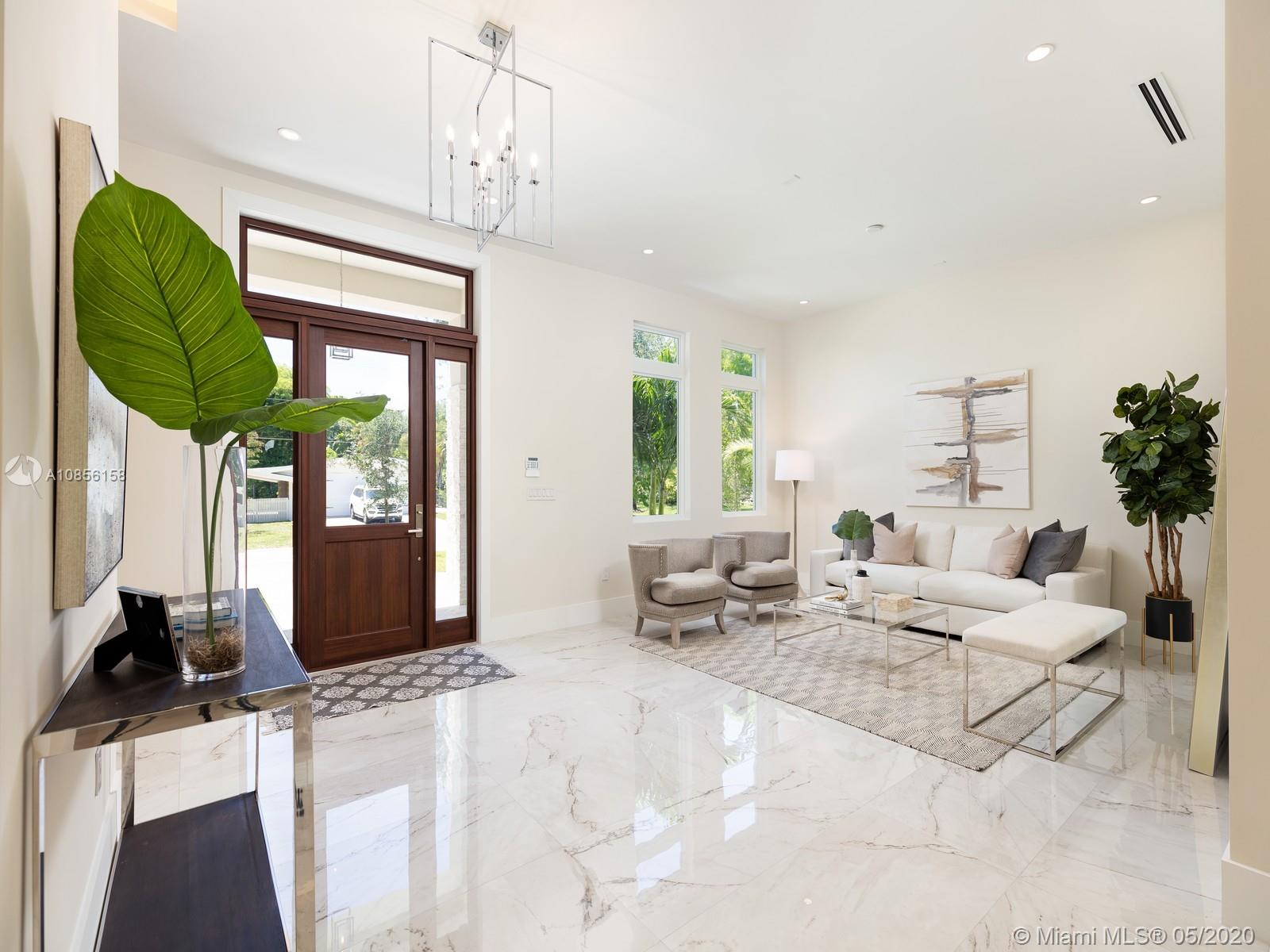 Impeccable Brand-New 7,222 sf Construction on 18,388 sf lot offering flawless modern architecture in N Pinecrest. This stunning estate spans 5 bds & 6 bth w/great attention to detail. Greeted by volume ceilings, great open flr plan, gourmet chef’s kit & pantry, built-in Viking appl w/gas range & wine cooler. First flr offers natural light radiating from every angle, 2 bedrms all en-suite & stylish cabana bath. Elegant wd & glass stairwell leads to an expansive 2nd flr w/ lavish master ste, walk-in closets, spa-like bath & 2 bedrms w/ den/family rm. Indulge in the ultimate retreat w/resort-style pool, expansive grounds & covered coralstone terr w/summer kit. Extra feat incl: elevator & generator ready, imp win/drs, built-out closets, smart & surround sound, 2 car gar. 1 Year Builder’s Warr.