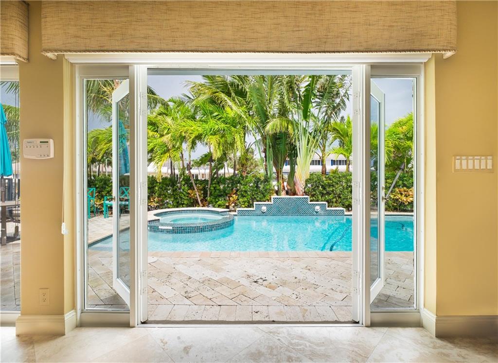 Tropical Paradise awaits you! Enjoy this indoor/outdoor entertaining beautifully updated home with 100 feet of Waterfront, a 2 car garage, impact windows and doors, shutters, marble/wood floors, wet bar, heated pool/Jacuzzi, covered outdoor kitchen with int/ext surround sound speakers, whole house generator, plus lush landscaping throughout the exterior. Call today for a private showing.