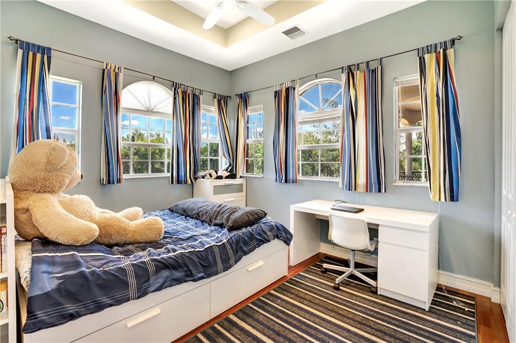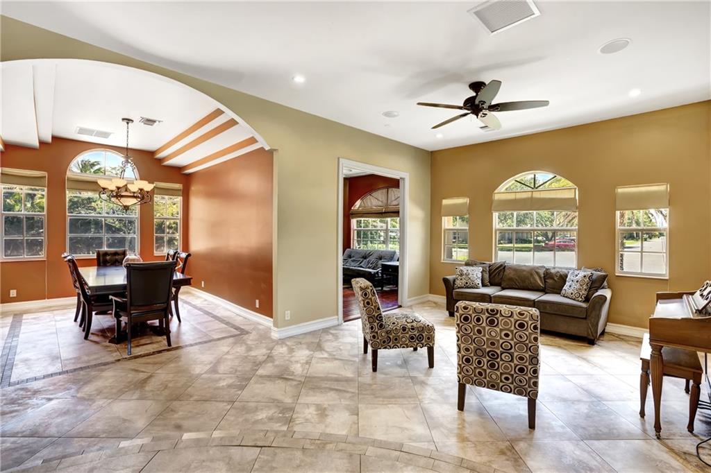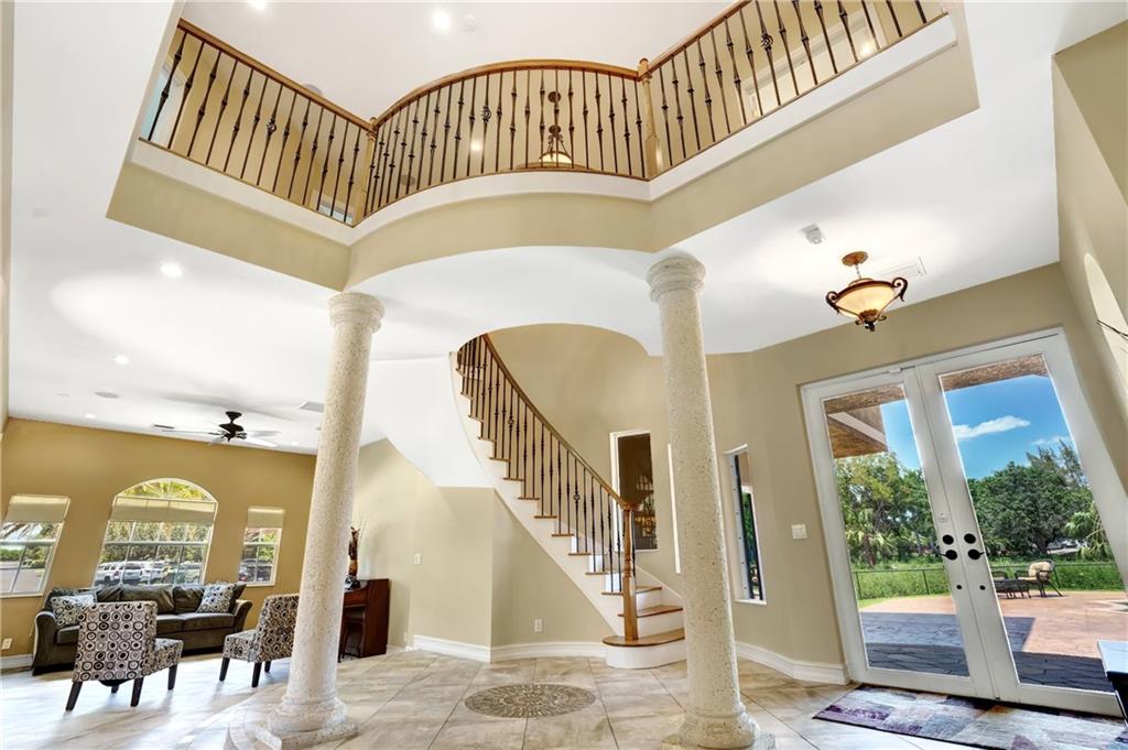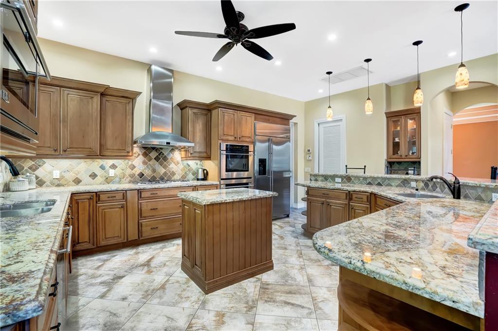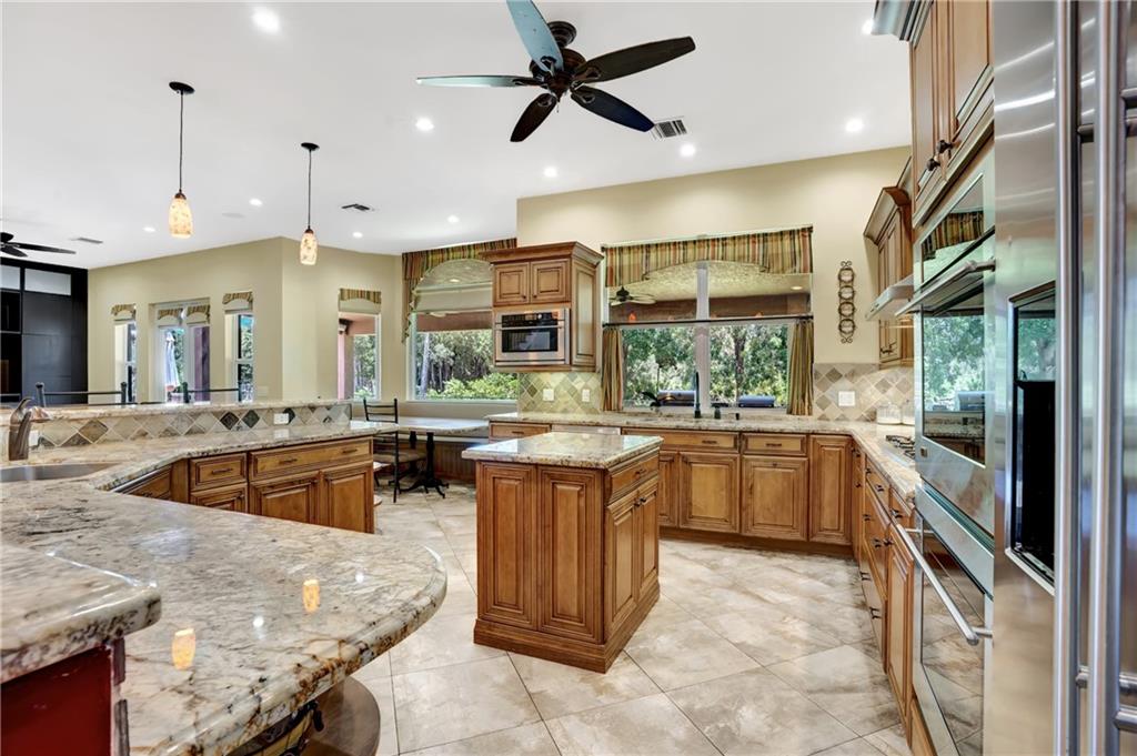 Price adjusted for a quick sale! Prepare to be inspired as you enter this masterfully designed custom home with many upgrades. Entering the foyer you are led into a spacious and open living area perfect for entertaining. Large kitchen with a wraparound bar, breakfast nook, wall ovens, gas stove and more. Downstairs offers plenty of natural light from the many impact windows and doors. Formal dining room, family room, living room and office/den. Ascending the stair case you are led to an open loft area, 5 bedrooms and 3 baths. The master features two balconies, his & hers walk in closets and a master bathroom to rival any spa. Once outside you are greeted by a new sparkling pool, an outdoor kitchen & 7 per. hot tub. Detached guest suite overlooks the pool & courtyard area.