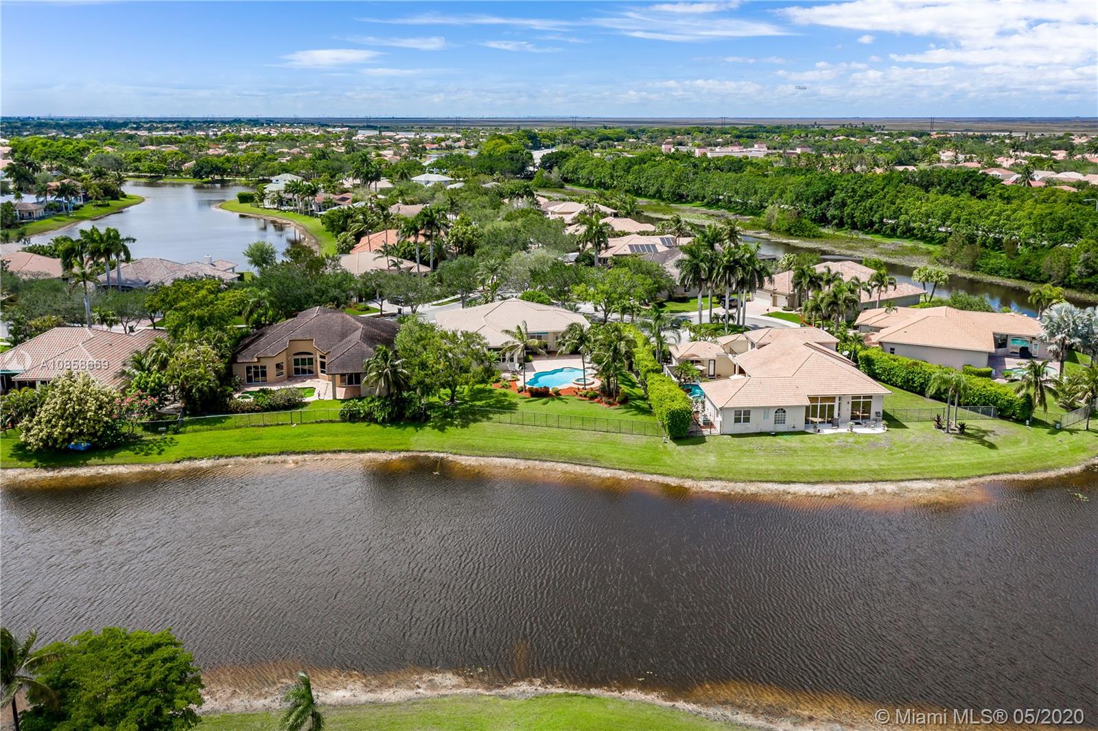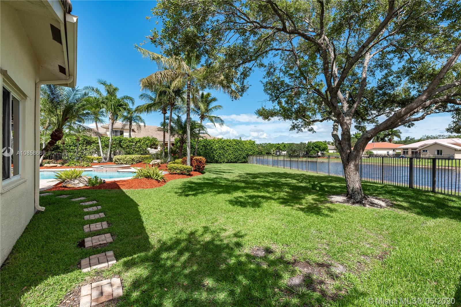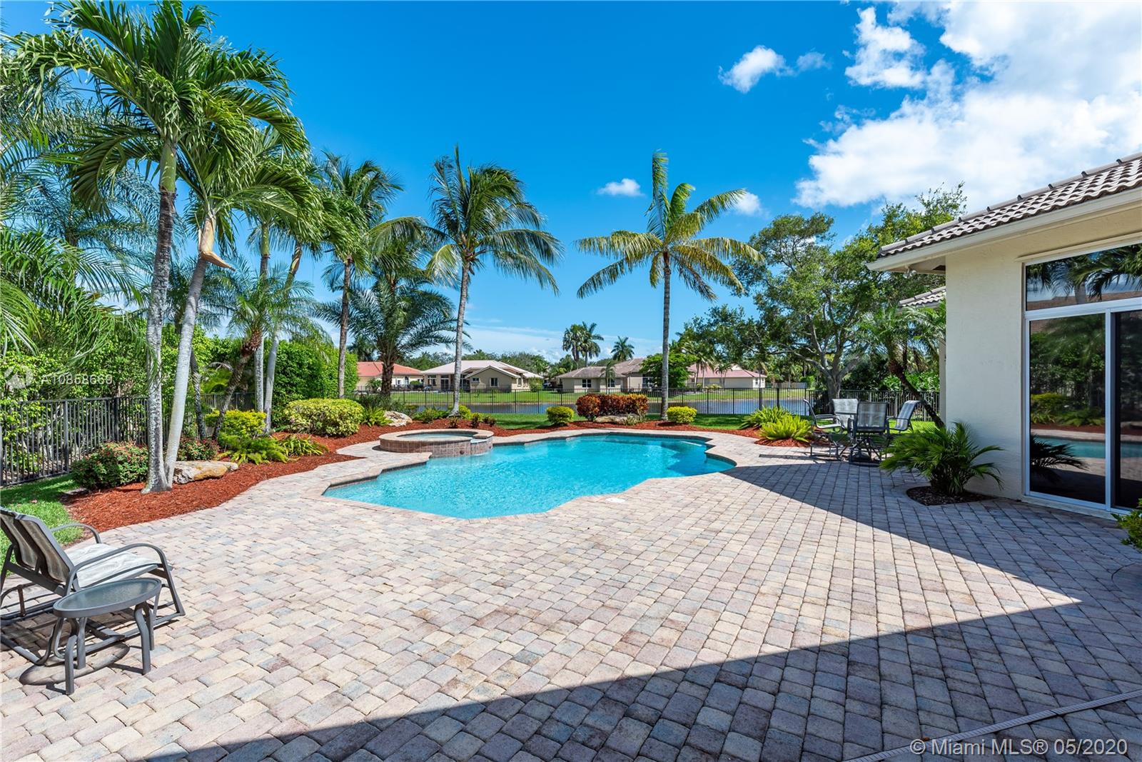 Perfectly Pristine! Owners have maintained this home impeccably. Grandview Two model with 4 beds, den AND the optional playroom(can be 5th bdr) This is a large home with an open concept, high ceilings & lots of natural lighting. The many upgrades include updated kitchen with granite & backsplash & remodeled master bath with all the bells & whistles. The yard is a true Florida Oasis with one of the largest lots in the community! (over 19,000 sf) Big covered patio leads to oversized heated pool & BIG spa with grand paved deck. Enjoy the cool breezes & privacy of a wide lake view. Other exterior features include, steel 18 gauge shutters, rated reinforced garage door & circular drive.The Landings /Mallard is one of Weston's premier communities with guard gate, play area and the BEST schools!