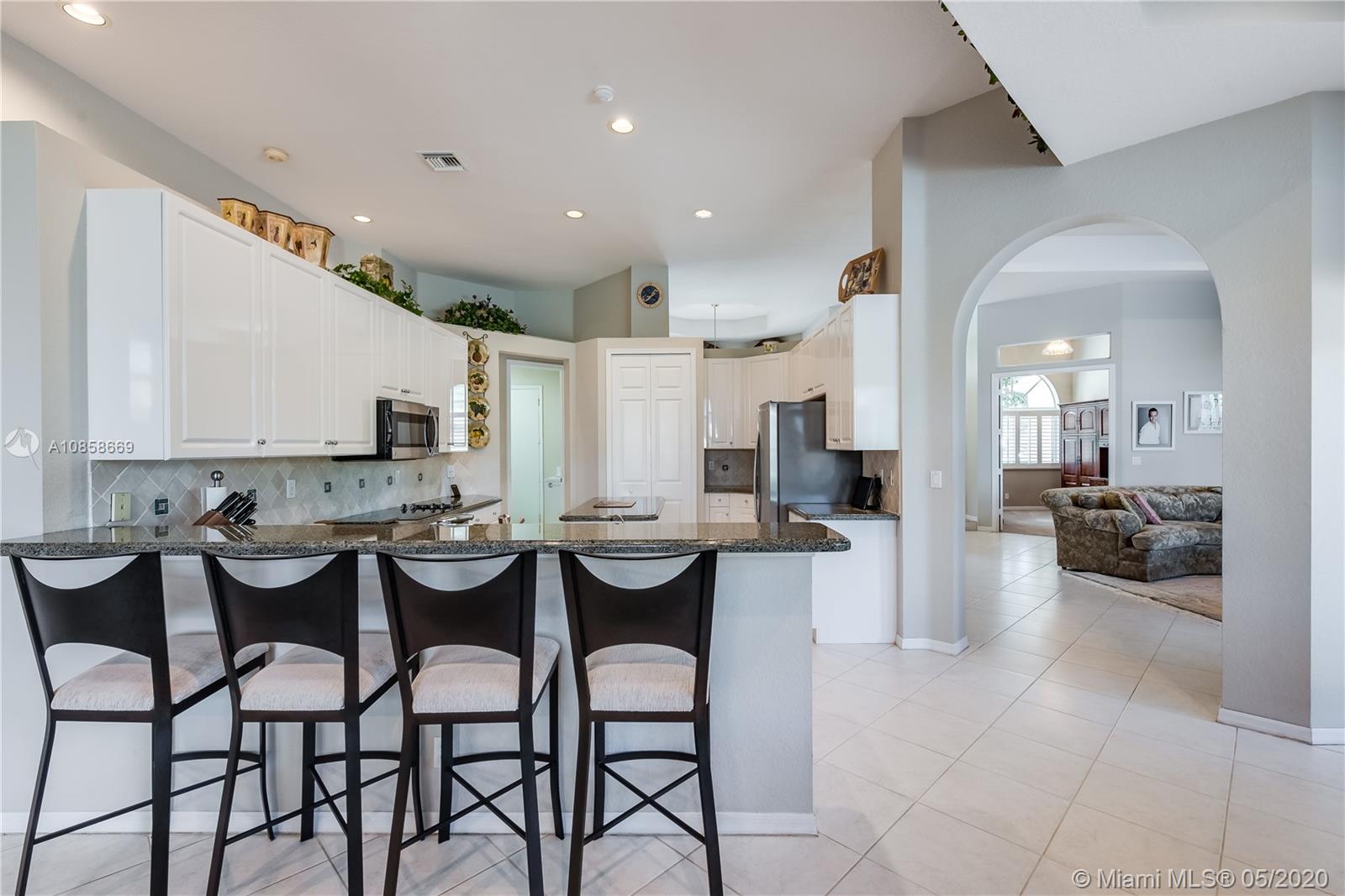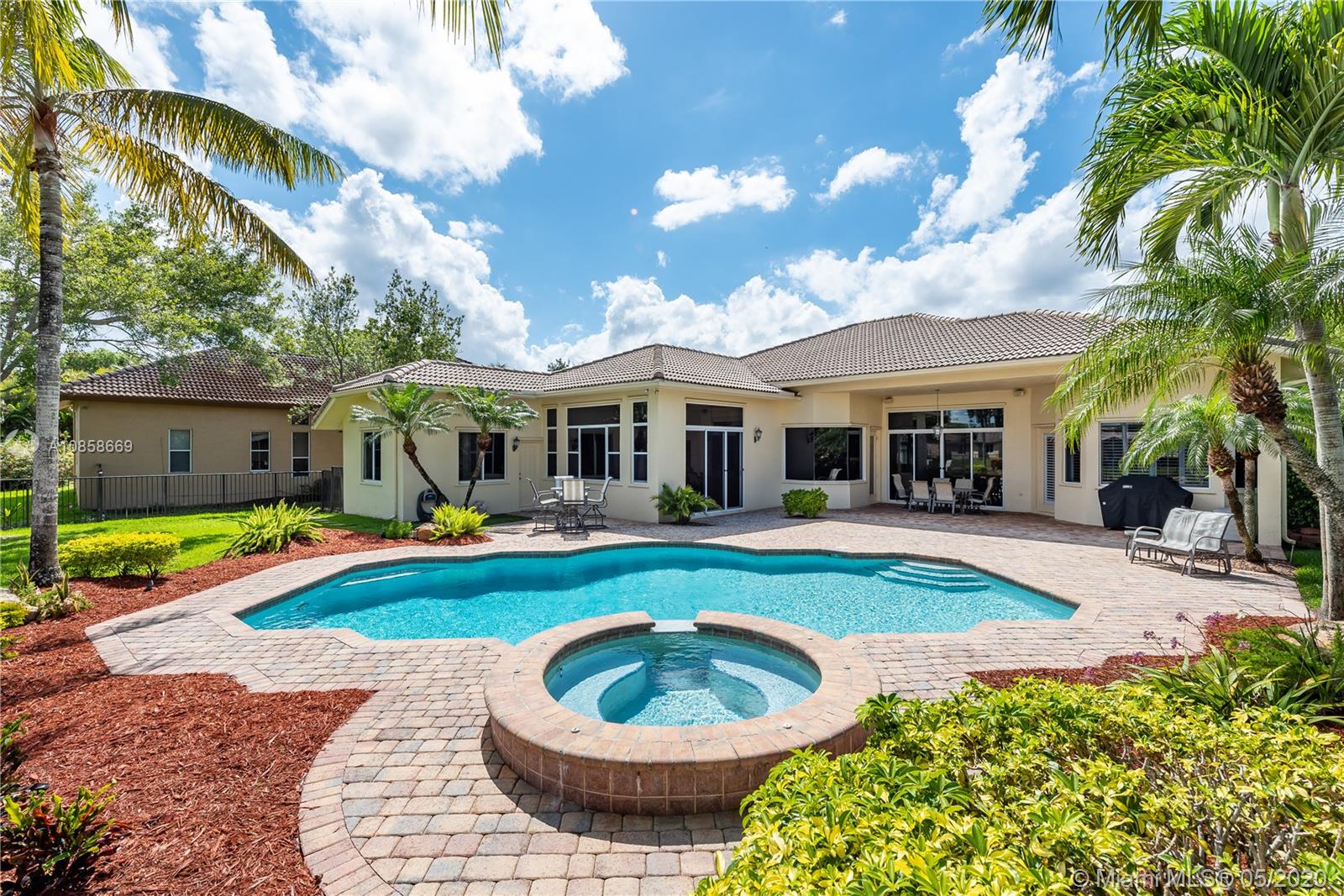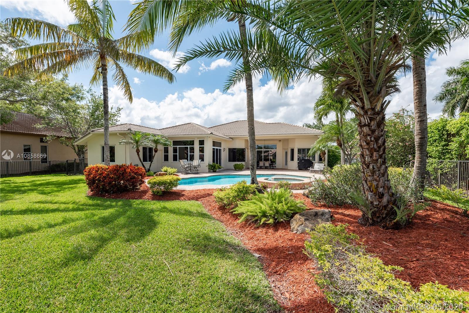Perfectly Pristine! Owners have maintained this home impeccably. Grandview Two model with 4 beds, den AND the optional playroom(can be 5th bdr) This is a large home with an open concept, high ceilings & lots of natural lighting. The many upgrades include updated kitchen with granite & backsplash & remodeled master bath with all the bells & whistles. The yard is a true Florida Oasis with one of the largest lots in the community! (over 19,000 sf) Big covered patio leads to oversized heated pool & BIG spa with grand paved deck. Enjoy the cool breezes & privacy of a wide lake view. Other exterior features include, steel 18 gauge shutters, rated reinforced garage door & circular drive.The Landings /Mallard is one of Weston's premier communities with guard gate, play area and the BEST schools!