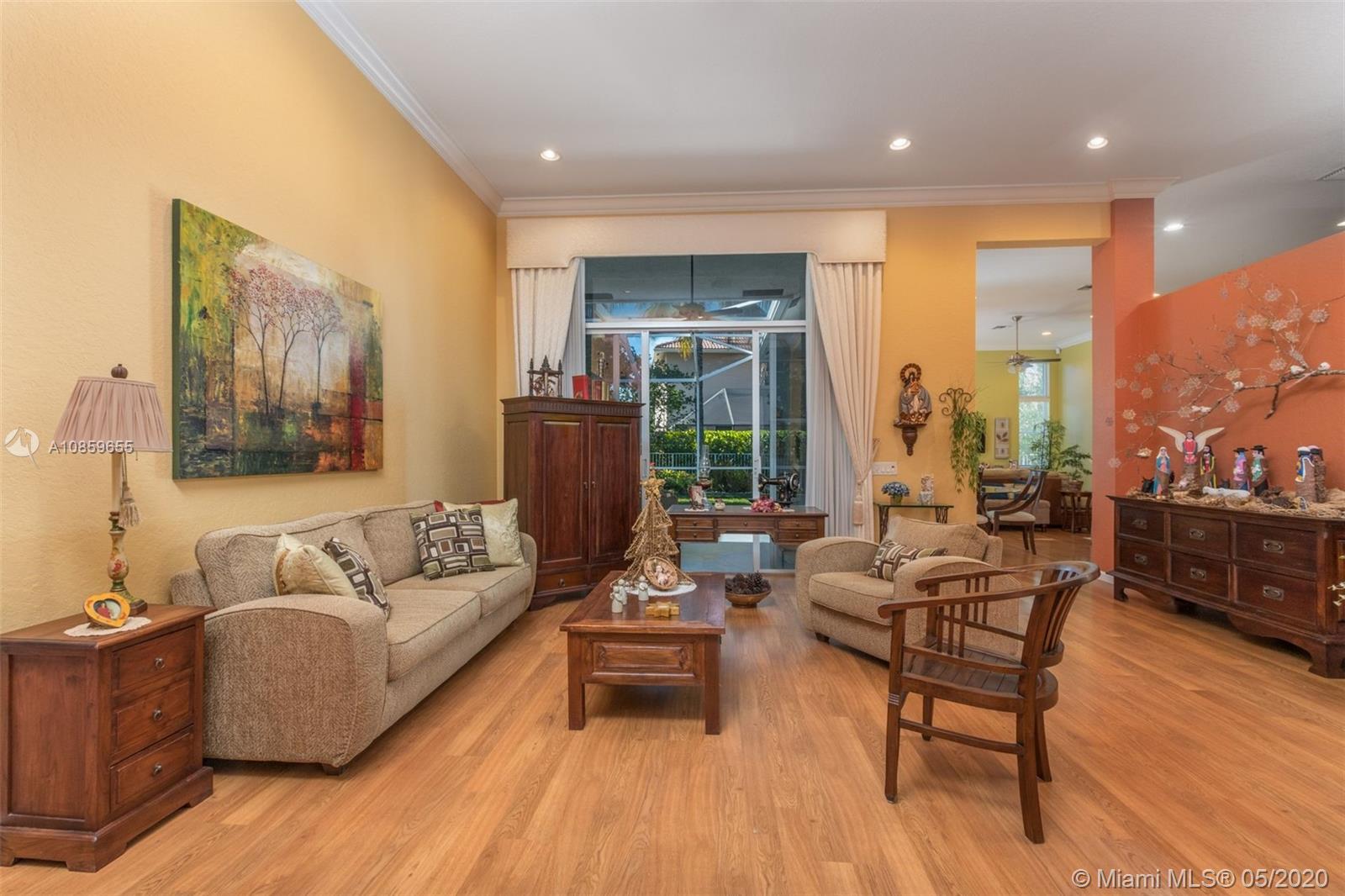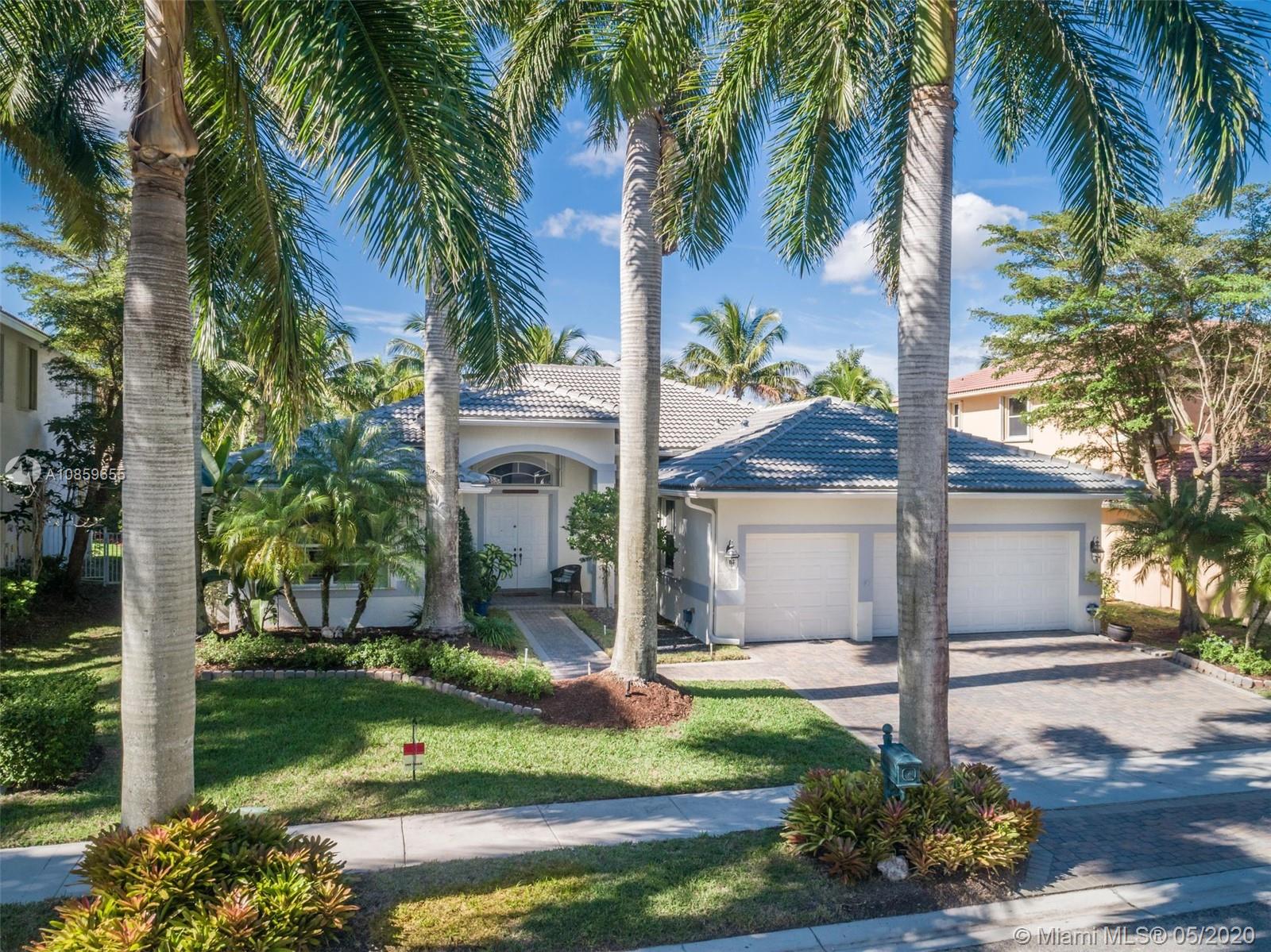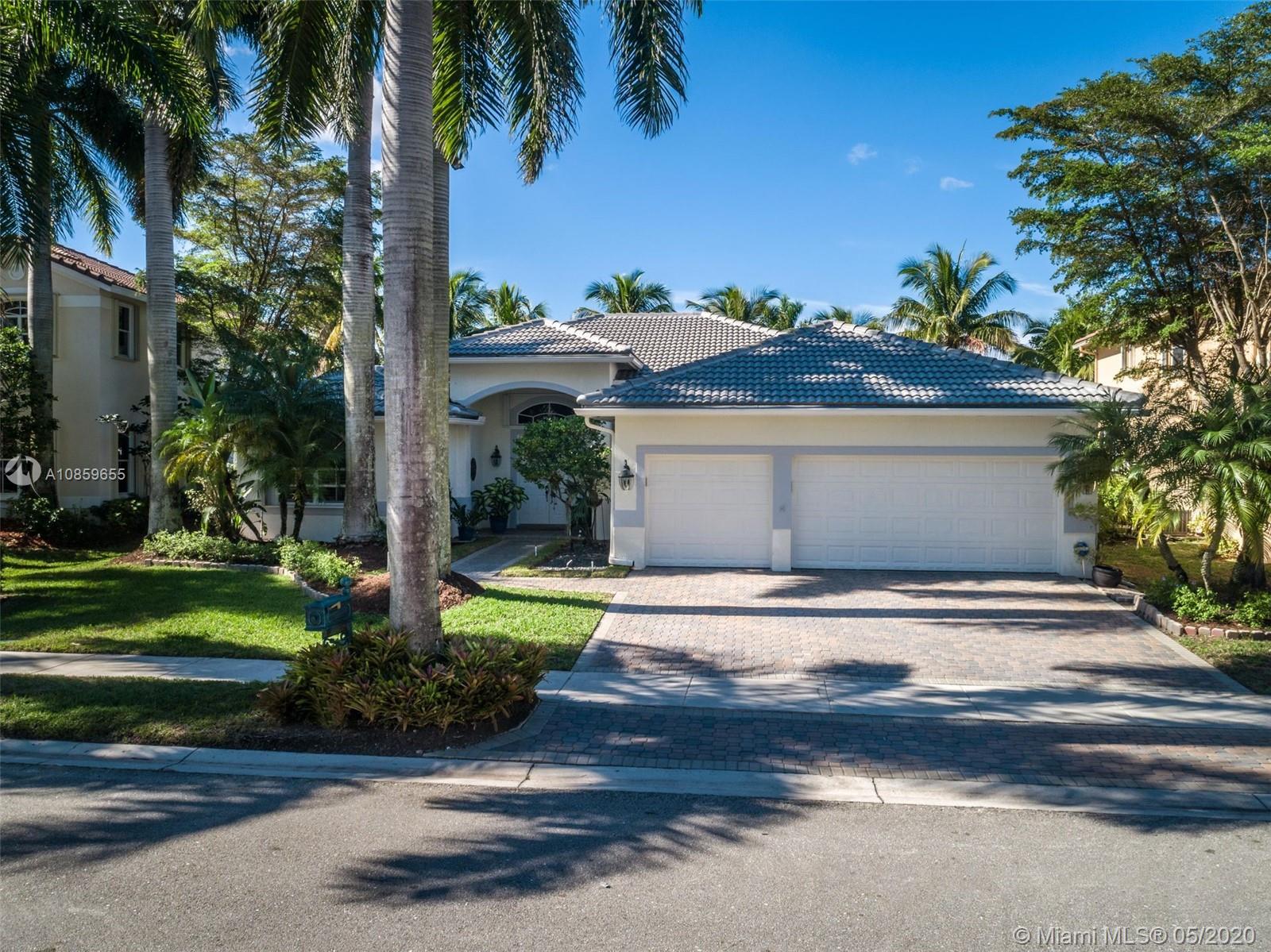 Weston Hills Country Club, one story house 4 bedrooms, 3 full baths and 3 car garage, with 3700 SF builded, in perfect and pristine condition, garage custom made and special flooring. Screened patio/lanai. High ceiling and split floor plan, crown molding and custom-made walk-in closets. Wood laminate floor in social areas and carpet in bedrooms. Best rated schools in Broward, family living. Golf community. Visits will resume this week, but due to prevention of healthy issues, showings are allowed with maximum two persons accompanied by their agent and listing agent. See pictures and the panorama tour at the MLS. Floor plan sample 2 car garage included on attachment, actual house has 3 car garage. Owner's occupied. New roof March 2018.