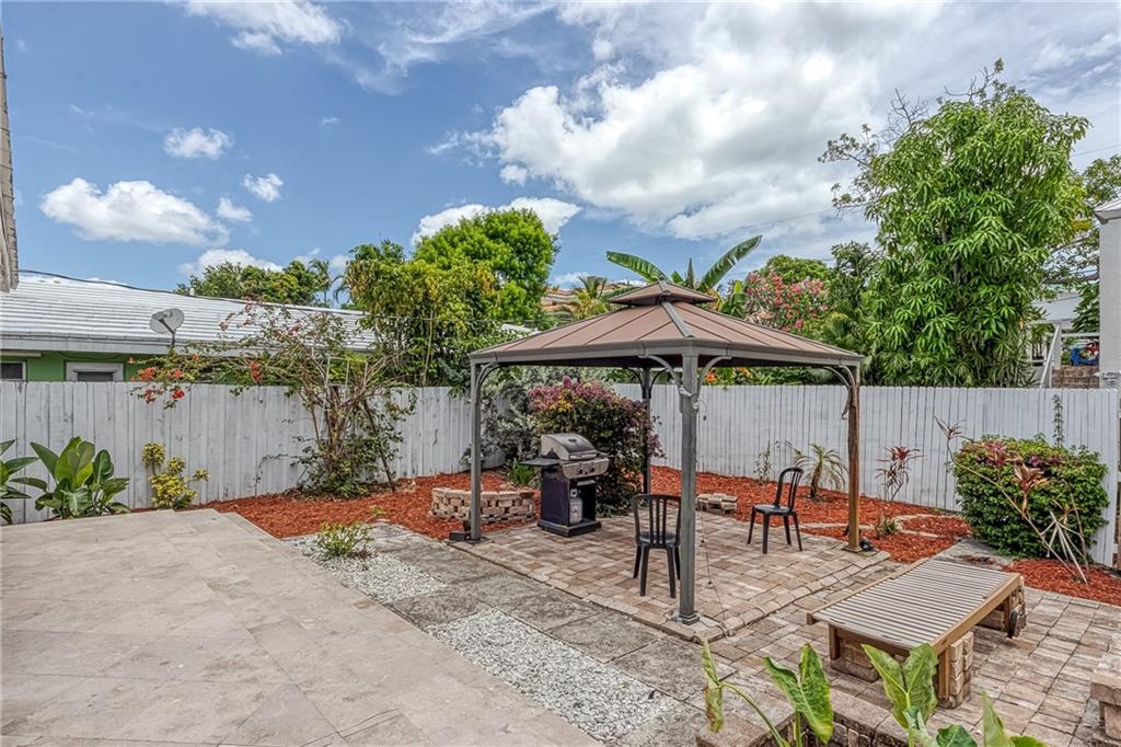 OLD FLORIDA CHARM! Fantastic 2 bed/2.5 bath home with a 1 bed/1 bath guest suite above the 2 car garage. The main house is full of charm with mature trees, large front patio, decorative woodwork & real fireplace. Hurricane Impact windows & doors, wood floors, 2015 a/c, large private yard. Updated kitchen with breakfast bar. The fully fenced yard is currently separated to provide privacy between the units. Remove the fence & add a pool! Main yard has a firepit, BBQ, gazebo & is a great space to entertain. Long side driveway leads to the 2 car garage.Great for an RV, boat, or to park cars.Guest suite has a full kitchen, separate laundry & storage room, & can be rented for income or be the perfect home office! Enjoy the tree lined streets of Victoria Park & easy access to Las Olas & the beach