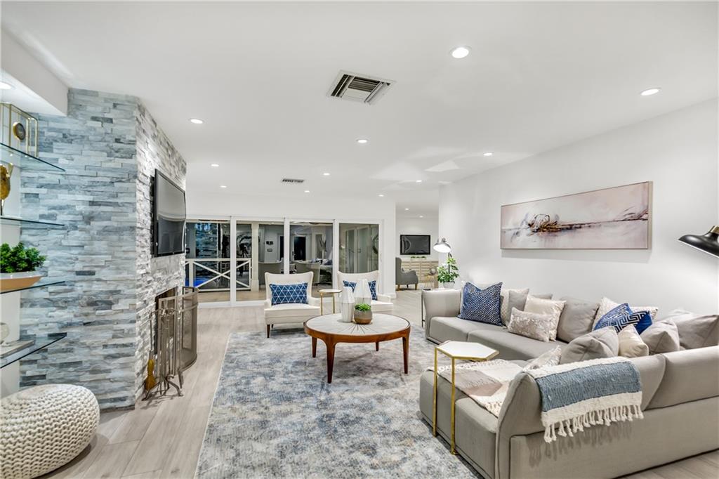 Exclusive Bay Colony private gated waterfront community. Ideally situated minutes from Intracoastal Waterway. Completely remodeled. Coastal design offers abundance of natural light and open floor plan. Features formal living area, family room and dining room areas, bonus office/gym room with half bath. Chef's kitchen with gas stove, top of line appliances and fixtures, wine cooler and custom cabinetry. Large master suite with walk-in closets, light filled master bath with separate shower and free standing tub. Three additional bedroom suites. All new impact windows and doors, A/C Garage. Outdoor entertaining area with covered patio, summer kitchen, fire pit, pool and cabana bath. New landscaping and new dock.