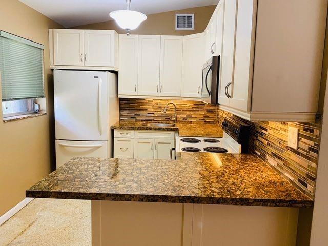 ROOM TO ROAM IN THIS THIS LIGHT AND BRIGHT 2 BEDROOM 2 BATH CAN EASILY BE TURNED INTO A 3 BEDROOM HOME....GREAT OPEN FLOOR PLAN THAT FEATURES VAULTED CEILINGS, A GORGEOUS RENOVATED KITCHEN WITH WOOD CABINETS AND GRANITE COUNTER TOPS. BOTH BATHROOMS UPDATED WITH NEW FIXTURES, VANITIES AND MORE. NEW CENTRAL A/C ADDED TOO! LOOK AT THE SIZE OF THIS LOT...ONE OF THE LARGEST IN THE AREA AND CAN EASILY ADD A POOL AND STILL HAVE LOTS OF ROOM LEFT FOR CHILDREN AND PETS! WASHER/DRYER IN STORAGE AREA ATTACHED TO THE HOME. GREAT LOCATION NEAR MAJOR HIGHWAYS, SHOPPING AND RESTAURANTS.