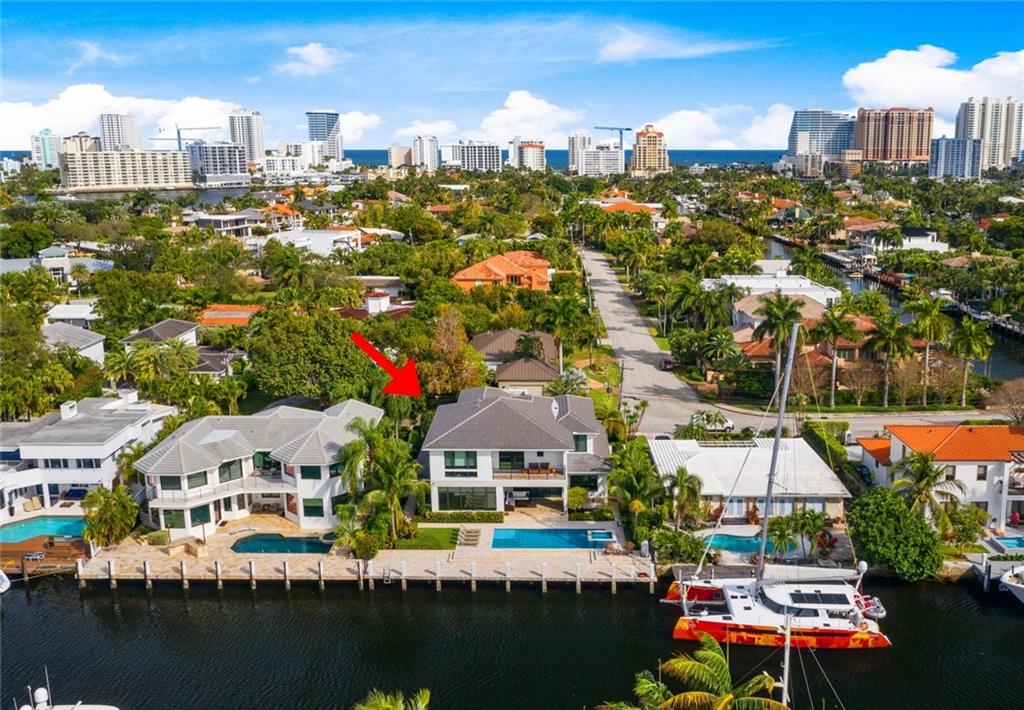 Timeless architecture in this Recently built Randall Stofft designed Waterfront home in Seven Isles! This stunning 4 BR/4.5 BA residence, boasts over 5700k TSF, with impeccably curated interiors and baths, volume ceilings and expansive glass. Chefs kitchen with Thermador appliances, Great Room, Dining and Living areas all open to the water and flow to generous covered loggia, leading to heated salt water pool and spa & 80' concrete dock. Home theater, full cabana bath, plus a dramatic powder room. 2nd level with 4 BRs, 3 face the water, a luxurious Owners suite, with sumptuous Bath, two walk-in closets and a tranquil terrace. Huge Utility area and reading nook complete the floor. Control 4/Lutron, Elevator, Natural Gas, Security Patrolled 7 Isles. Minutes to Beach, Las Olas & DWTN.