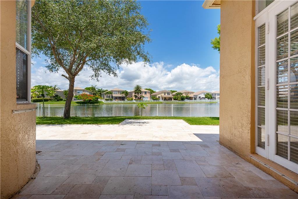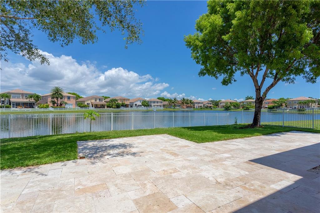 IMPECCABLE ONE STORY FOUR BEDROOM HOME ON THE LAKE IN THE RESORT STYLE GUARD GATED COMMUNITY OF RIVIERA ISLES! THIS HOME FEATURES TILE FLOORING IN MAIN LIVING AREA & SECONDARY BEDROOMS, WOOD FLOORING IN MASTER, VOLUME CEILINGS & NATURAL LIGHTING THROUGHOUT. LARGE KITCHEN WITH STAINLESS STEEL APPLIANCES AND CENTER ISLAND. BEAUTIFUL BACKYARD WITH NEW TRAVERTINE PAVERS, FULLY FENCED IN, LAKEFRONT WITH A HUGE GRASSY AREA! NEW WASHER & DRYER, A/C 2014. PLENTY OF ROOM FOR A POOL.