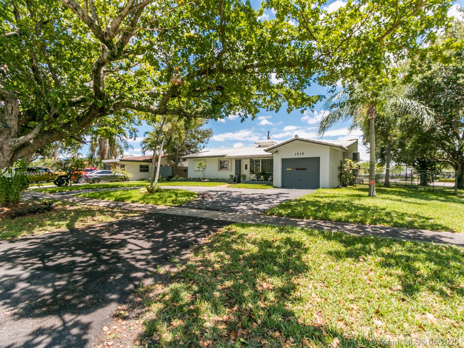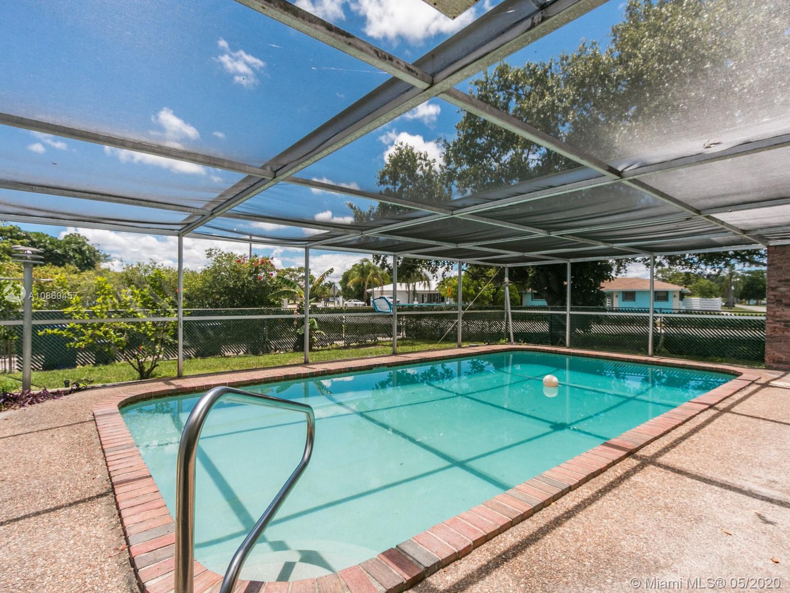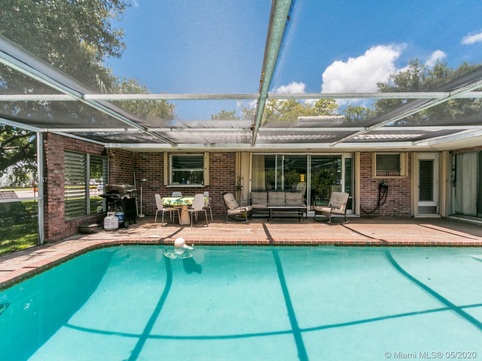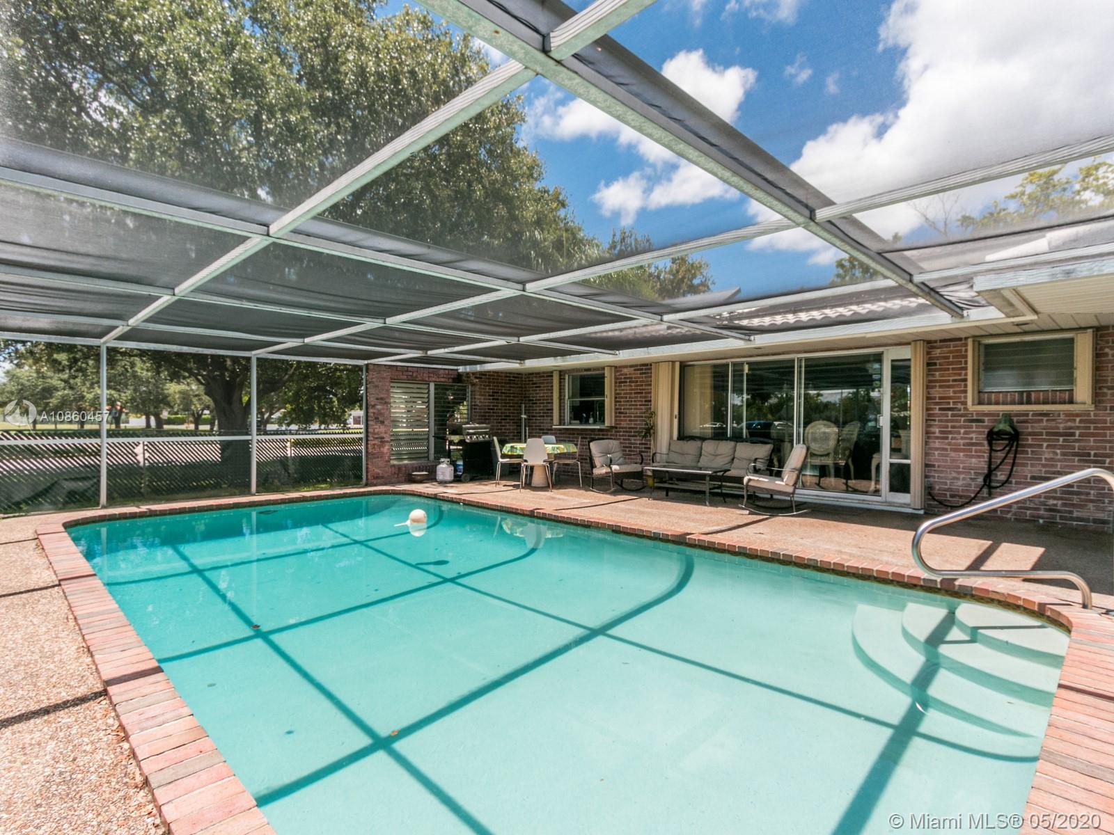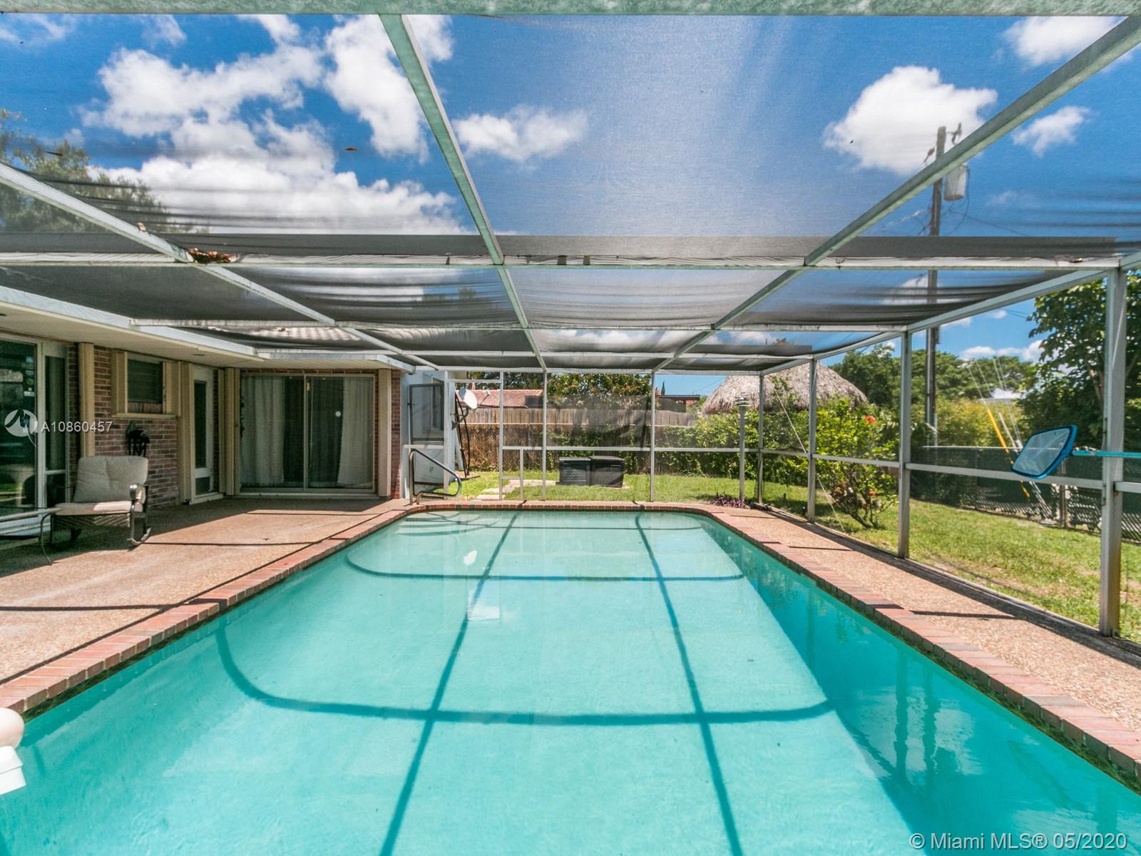 One of the lowest price pool homes in Hollywood Hills and just reduced. 3/2 + 1 car garage on an amazing corner lot with circular driveway. New custom designer inspired kitchen features soft close wood cabinets & drawers, quartz counters,farmhouse house sink w/SS curved apron, SS appliances, all overlooking screened pool & patio which is perfect for entertaining. Tile roof approx 2008. New front load W/D. Elegant and modern wood look tile flooring throughout. 2nd bath has been remodeled.Master bath has a Safe Step walk in tub.Master bedroom has sliding doors to the pool and a walk in closet. Property tented 2019. Tankless water heater, sprinklers on well. Full accordian shutters.Solar Panels to heat the pool.
